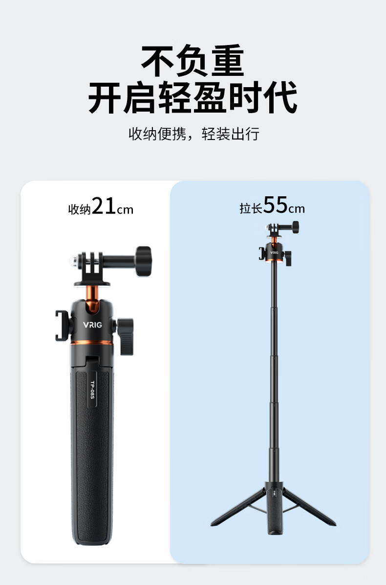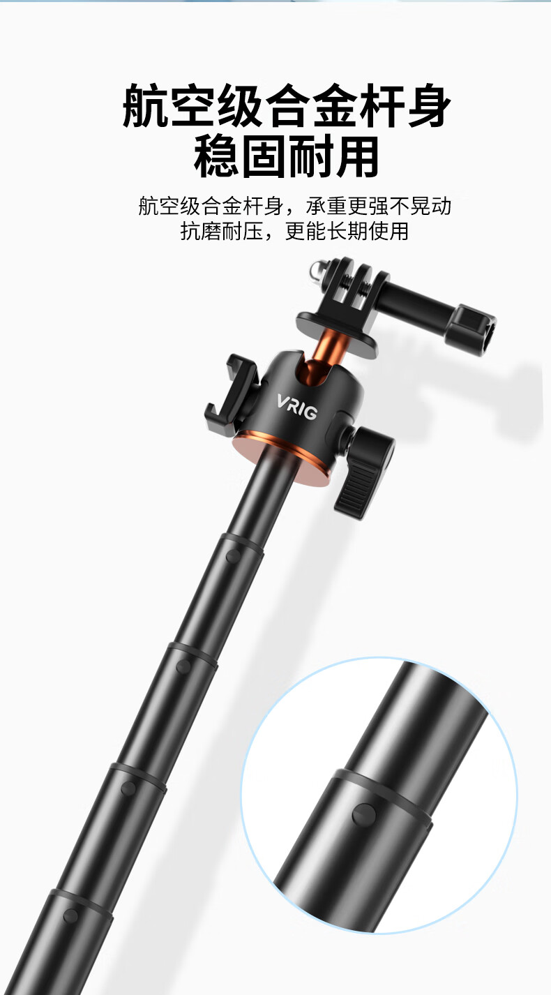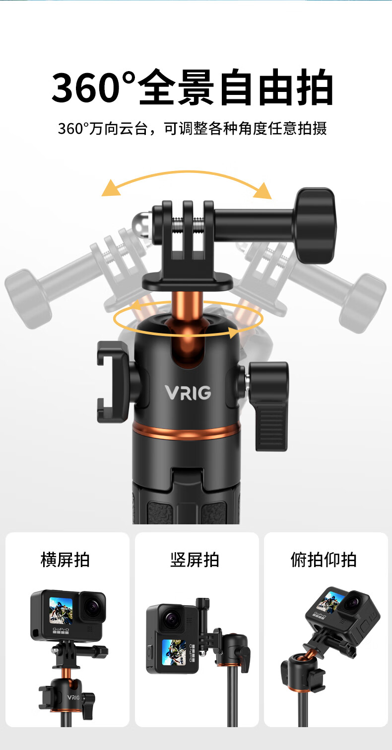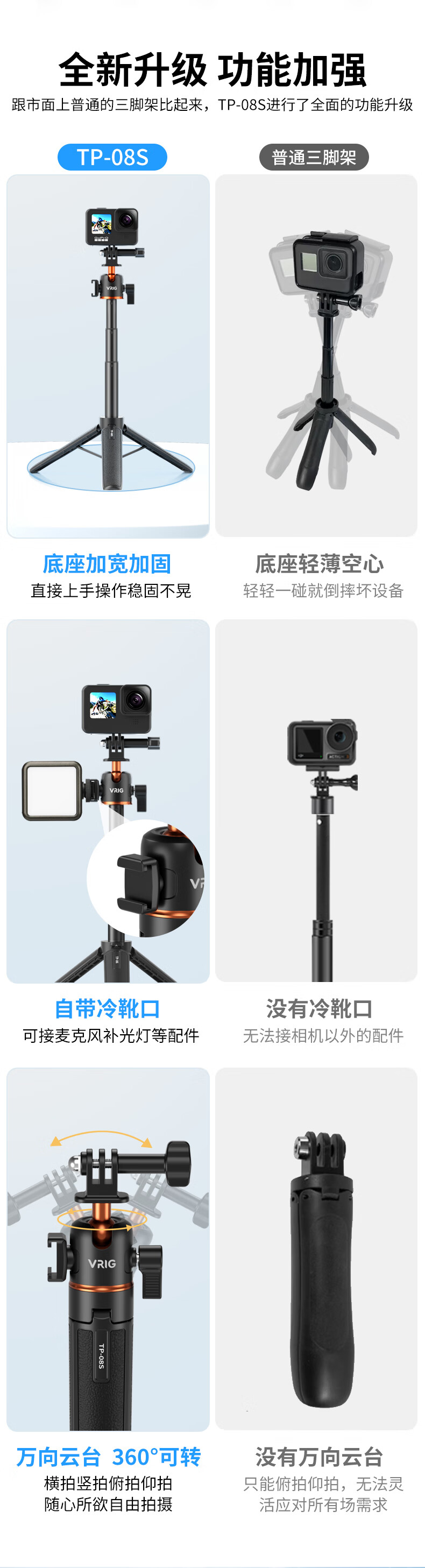 VRIG唯乐格TP-08S大疆Action4/5Pro三脚架自拍杆万向云台竖拍运动相机支架Gopro12延长杆insta360acepro配件