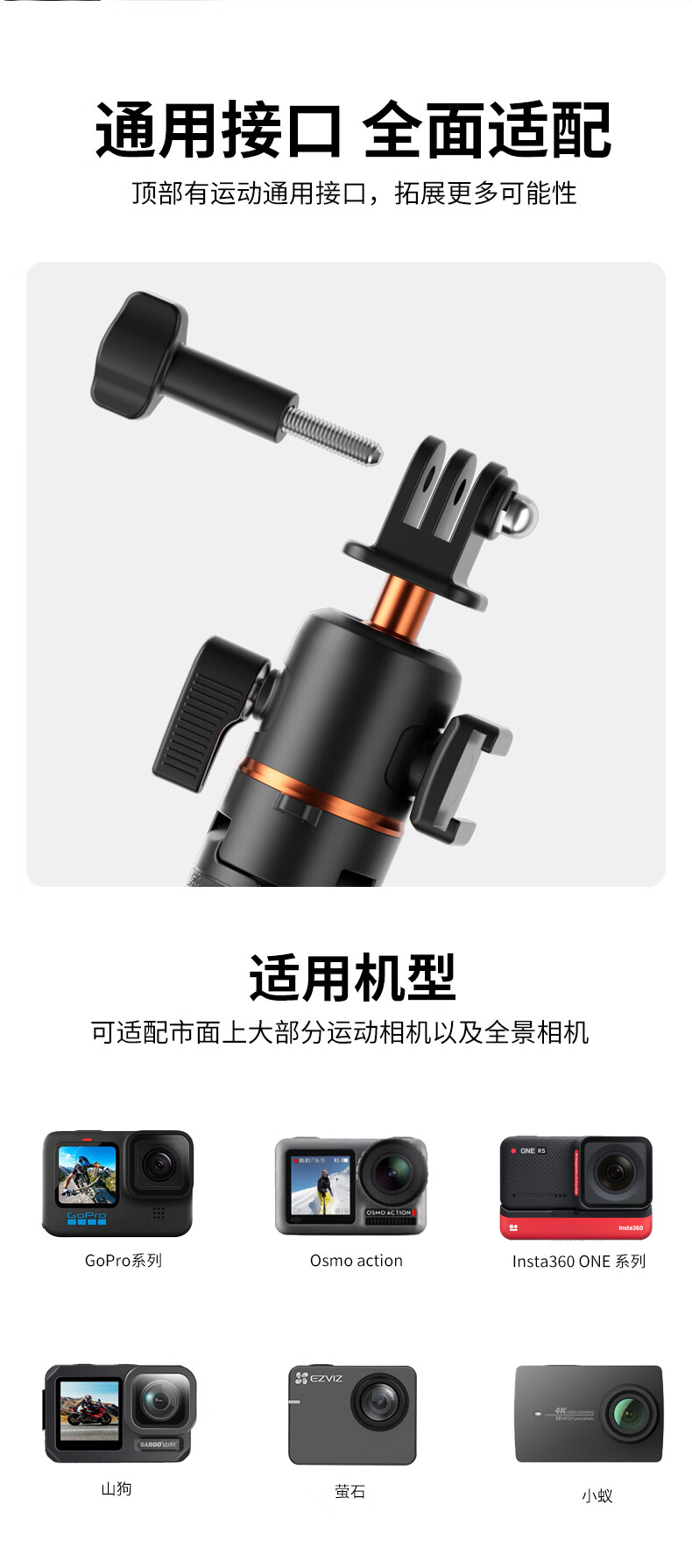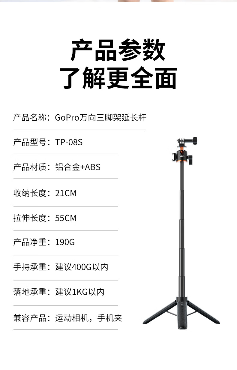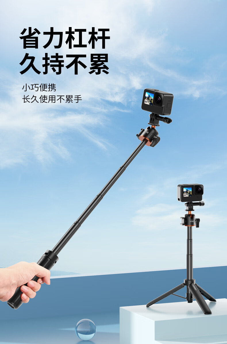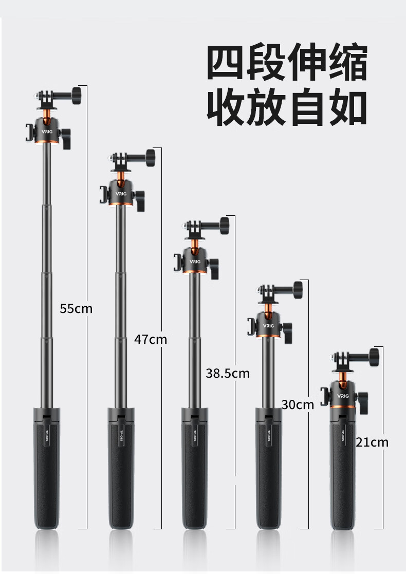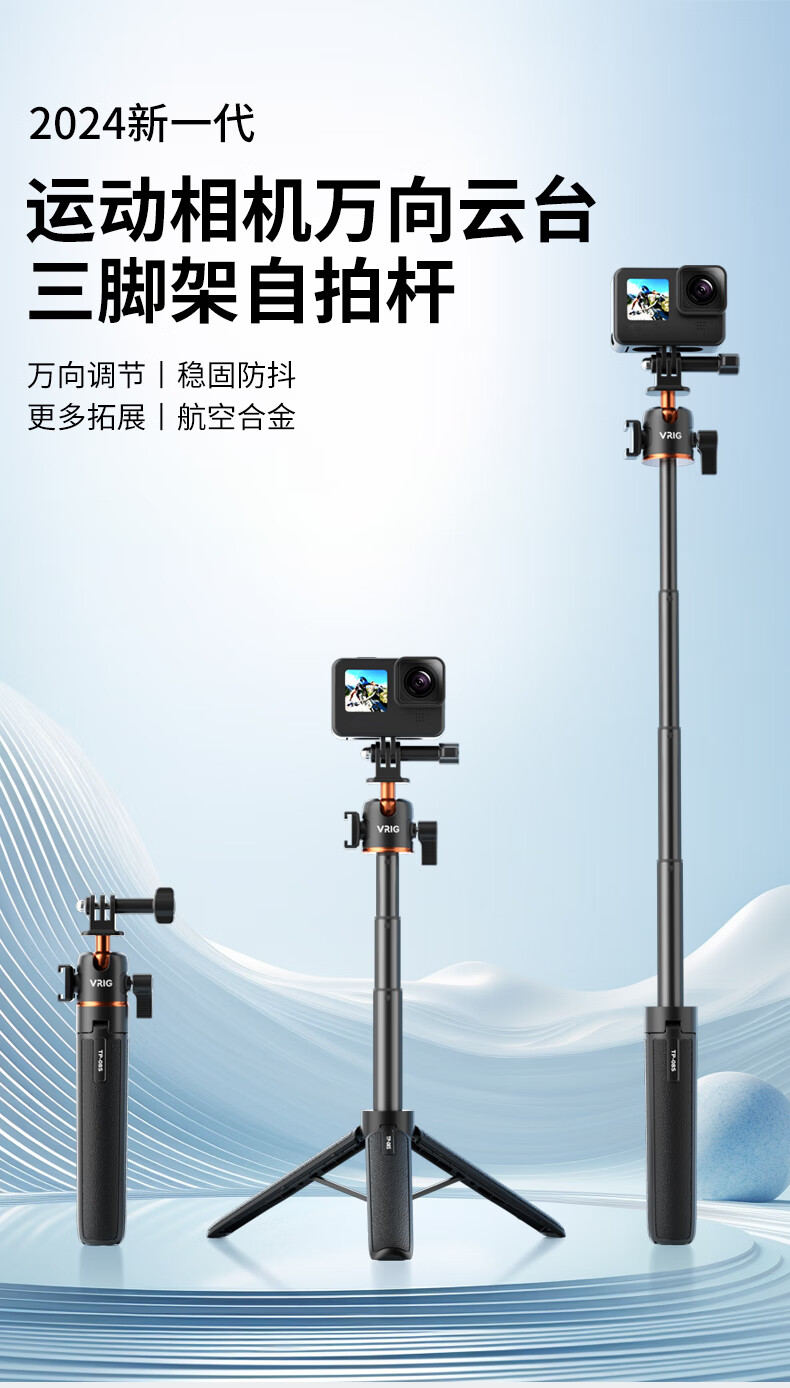 VRIG唯乐格TP-08S大疆Action4/5Pro三脚架自拍杆万向云台竖拍运动相机支架Gopro12延长杆insta360acepro配件