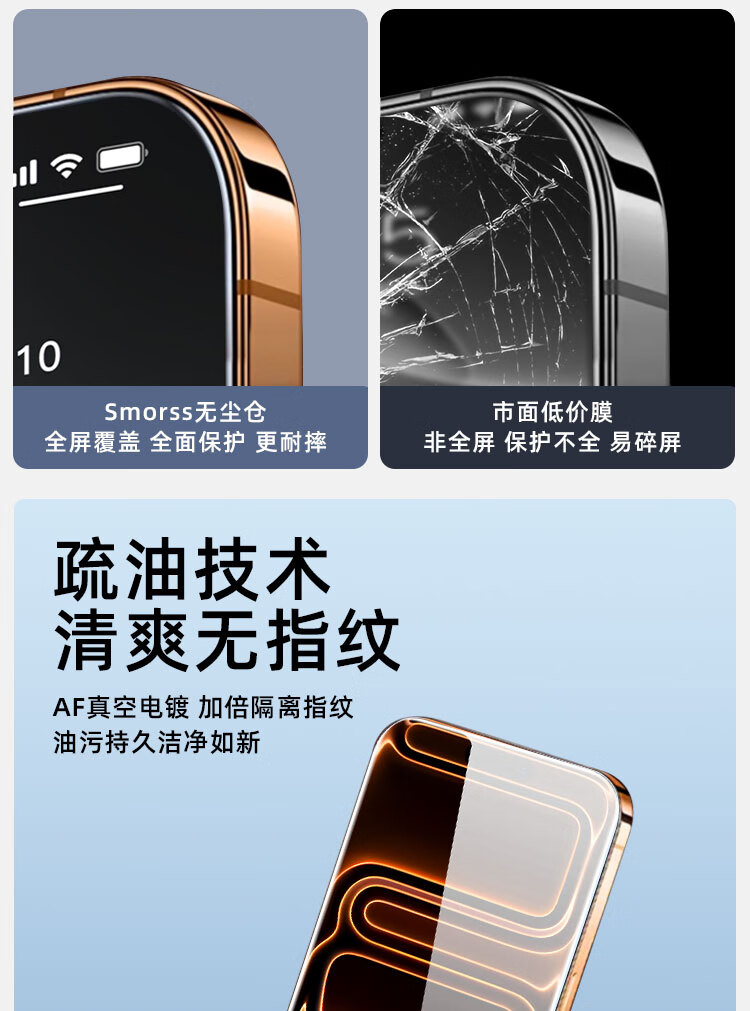 Smorss【2片无尘仓】适用iPhone17Pro钢化膜苹果17Pro手机膜高清无尘仓秒贴膜听筒防尘防摔抗指纹