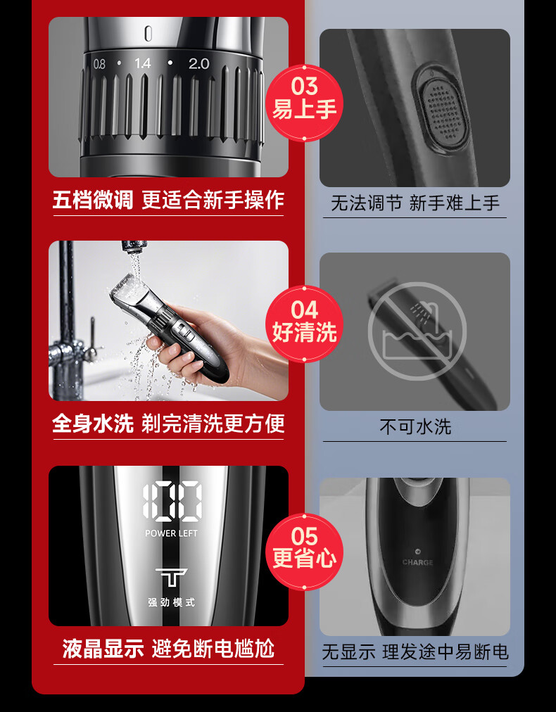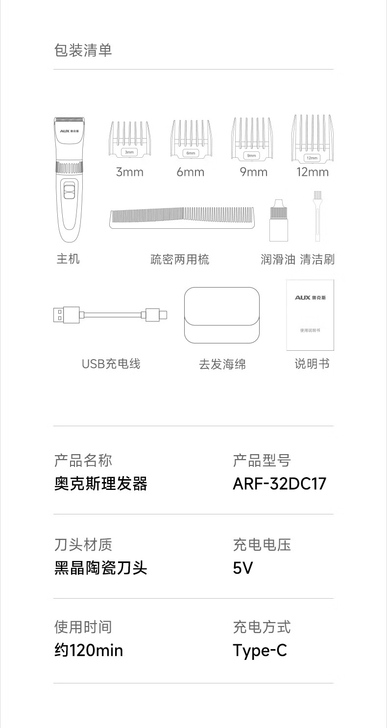 奥克斯(AUX)理发推子电动理发器男士自己剃光头神器儿童婴儿家用自助剃头电推子工具全套送爸爸