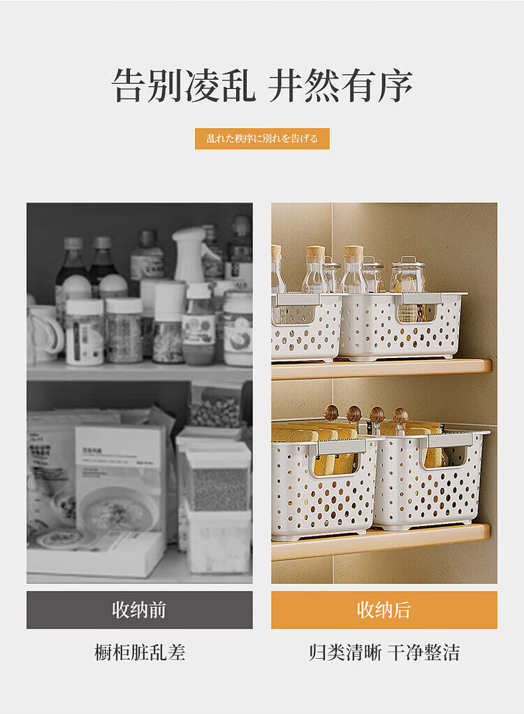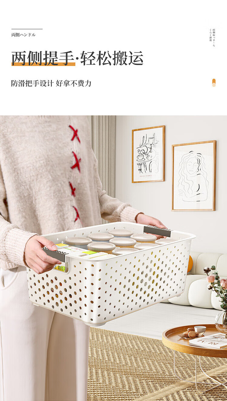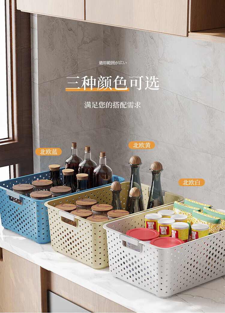 京东物流 零食杂物收纳箱玩具整理筐家用橱柜置物篮子储物塑料箱 北欧白-特大号 3个装