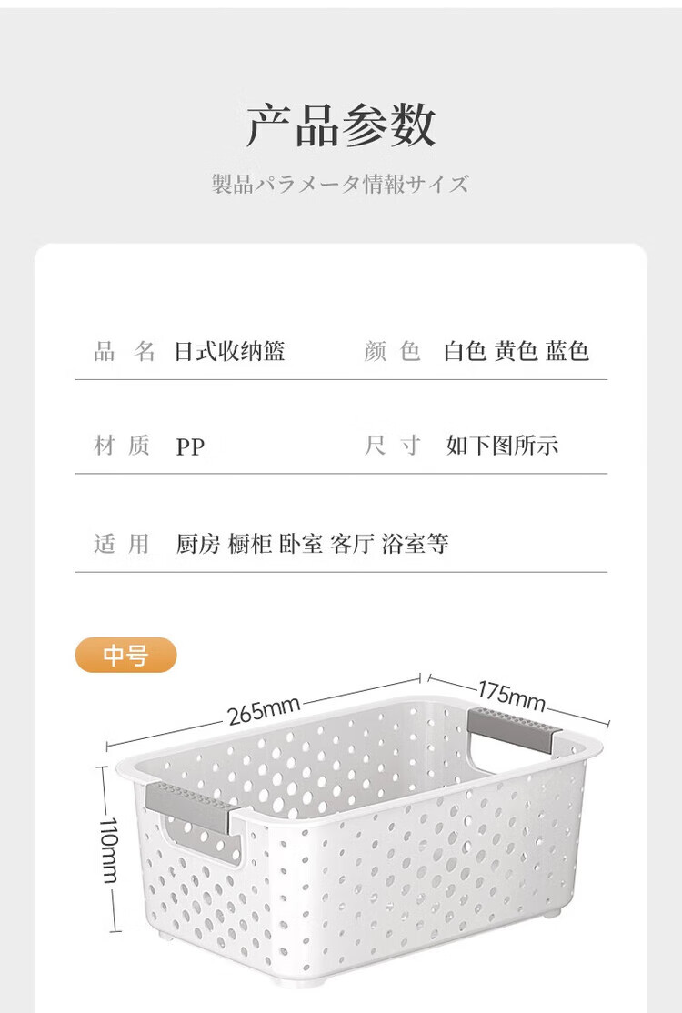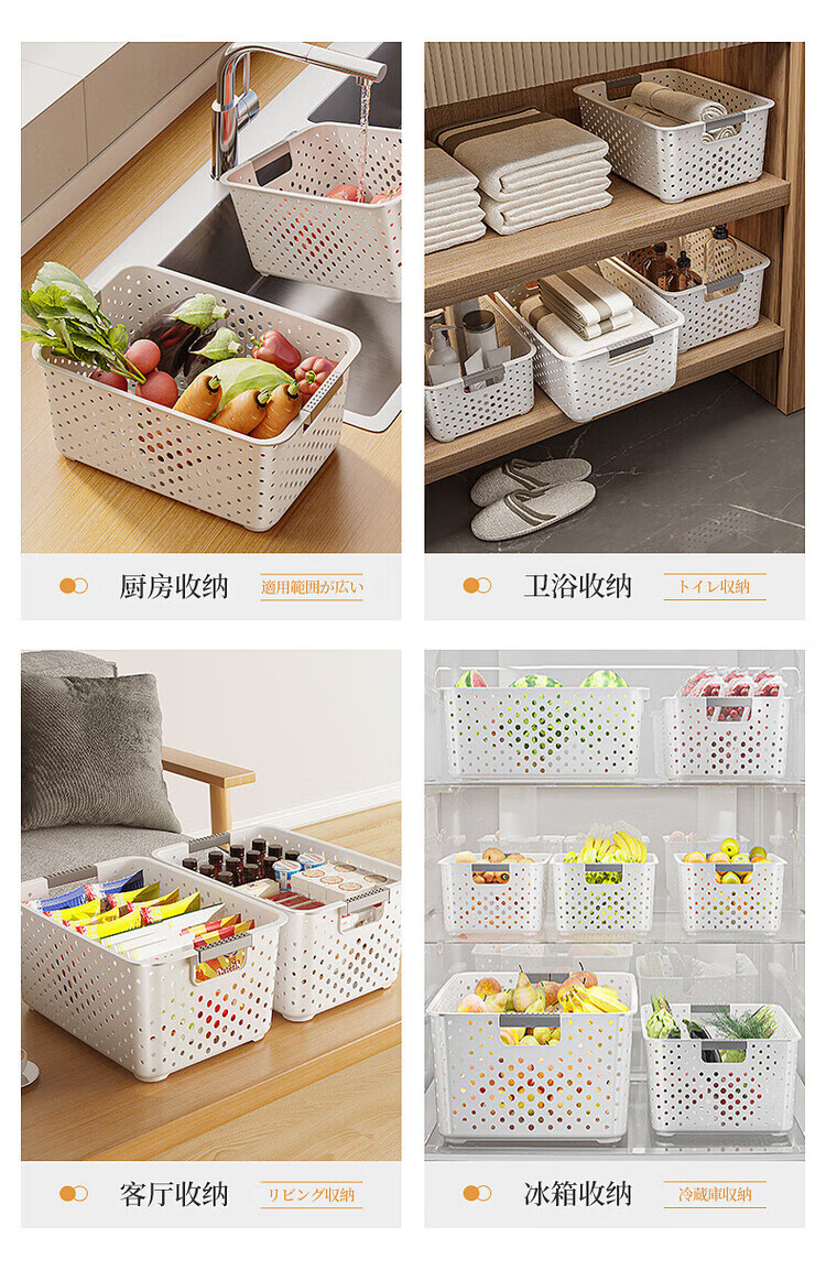 稻草熊日式杂物收纳筐家用零食玩具塑料厨房浴室收纳盒宿舍办公收纳篮 收纳筐-北欧白 大号【三个装】