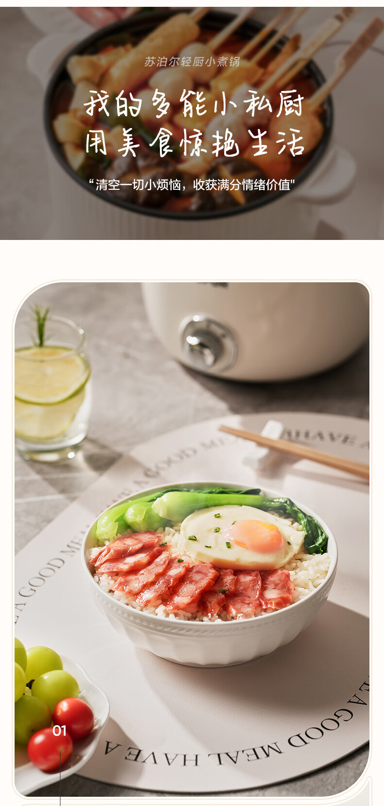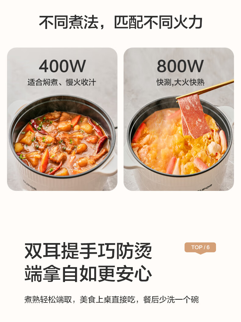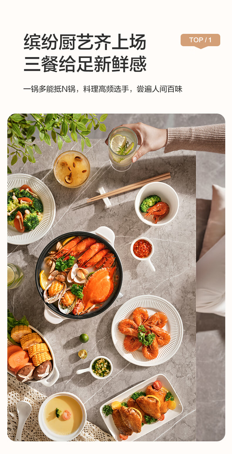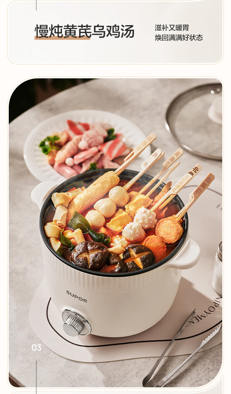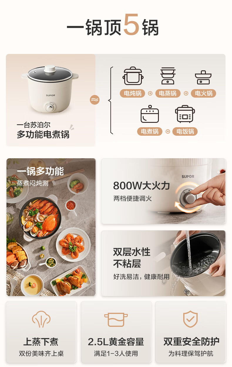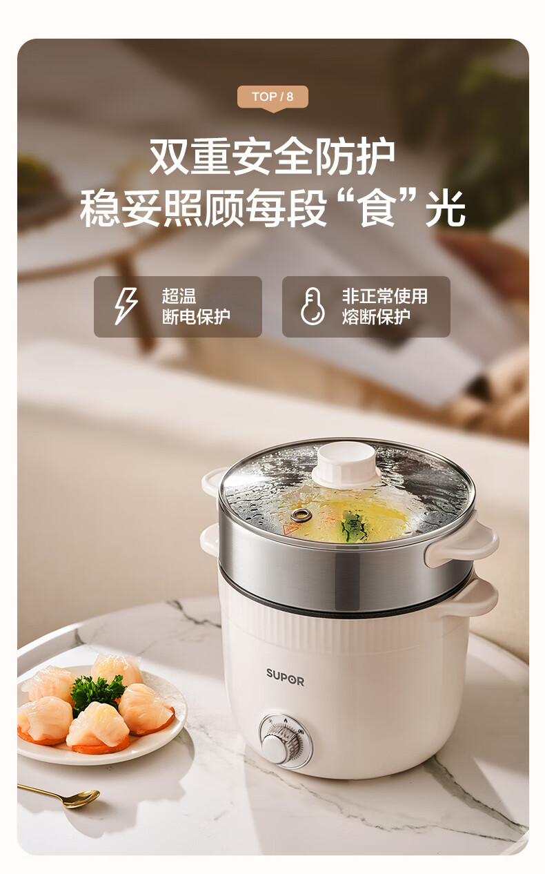 苏泊尔(SUPOR)电煮锅 电蒸锅 多功能泡面宿舍小火锅 2.5L带蒸屉电炖锅 蒸煮一体电热锅H25YK680A