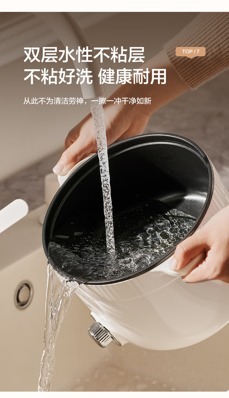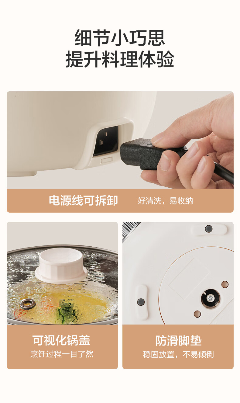 折叠电煮锅多功能泡面锅家用小火锅学生宿舍锅迷你小型小电锅速食 18cm米白色折叠把(黑色内胆220v