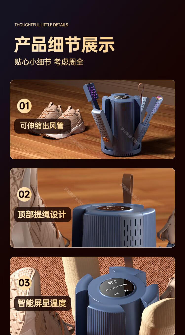 JFHSBS德国双截棍智能定时干鞋器 伸缩可调节烘干机 快干烘鞋器 6代-X3四风道烘鞋器