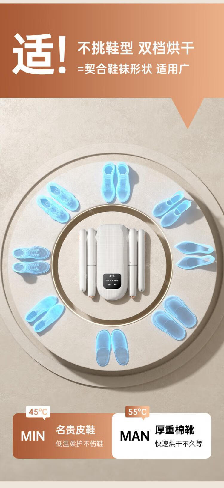 WCZ德国新款烘鞋机干鞋器折叠烘干鞋机可伸缩智能紫外线烘鞋器 白色+橙色