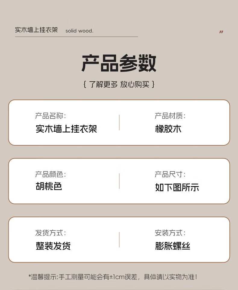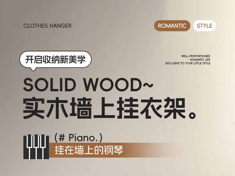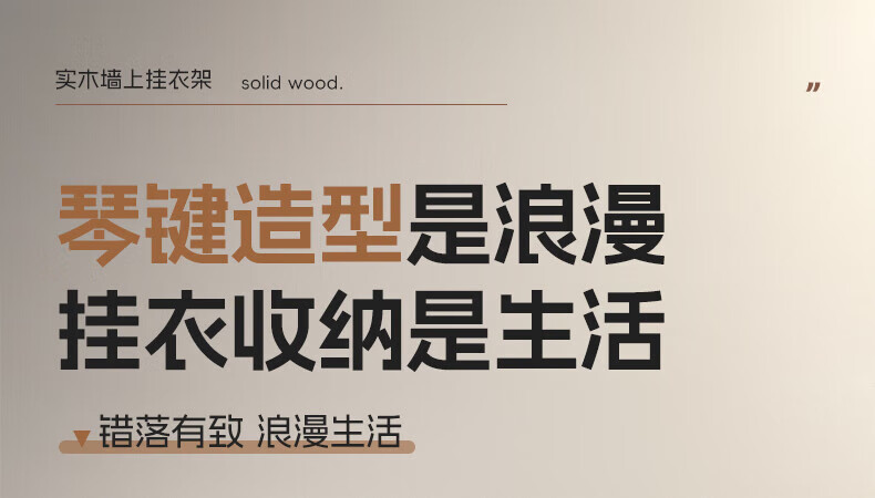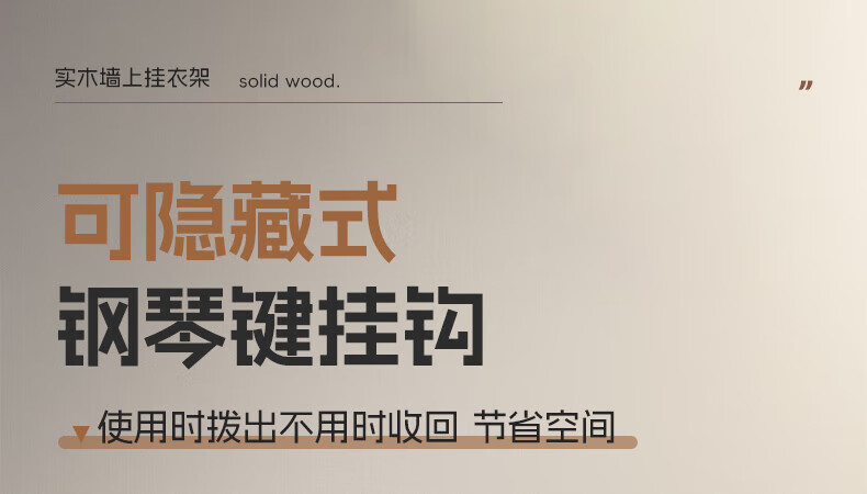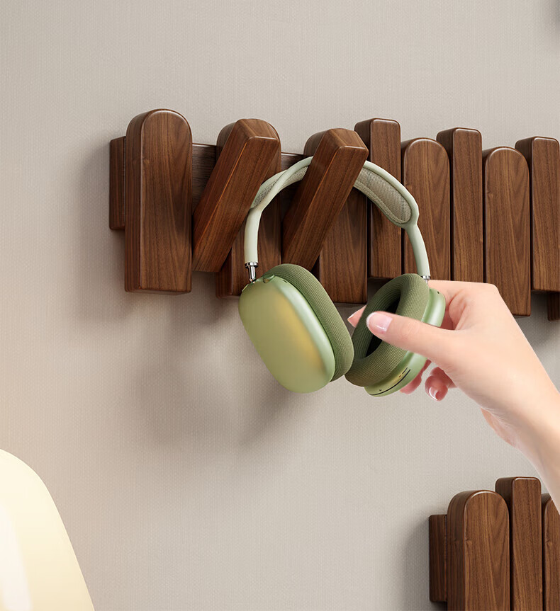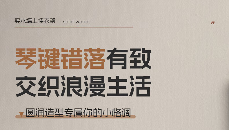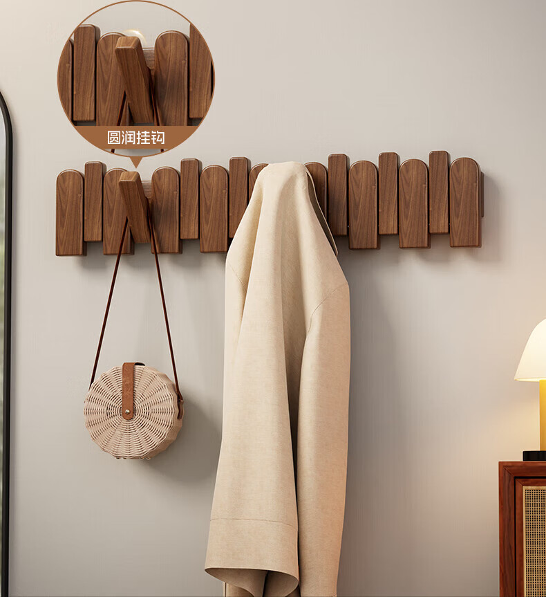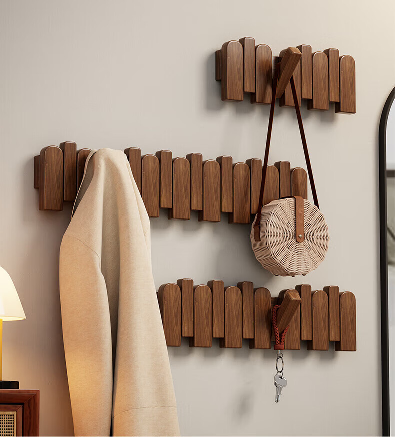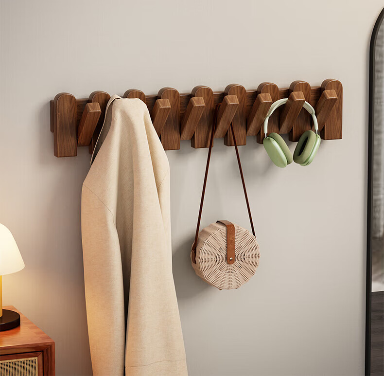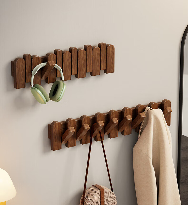 木格格 MUGG钢琴键挂衣钩进门口入户玄关挂衣架壁挂墙上实木衣服帽挂钩免打孔 胡桃色4钩-实木【两种安装配件】