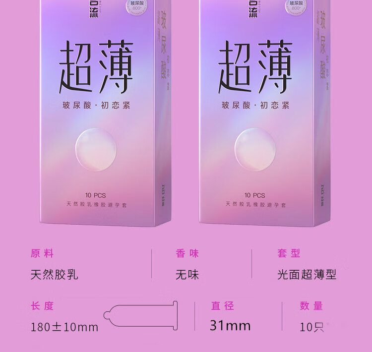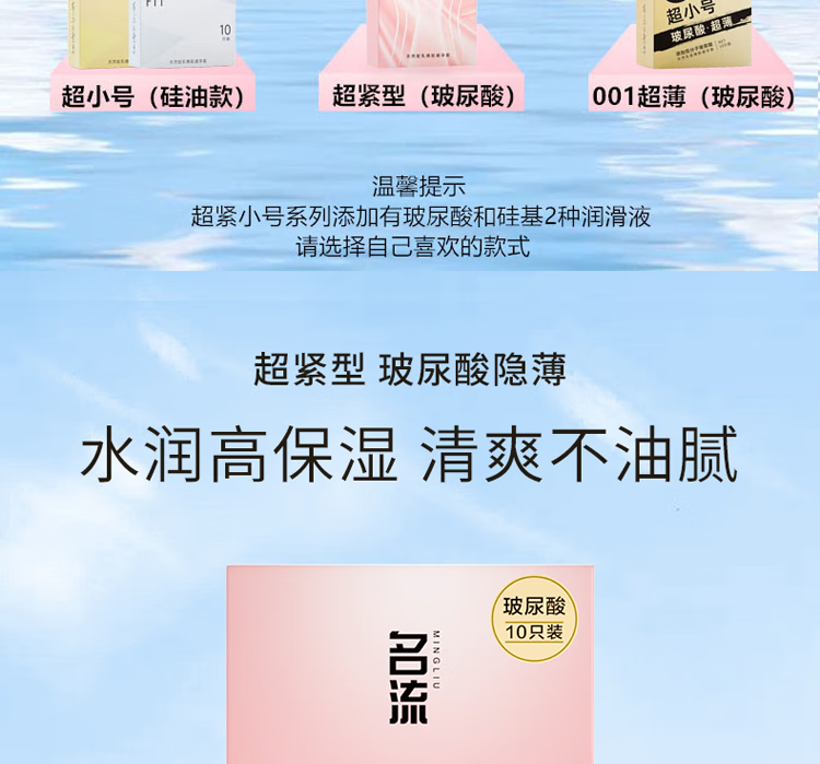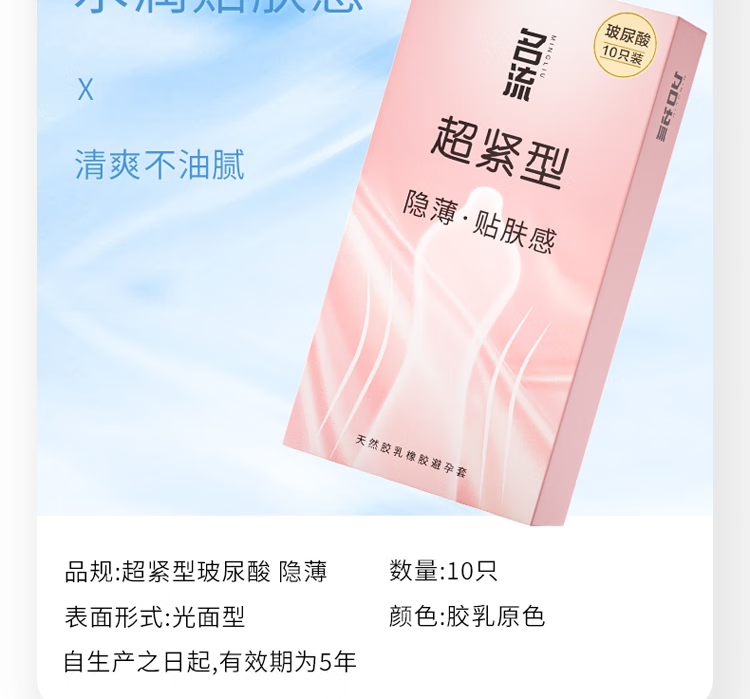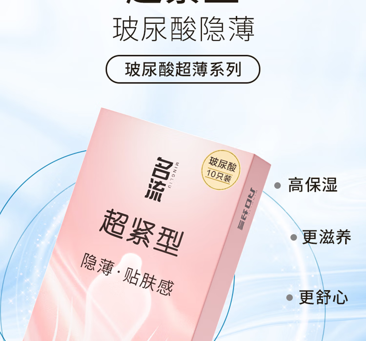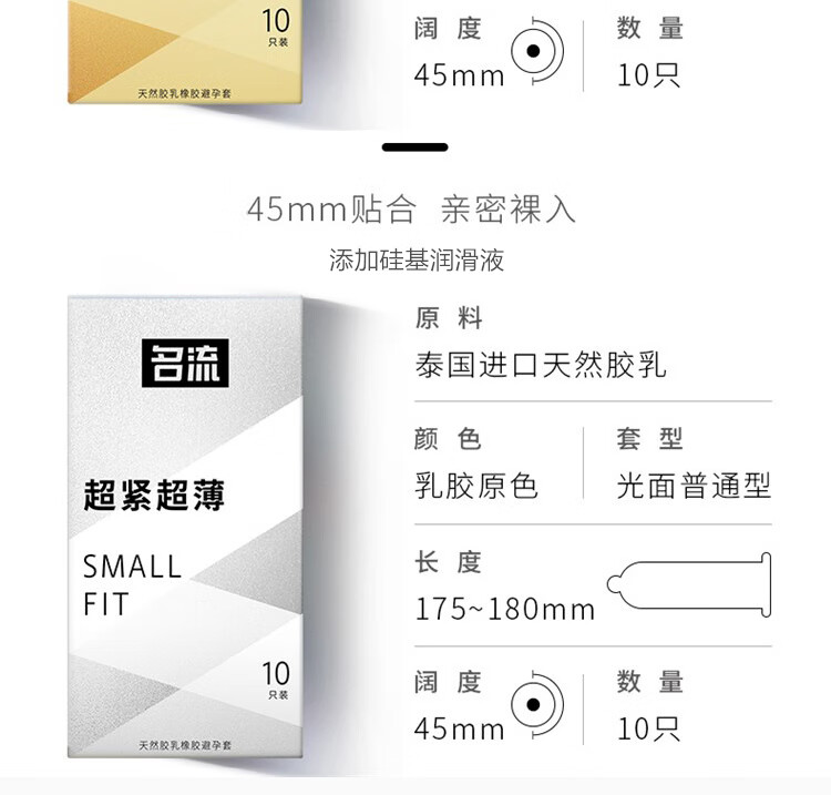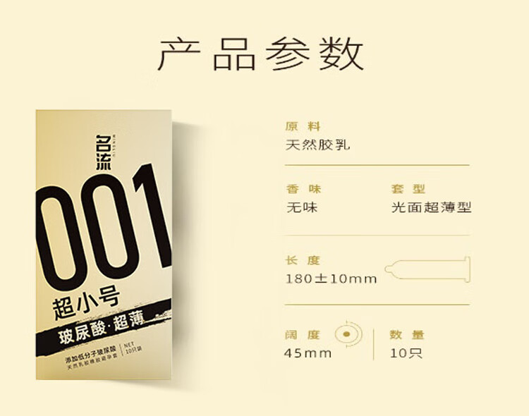 名流避孕套超薄男女用安全套超紧超小号45mm套子紧致型持久玻尿酸套套 45mm超小号001玻尿酸10只