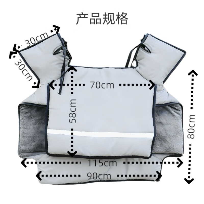 【京东物流】新款电动车挡风被加绒加厚加大侧翼防风罩全车型通用 加大加绒款-羽绒服感大侧翼-浅灰色