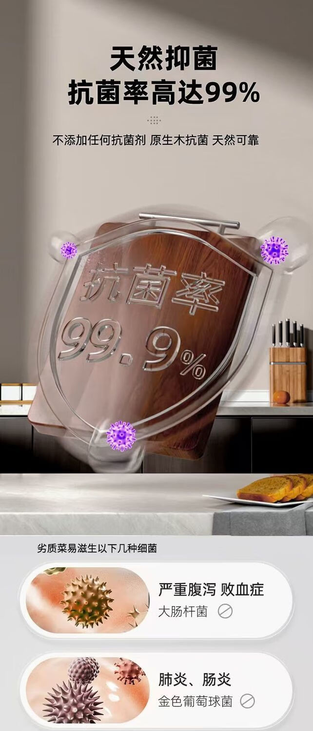 切菜刀菜板二合一家用厨房刀具案砧板套装全套厨具辅食工具水果刀 斜尾木纹三套装