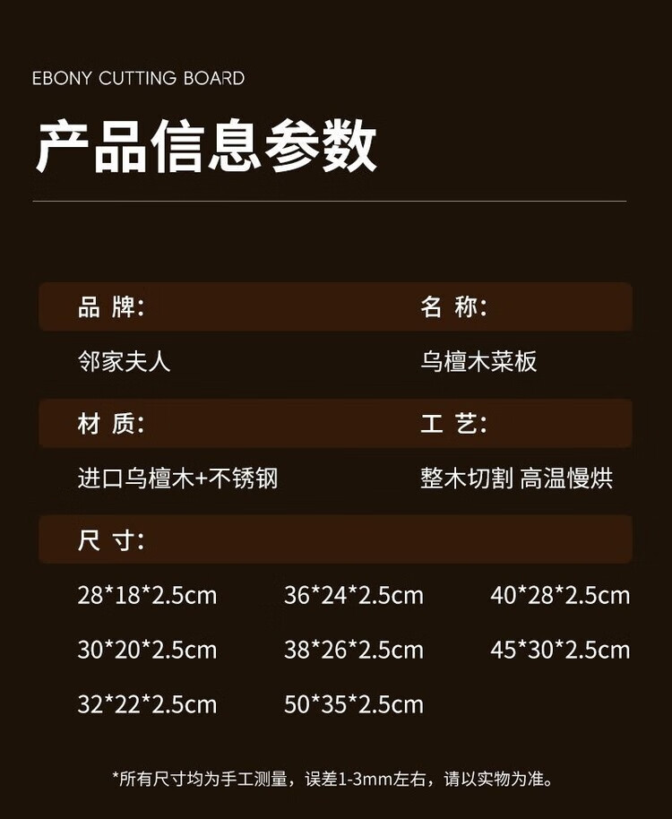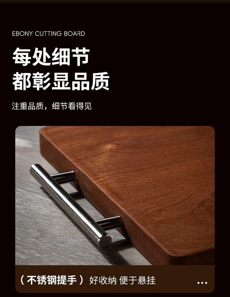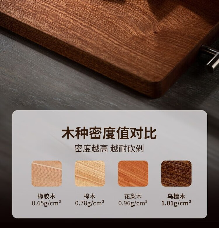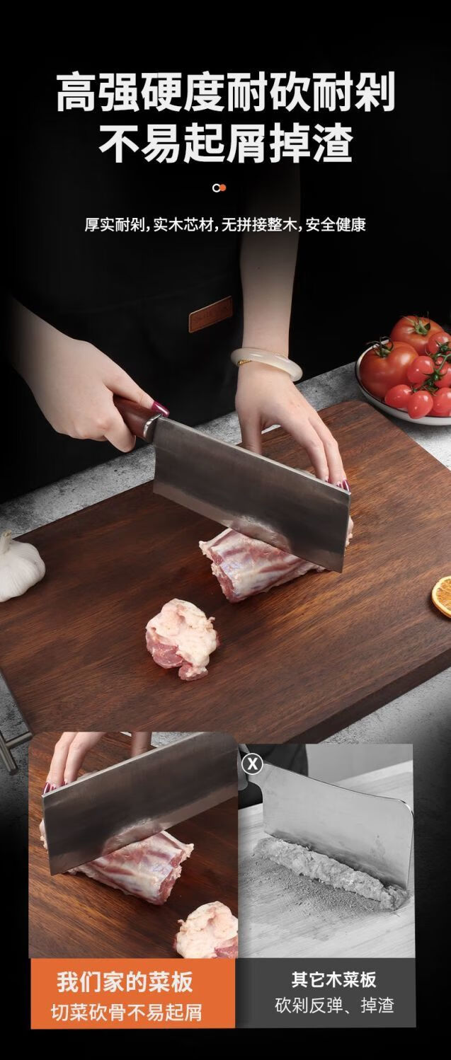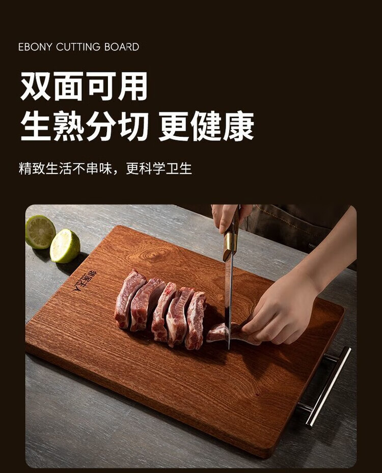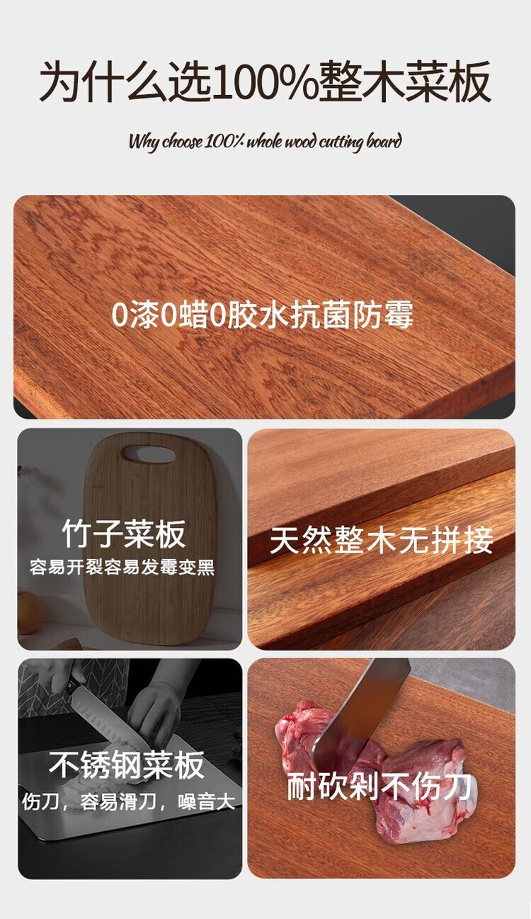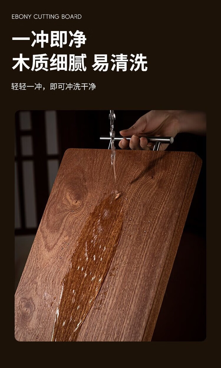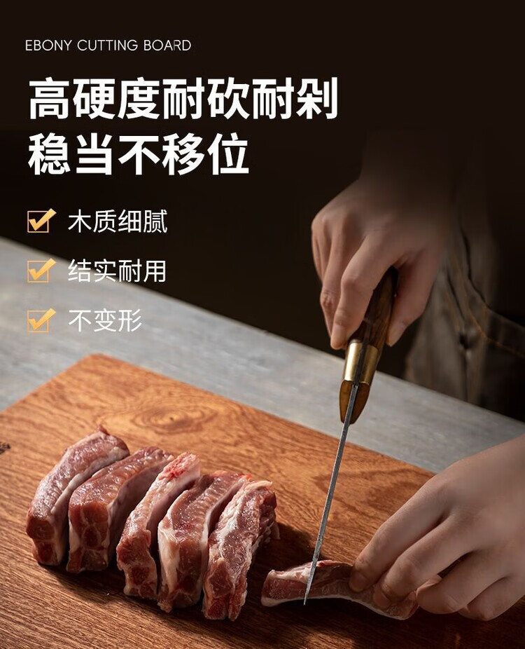 简漾整木乌檀木抗菌防霉家用切菜板实木砧板双面案板厨房专用刀占粘板 28X18X2.5厘米 乌檀木