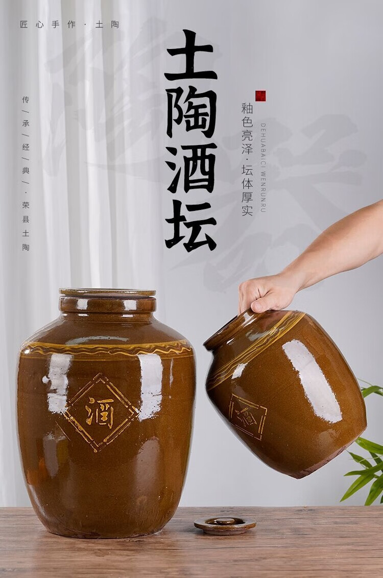 简漾四川土陶老式加厚密封盖酒坛子罐存酒专用土陶罐子泡酒陶瓷罐 2000斤酒坛加厚型配土陶盖