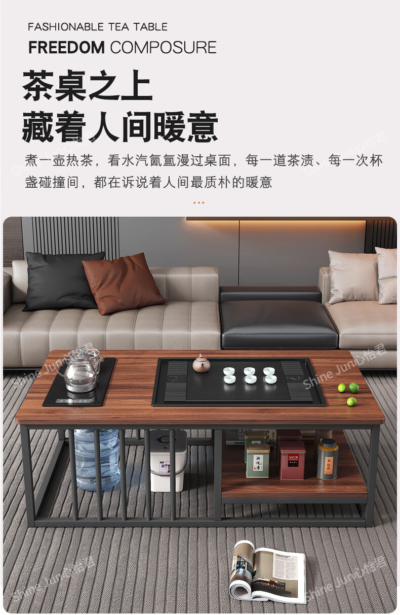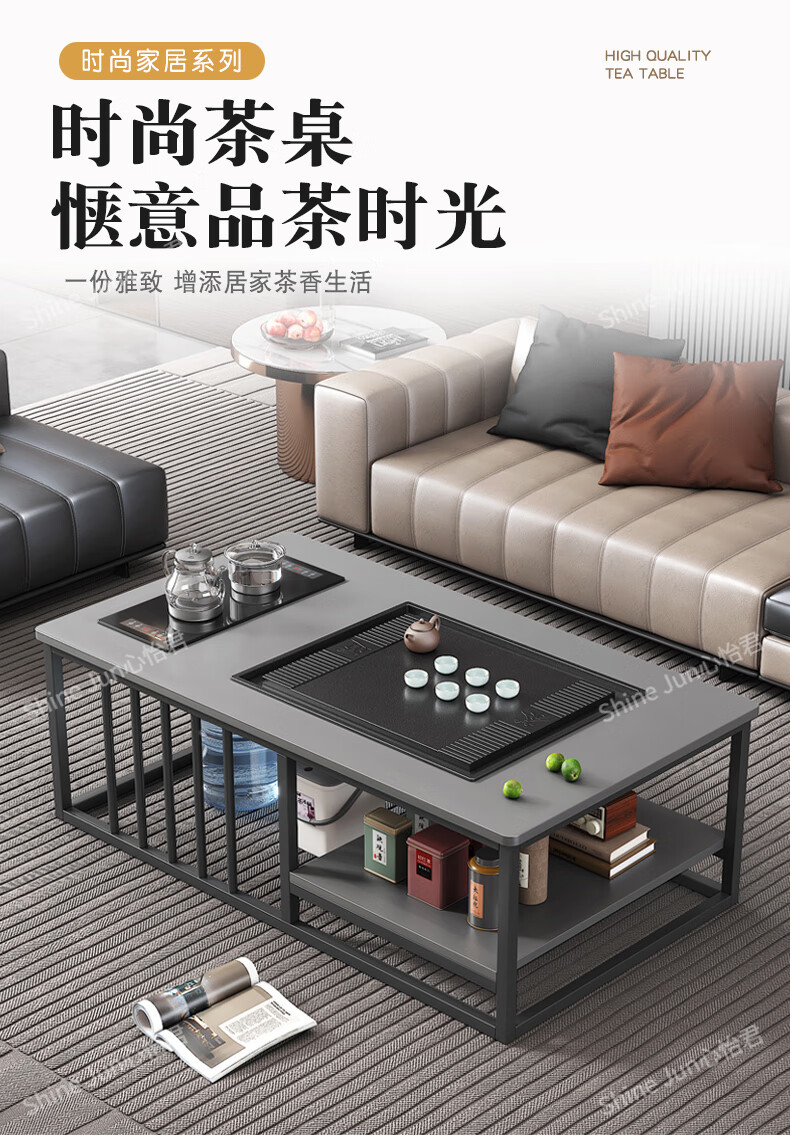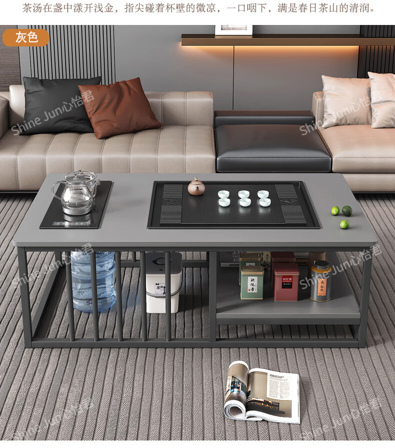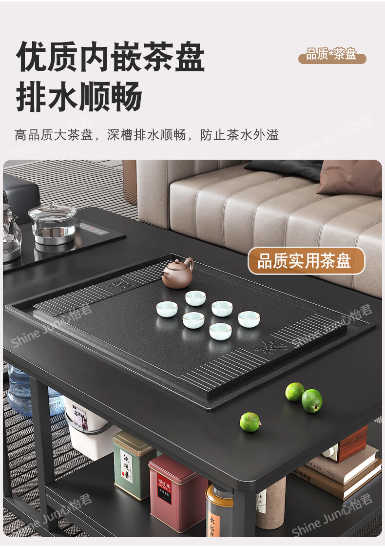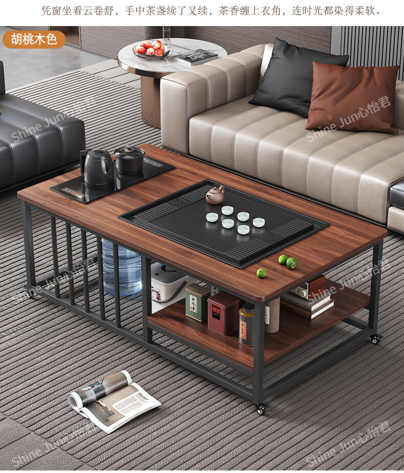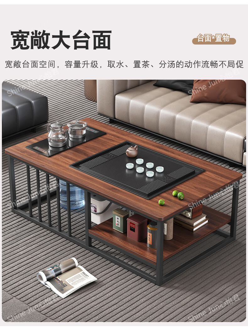 心怡君【今日顺丰闪发】功夫茶几烧水茶桌泡茶台桌一体家用烧水简约茶几 胡桃色【不锈钢茶壶】 长120宽55高60cm【赠电磁炉+茶具】
