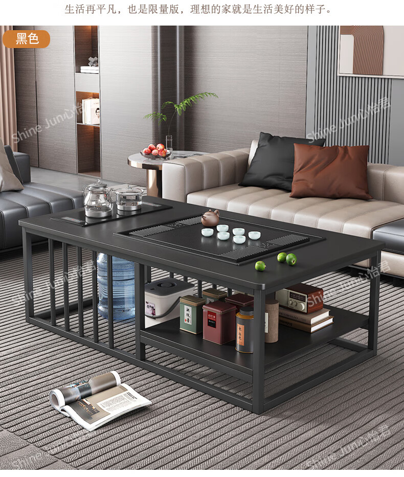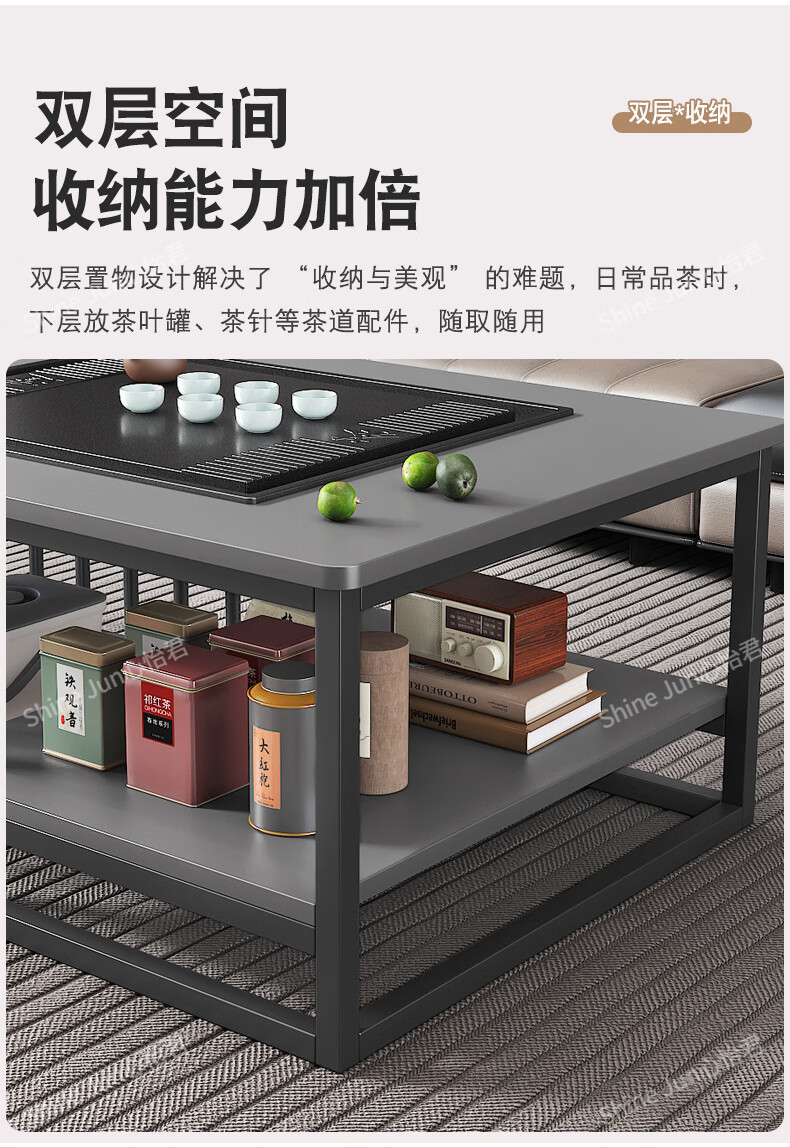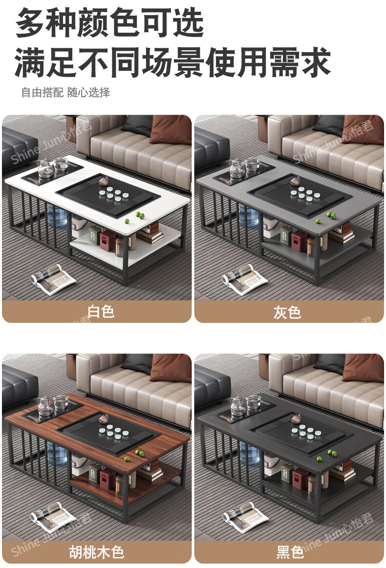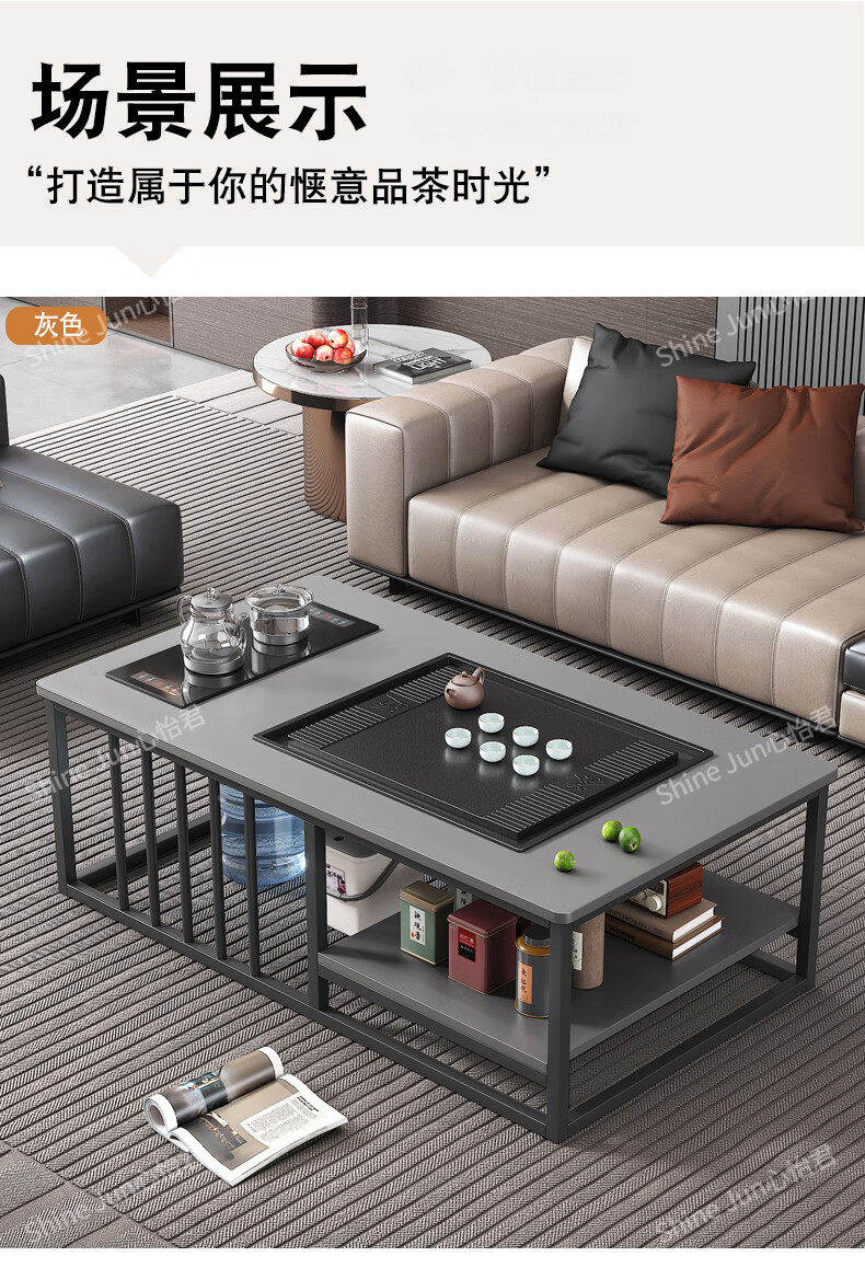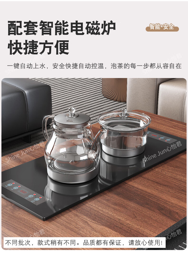 心怡君【今日顺丰闪发】功夫茶几烧水茶桌泡茶台桌一体家用烧水简约茶几 胡桃色【不锈钢茶壶】 长120宽55高60cm【赠电磁炉+茶具】