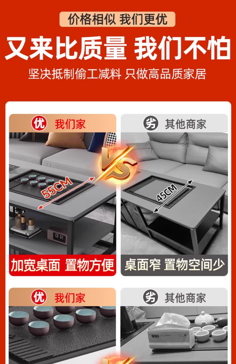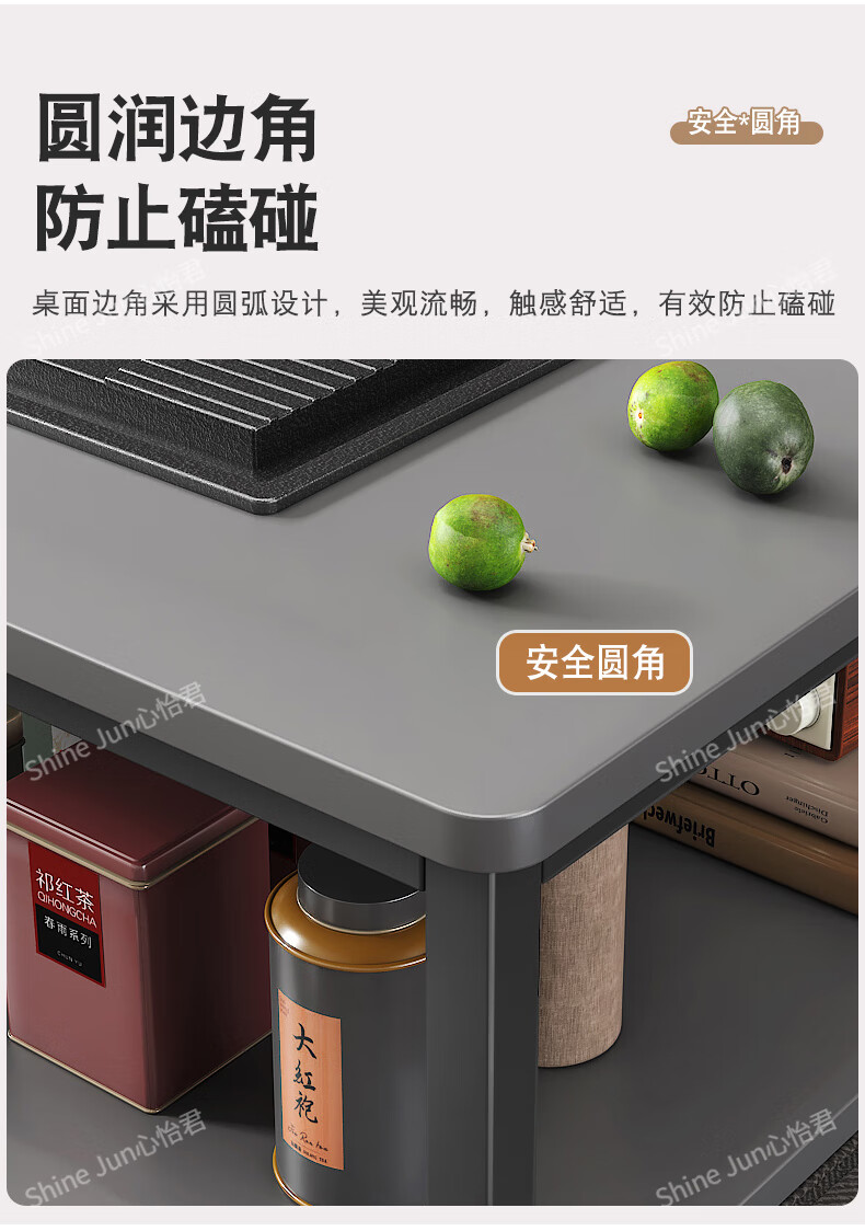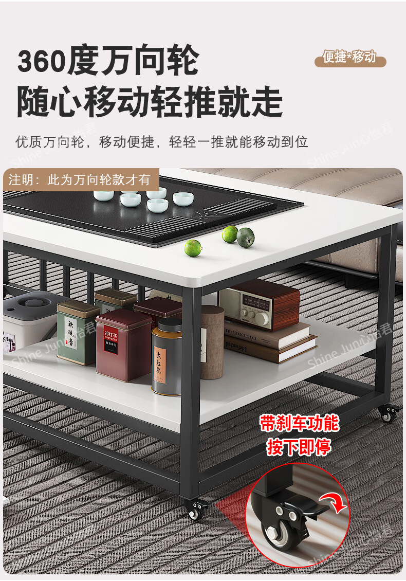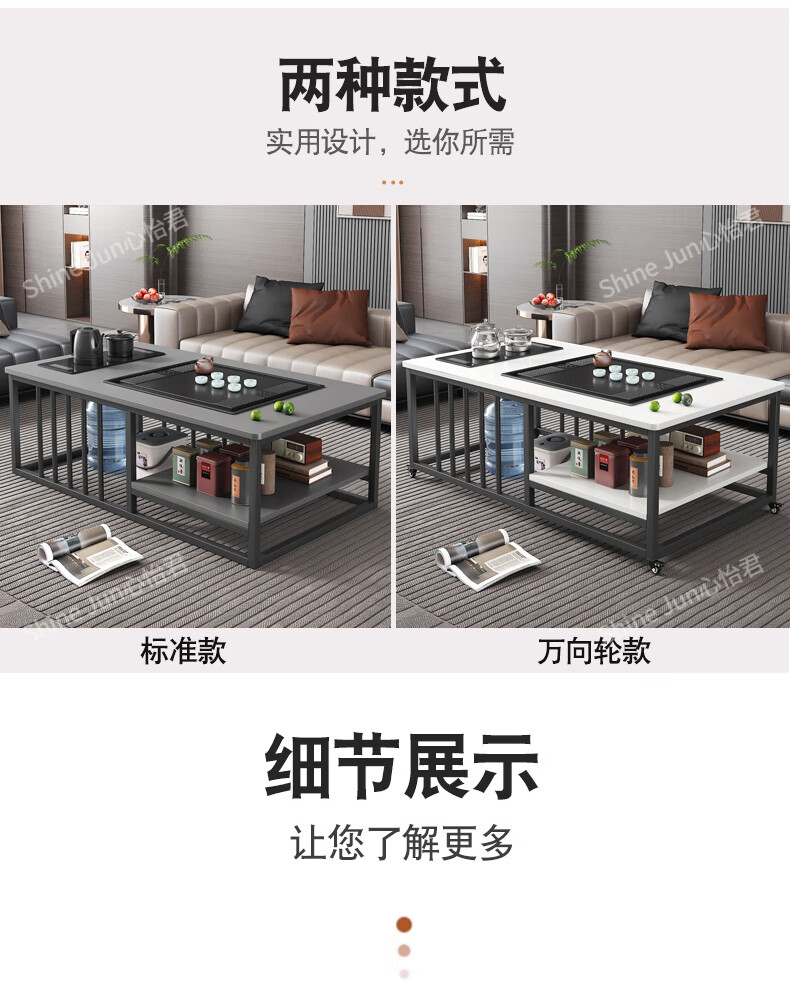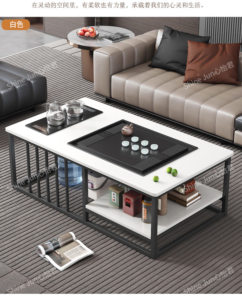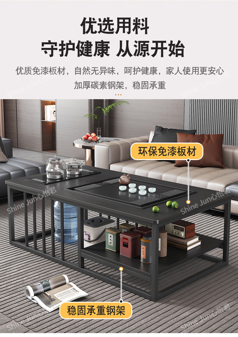 心怡君【今日顺丰闪发】功夫茶几烧水茶桌泡茶台桌一体家用烧水简约茶几 胡桃色【不锈钢茶壶】 长120宽55高60cm【赠电磁炉+茶具】