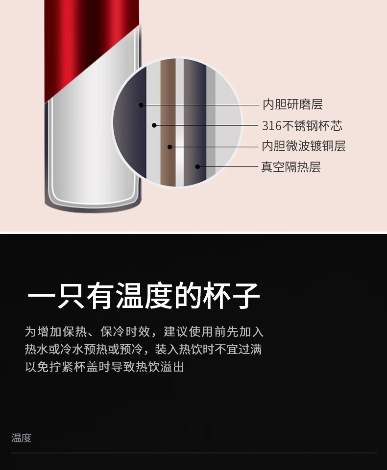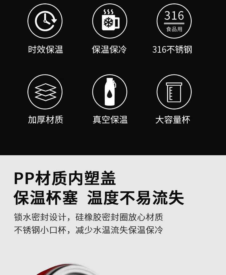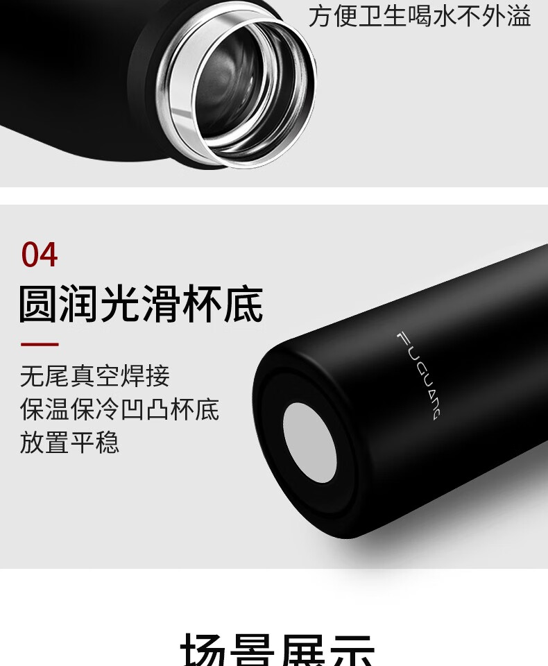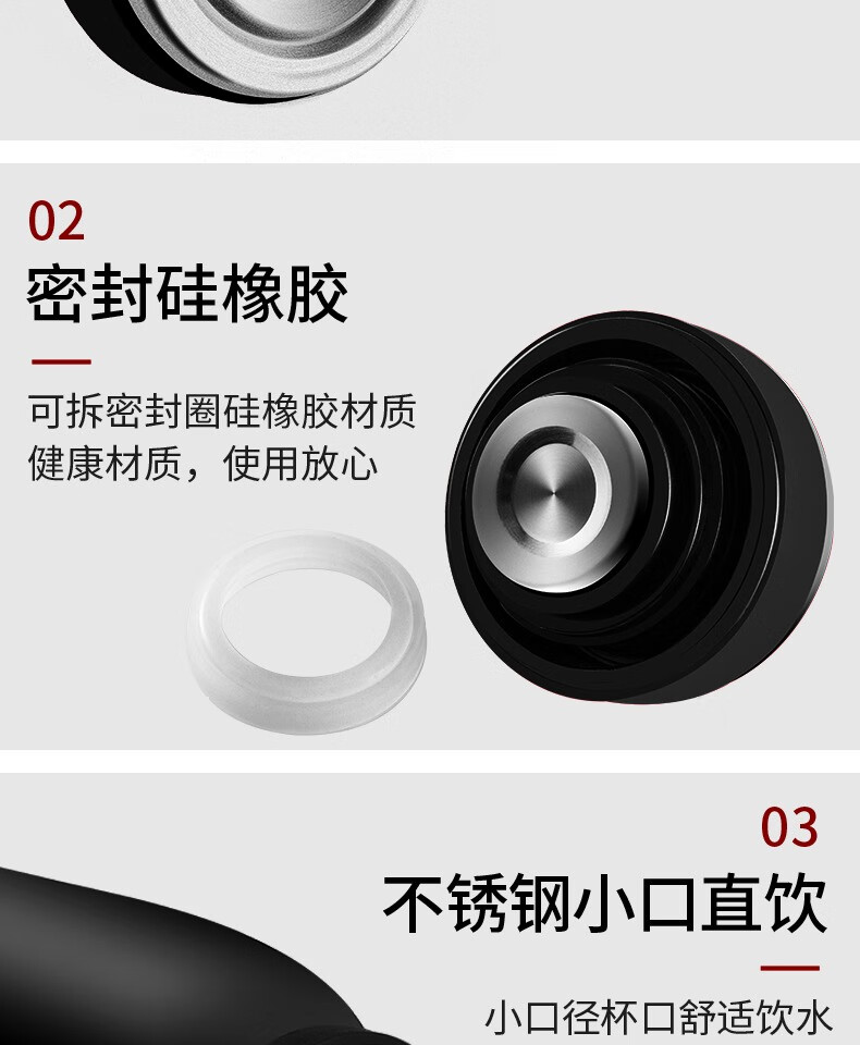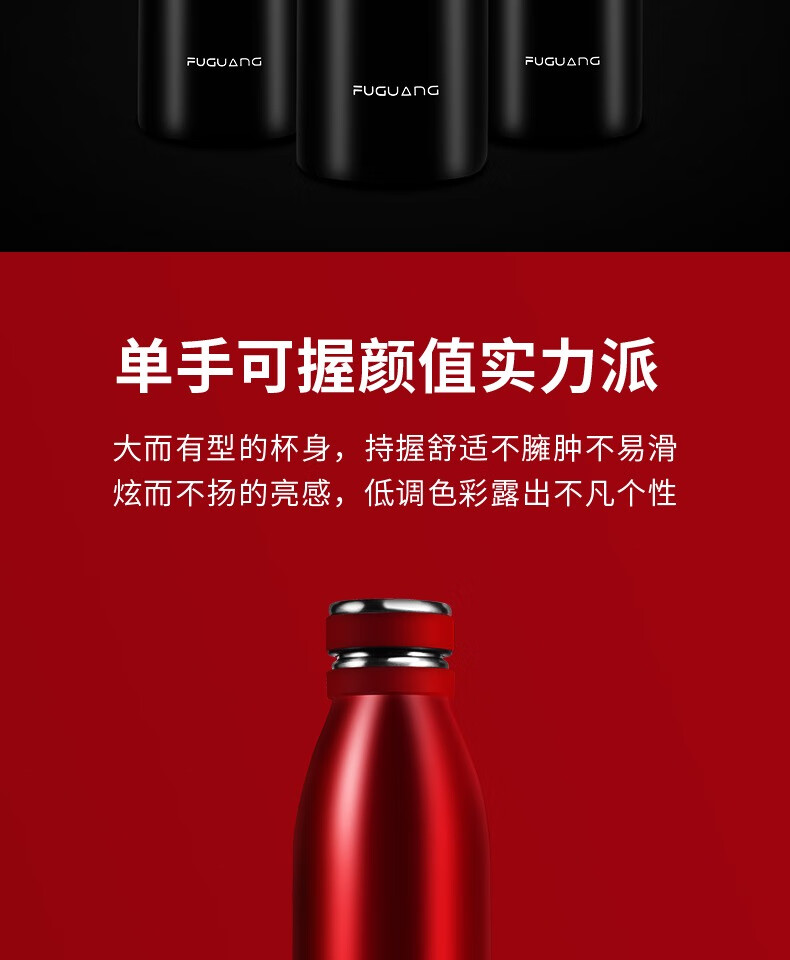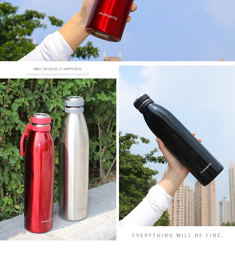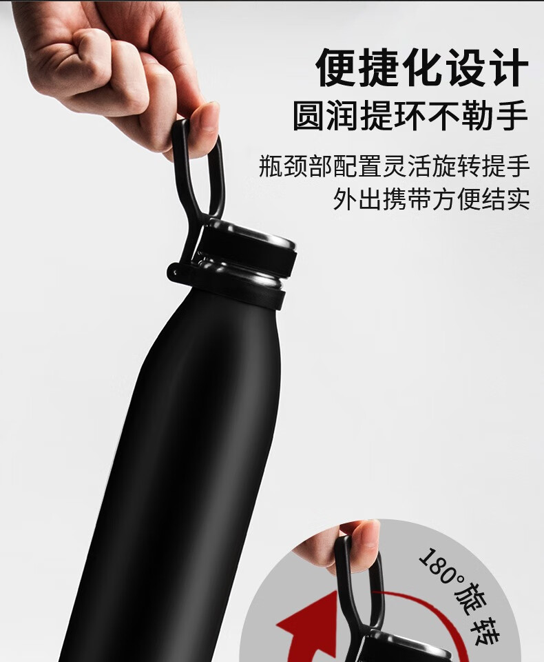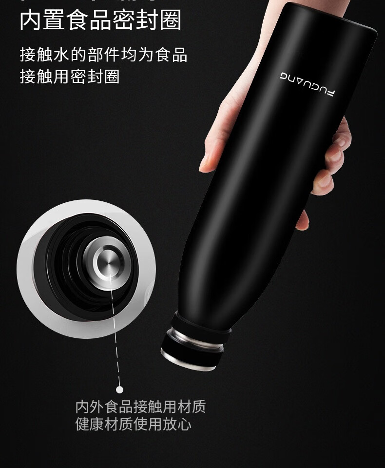 富光保温杯大容量男士316不锈钢水杯学生户外运动便携水壶1000ml杯子 黑色-750ML