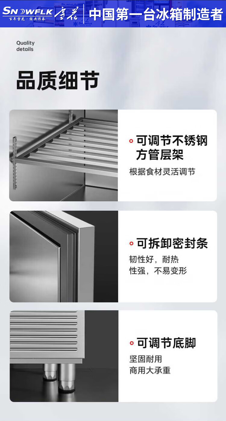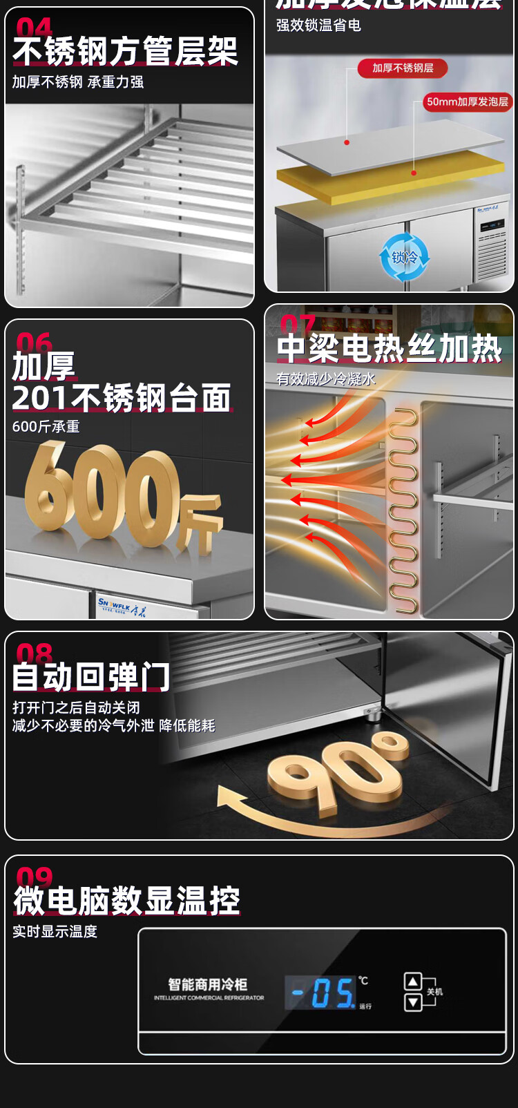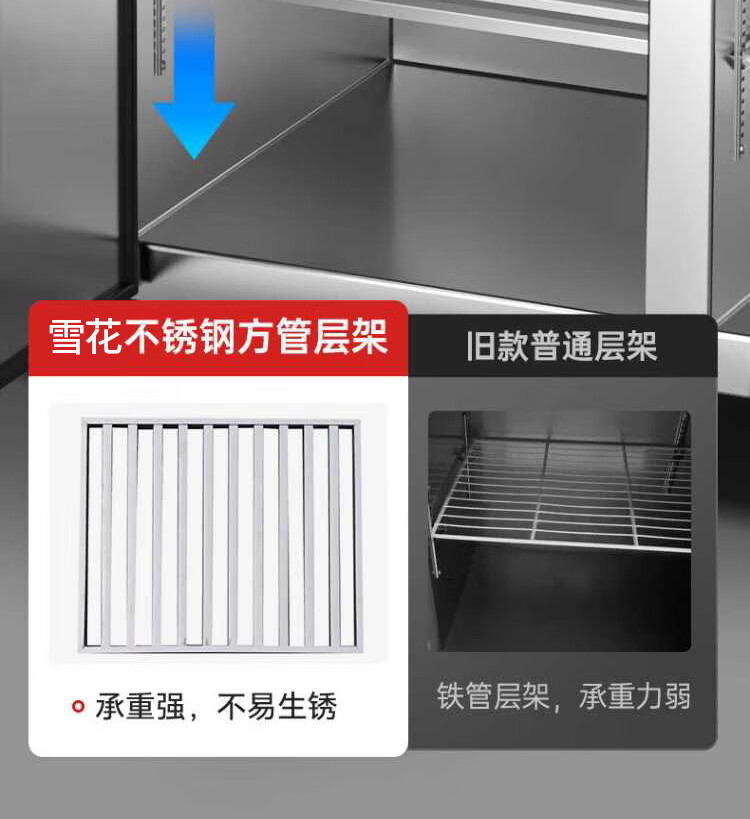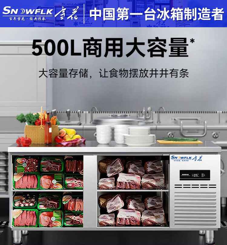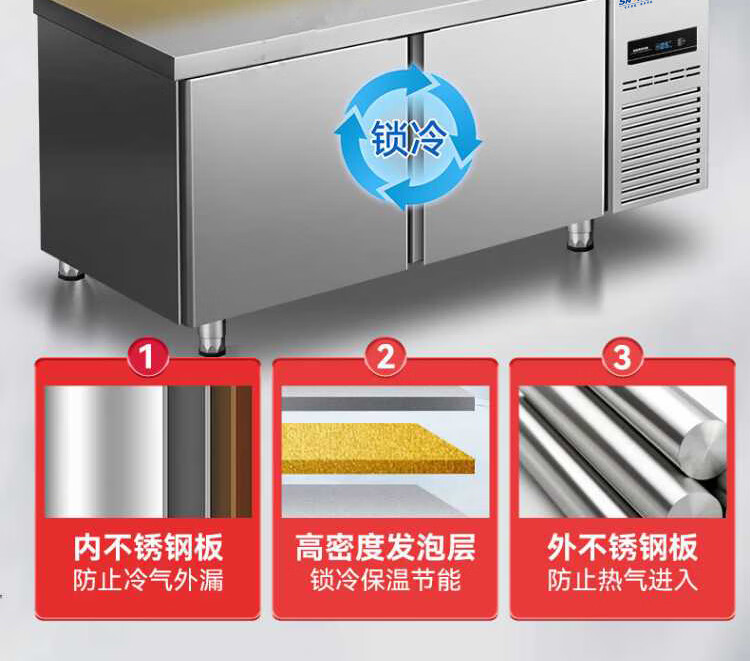 雪花冷藏工作台奶茶店设备全套水吧台不锈钢保鲜平冷操作台冰柜 厨房冰箱商用保鲜工作台 冷冻丨1.8M-0.8M-0.8M铜管低耗一级节能 2025全新升级丨铜管高效制冷豪华款