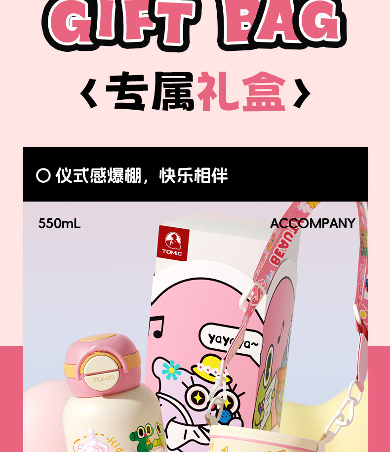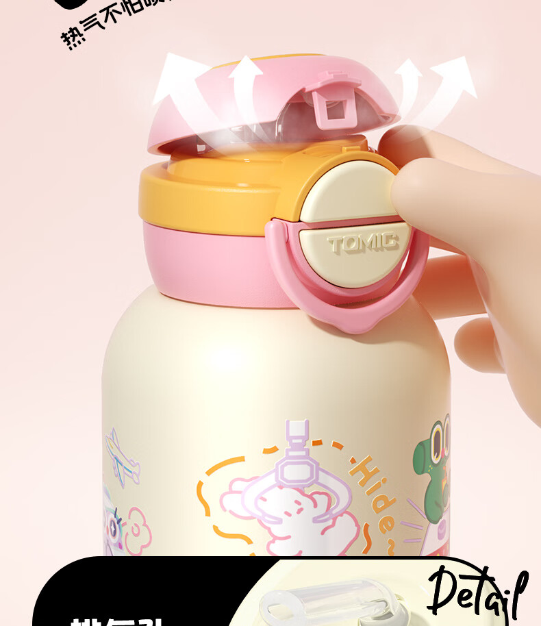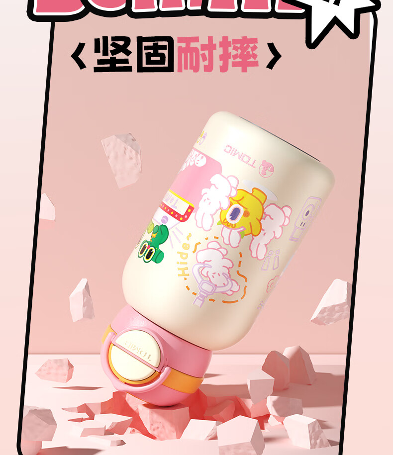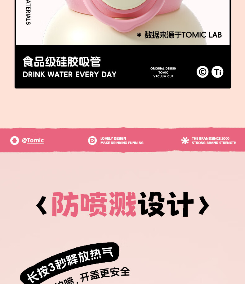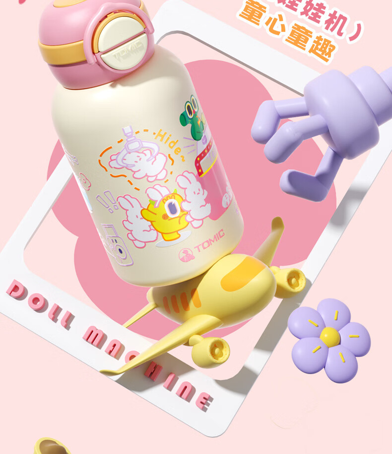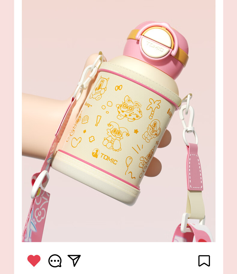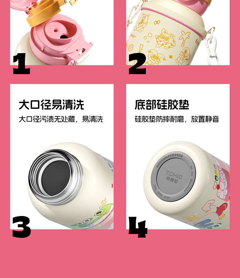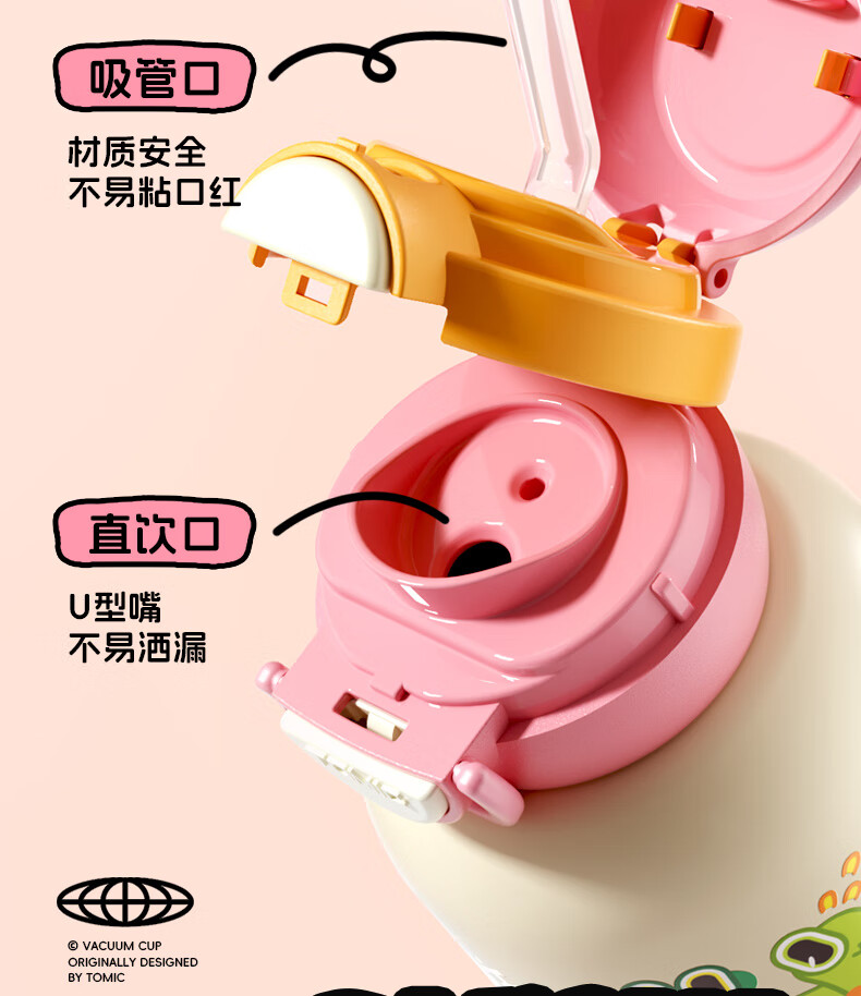 特美刻(TOMIC)儿童保温杯316不锈钢水杯幼儿园小学生开学必备水壶吸管直饮两用 粉色【一杯双饮+送杯套】550ml