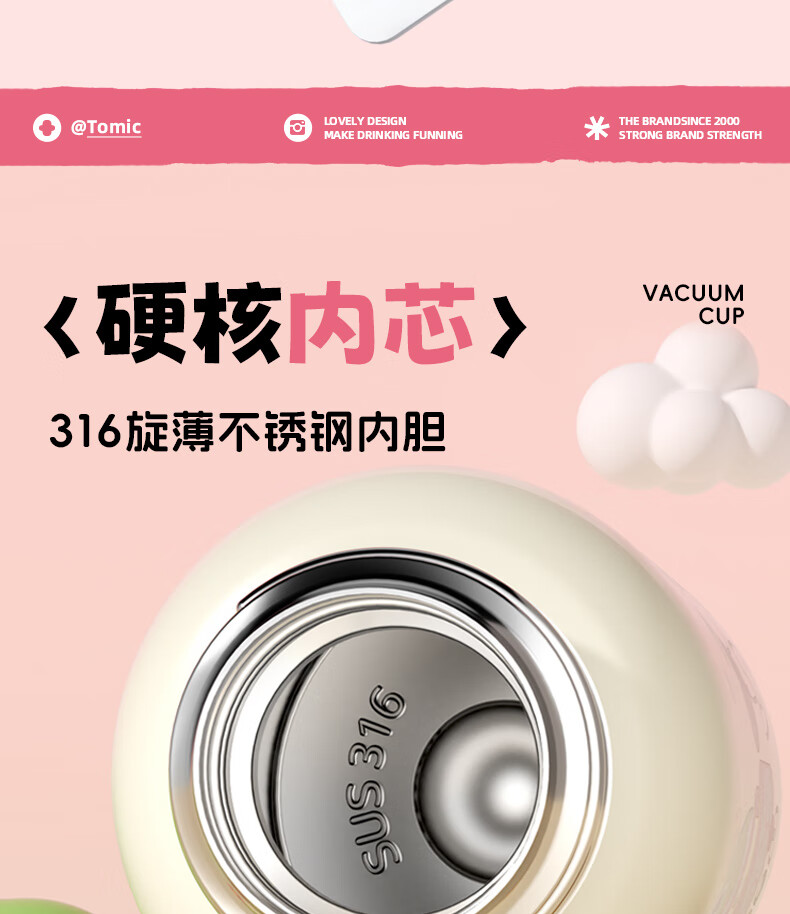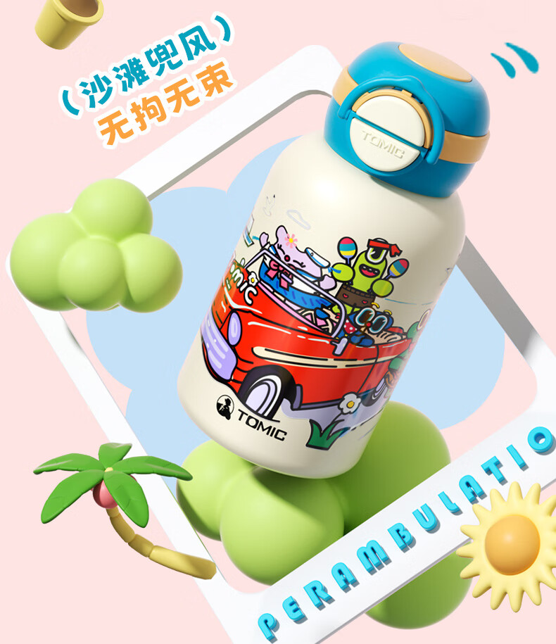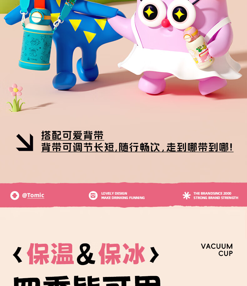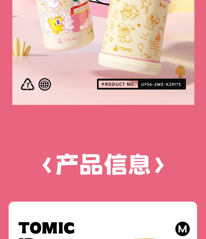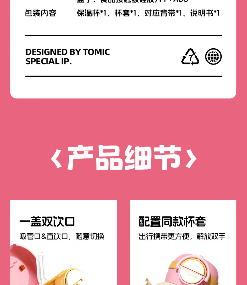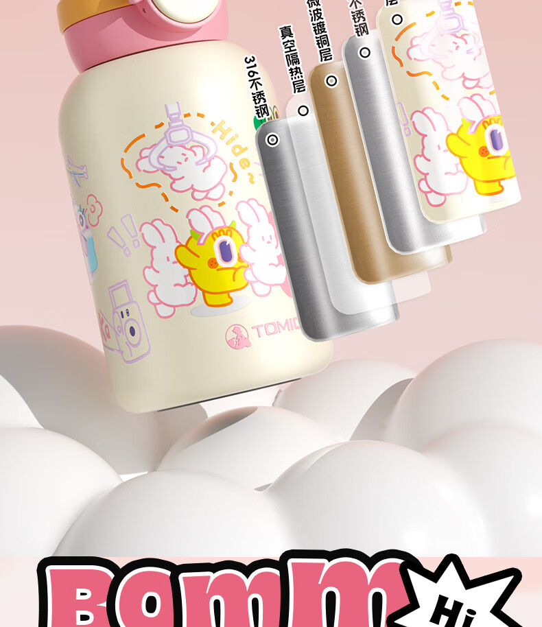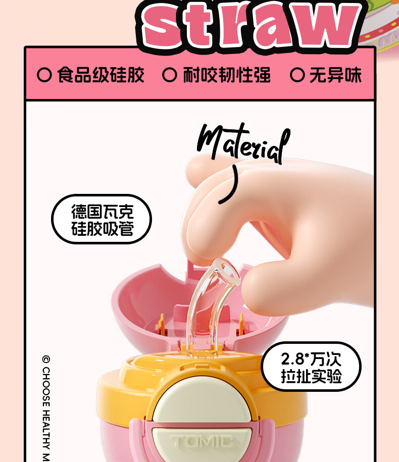 特美刻(TOMIC)儿童保温杯316不锈钢水杯幼儿园小学生开学必备水壶吸管直饮两用 粉色【一杯双饮+送杯套】550ml