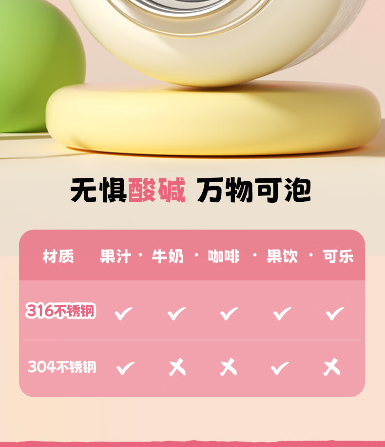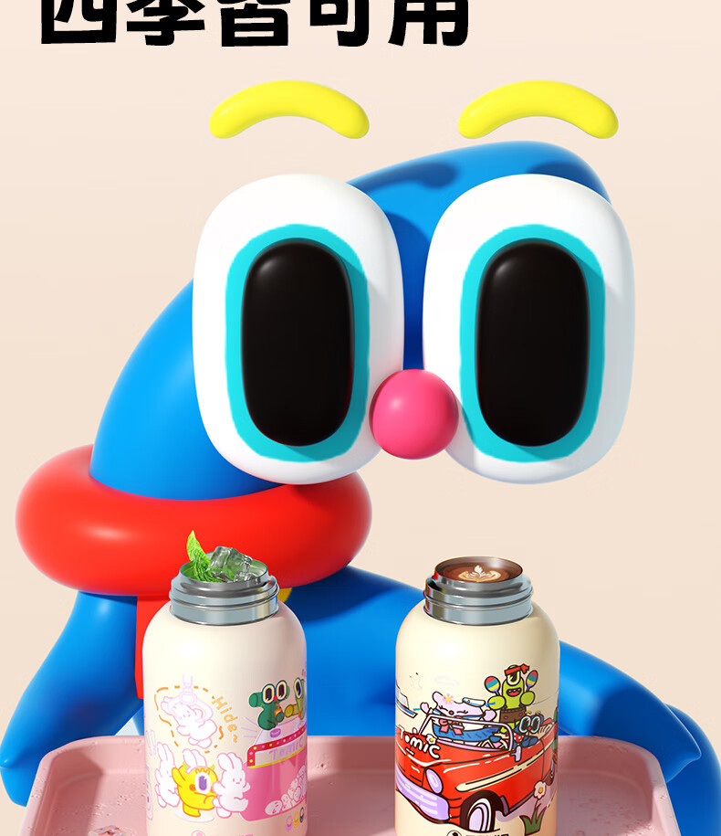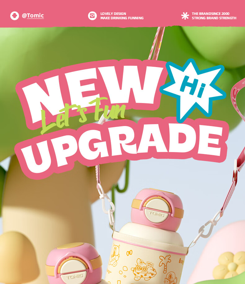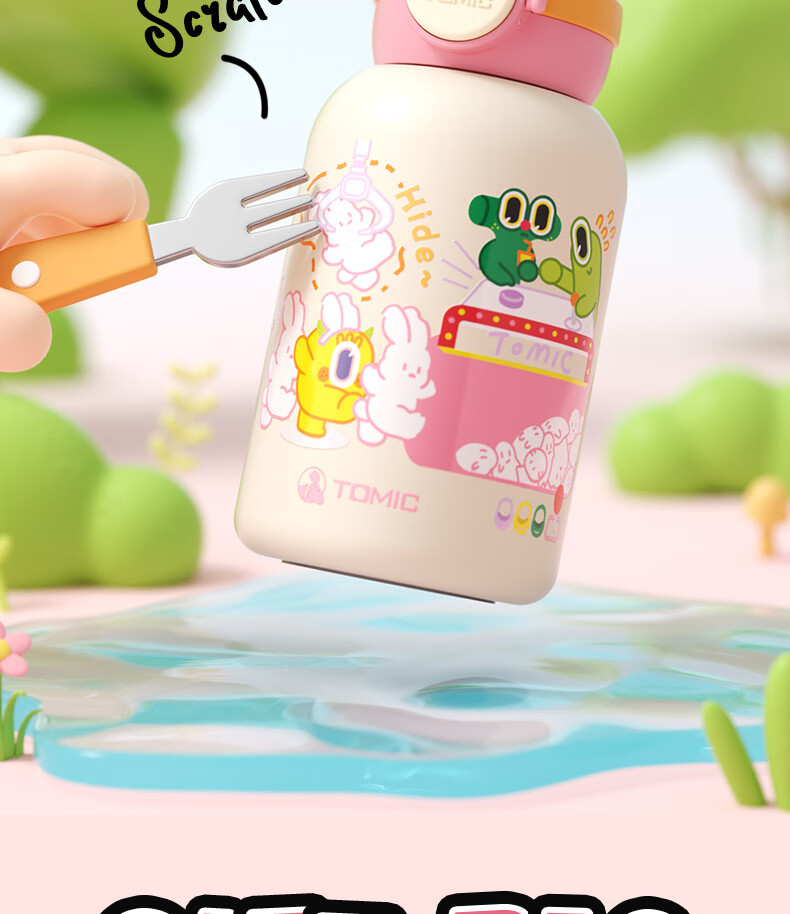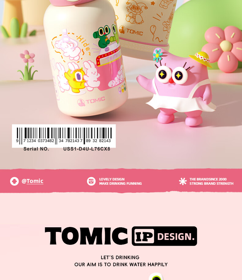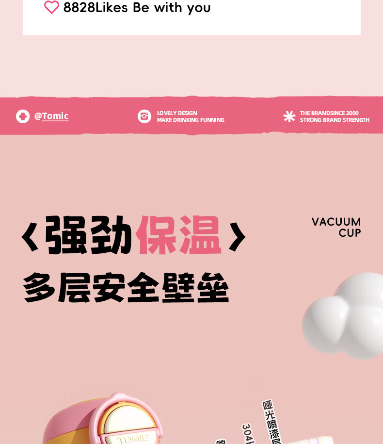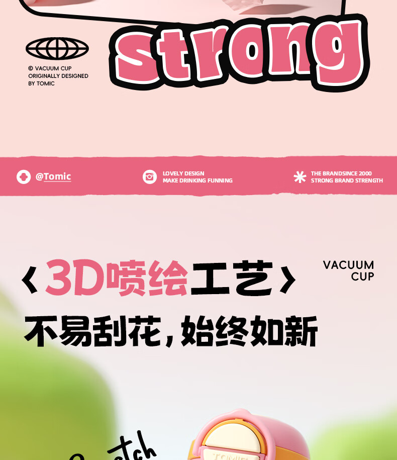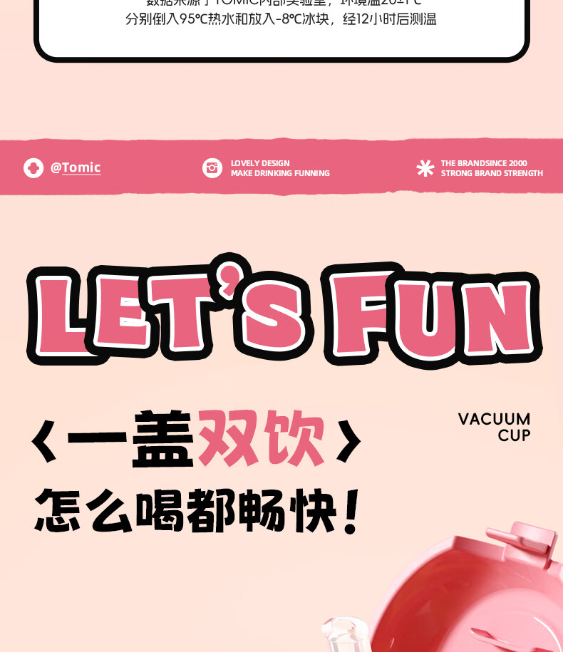 特美刻(TOMIC)儿童保温杯316不锈钢水杯幼儿园小学生开学必备水壶吸管直饮两用 粉色【一杯双饮+送杯套】550ml