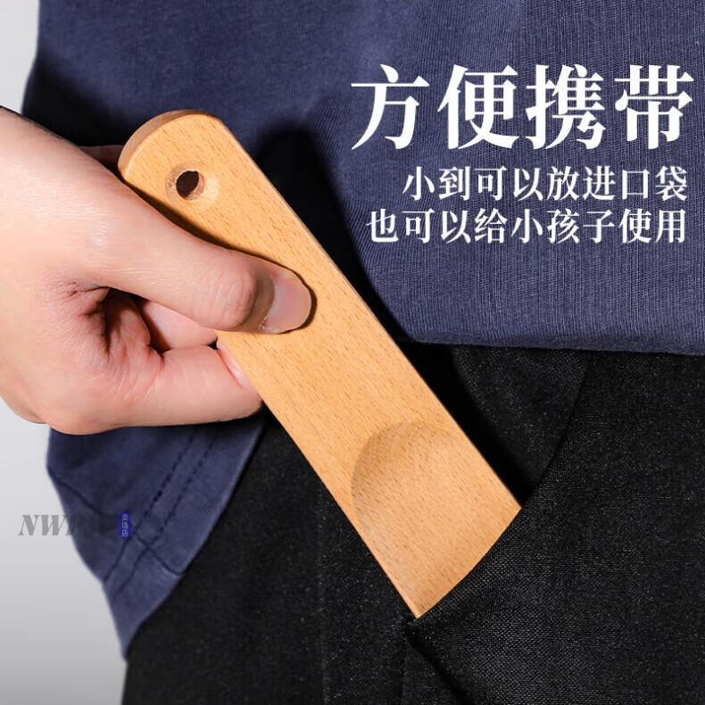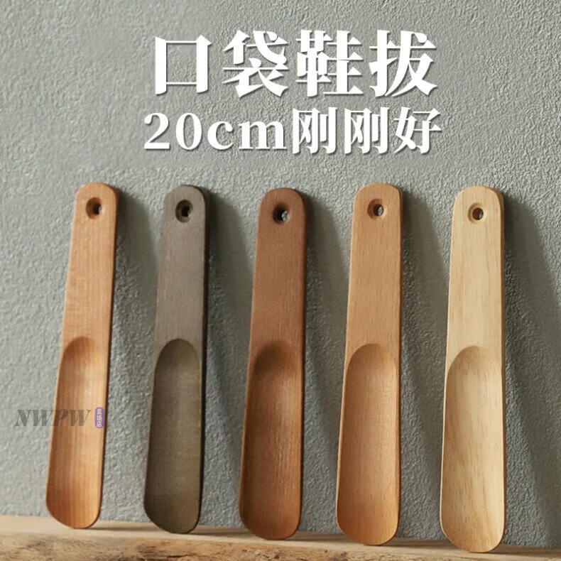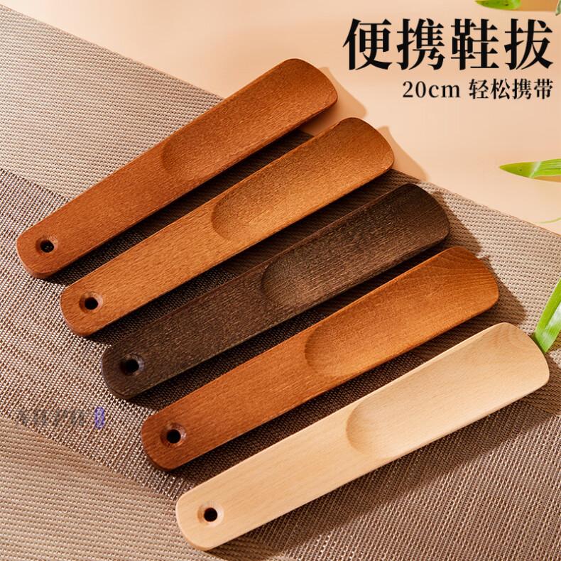 DEATKN德国家用便携旅行鞋抽实木迷你鞋拔儿童提鞋小巧随身穿鞋神器鞋趴 榉木-原木色20cm