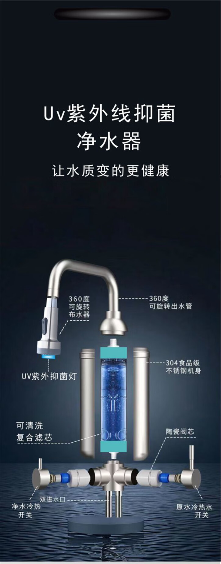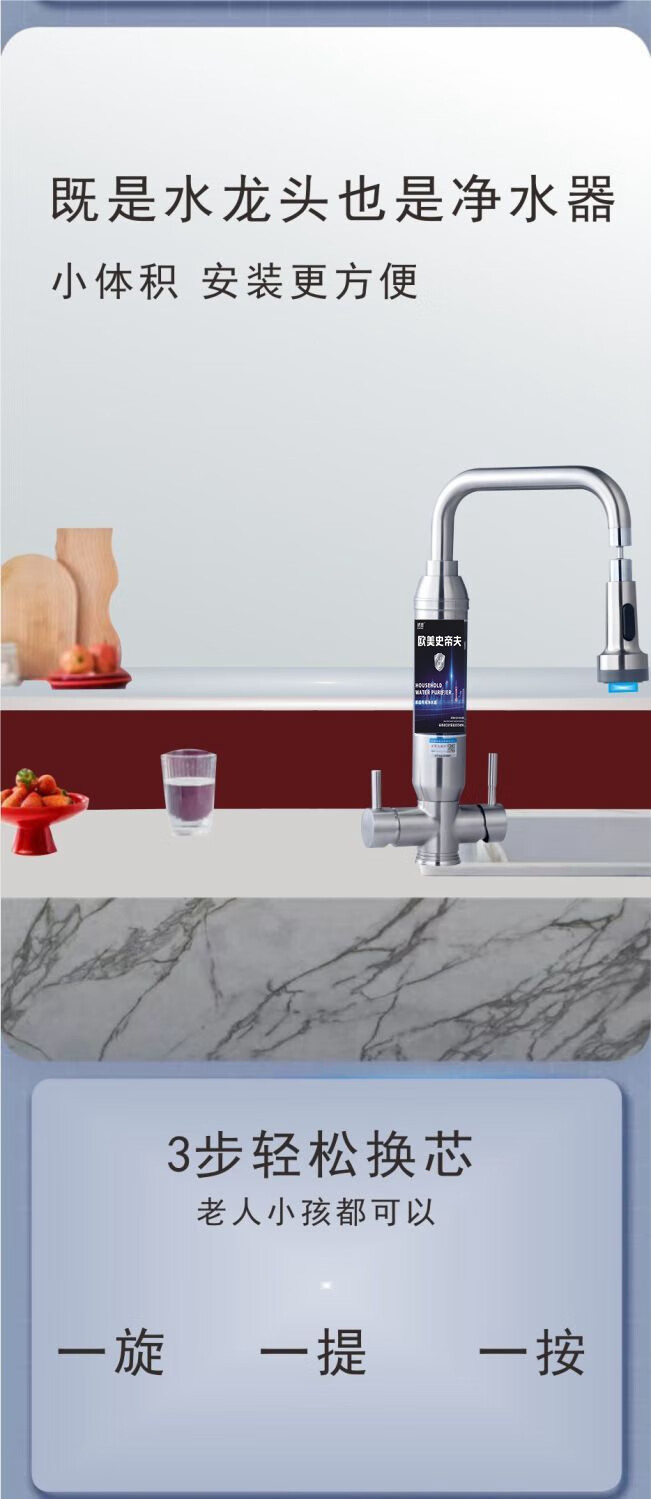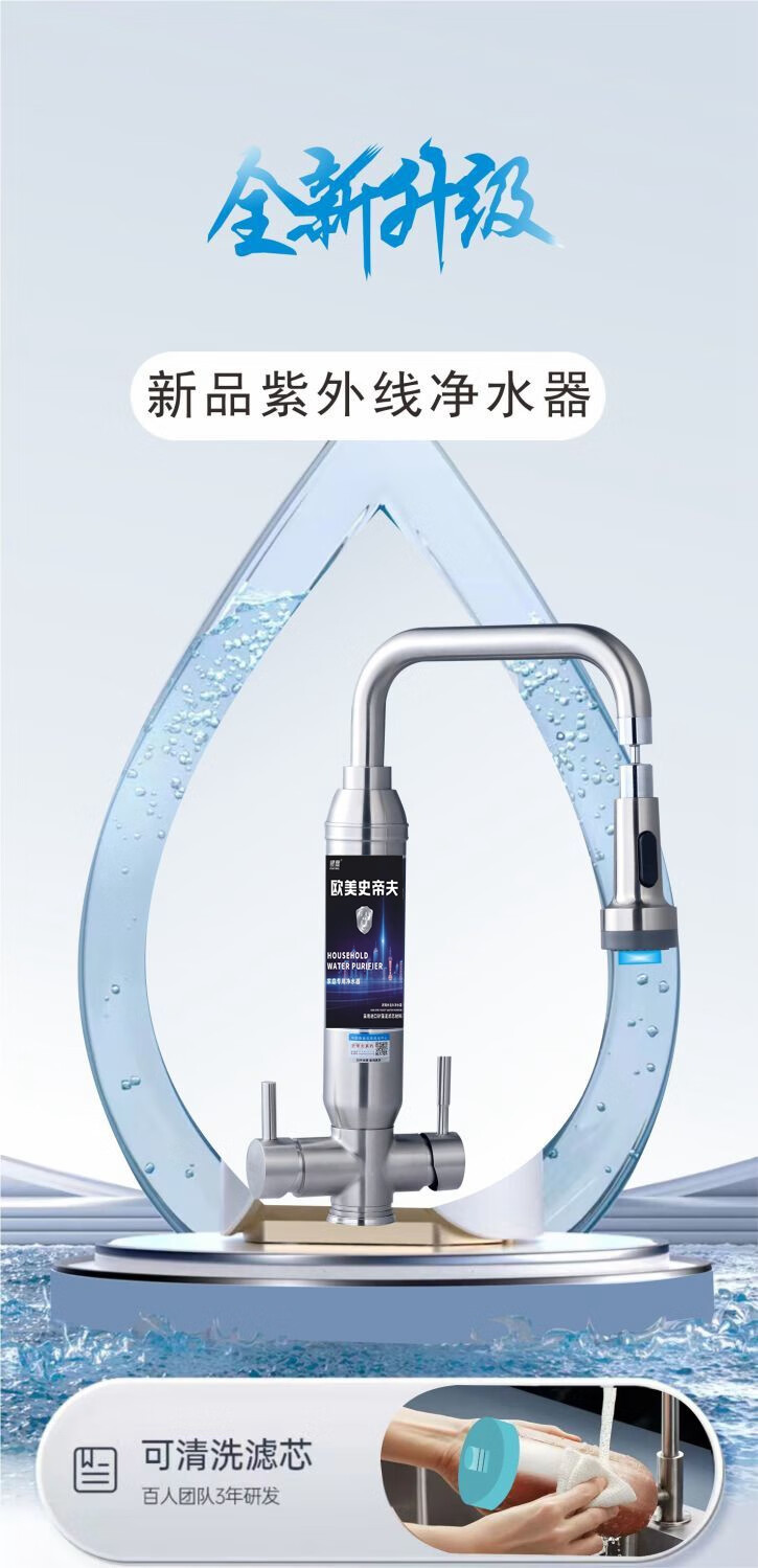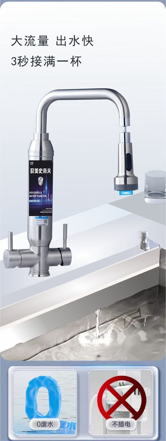 银鹰史帝夫净水器家用厨房过滤水吏蒂夫不锈钢双开关阀陶瓷滤芯除垢版除余氯异味水龙头净饮一体机台式净水机 双开关阻垢版(含除氯)一机二芯 自己安装【提供视频在线指导】