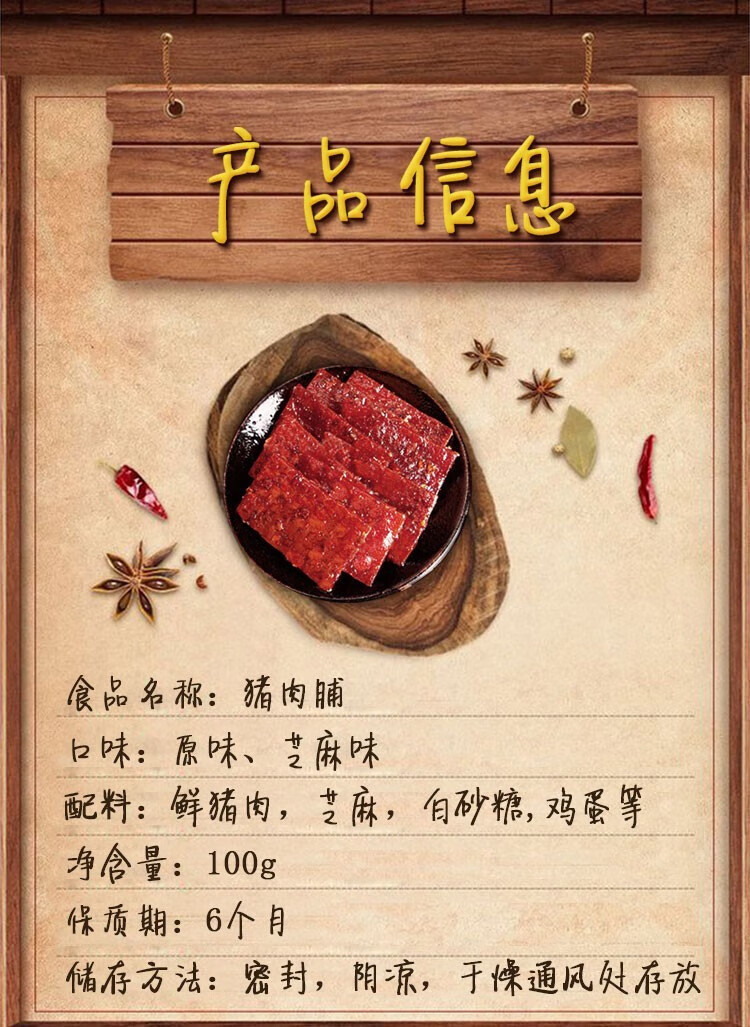 味滋源肉干肉脯靖江特产 肉脯休闲零食办公室零食小吃 猪肉脯100g/袋 原味 2件