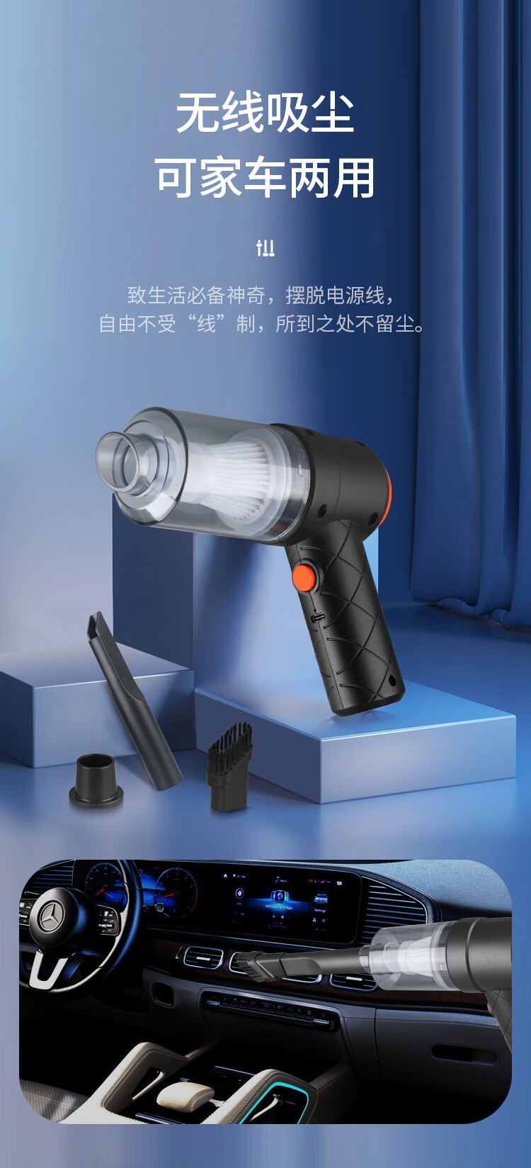 【严选】汽车无线迷你吸尘器车载便携式手枪大功率吸尘器家用宠物 吸吹两用