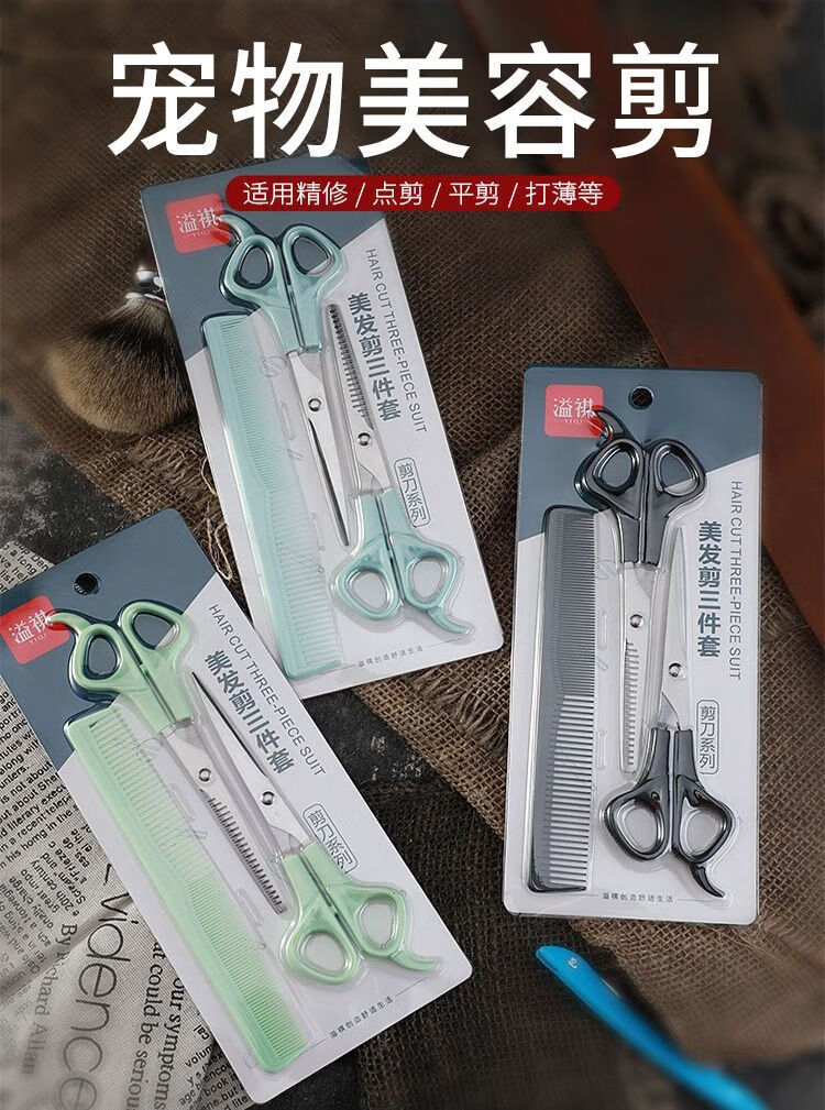 何佳功宠物猫剪刀狗狗美容剪泰迪狗狗剪毛修毛工具直剪牙剪套装家用 牙剪+直剪+排梳+收纳包