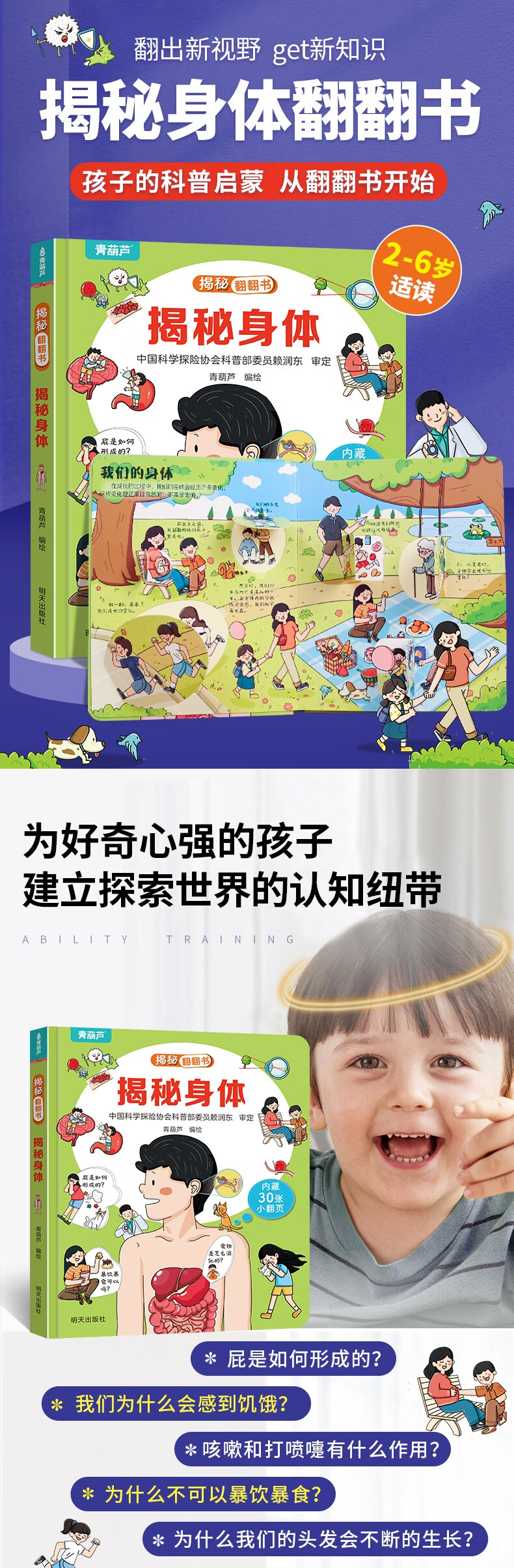 揭秘翻翻书3d立体书 幼儿早教撕不烂绘本1-2-3岁 宝宝一两岁益智启蒙认知玩具图书0-3-6岁探索恐龙海洋太空揭秘系列书籍 我的科学启蒙翻翻书礼盒装 全10册