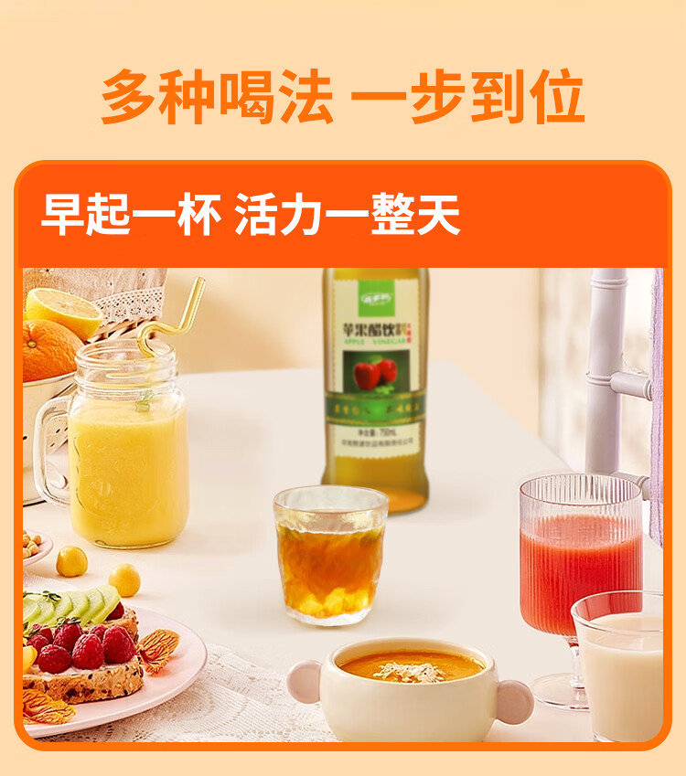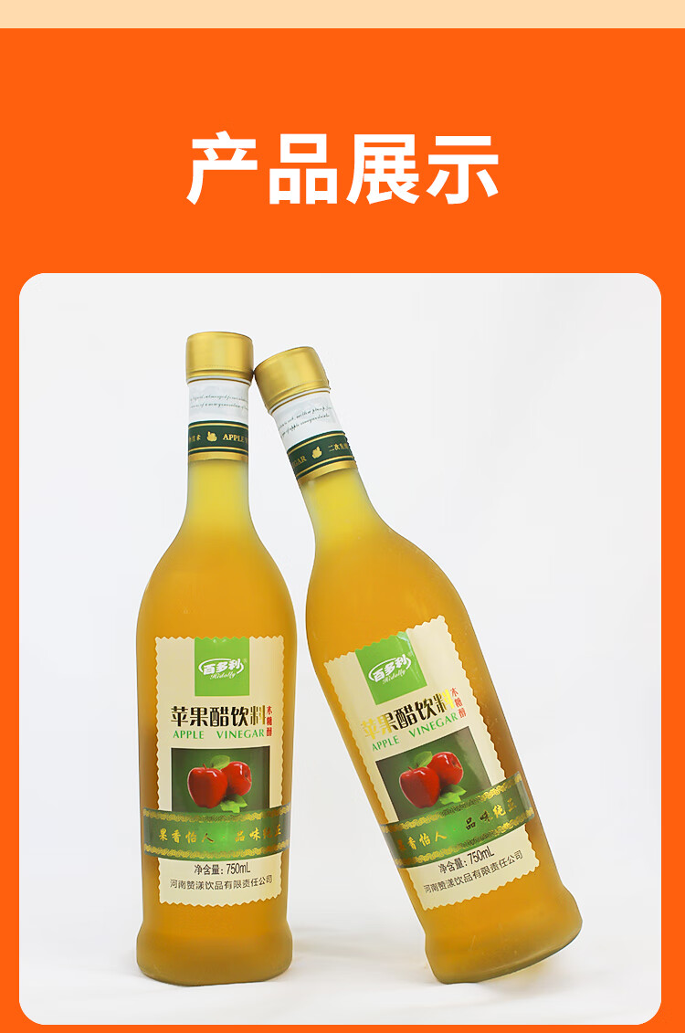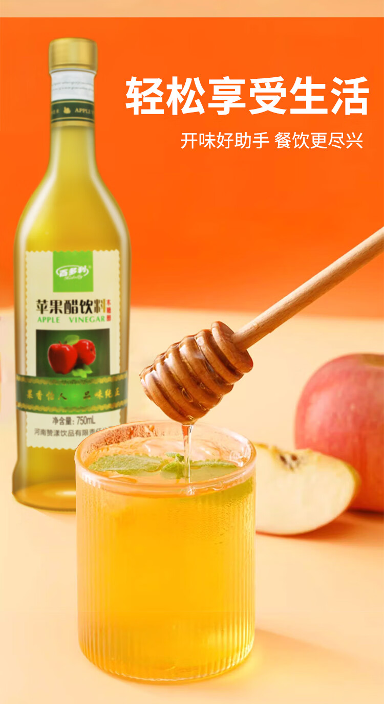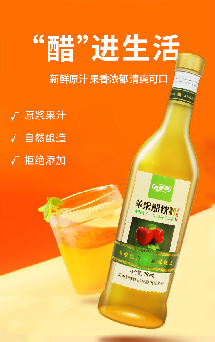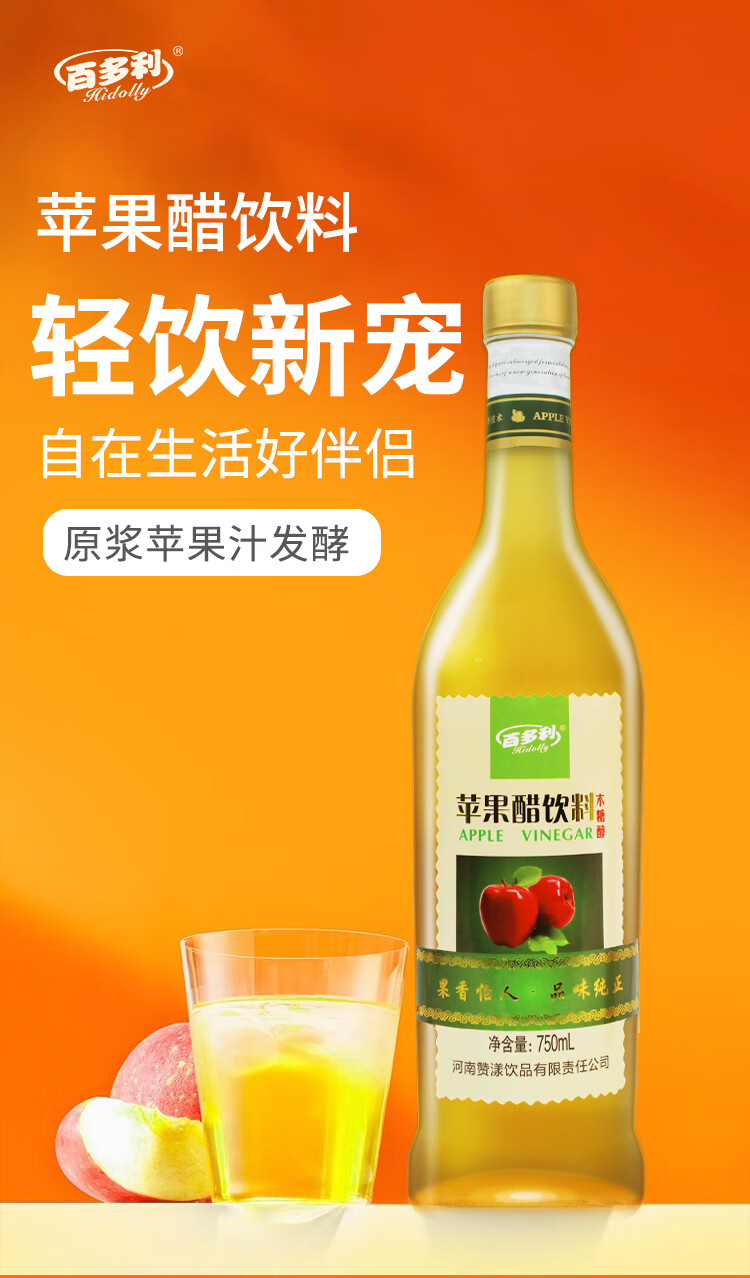 百多利苹果醋饮料750ml*2瓶正宗苹果发酵原浆0脂0蔗糖果蔬汁饮品 苹果醋750ml*2瓶