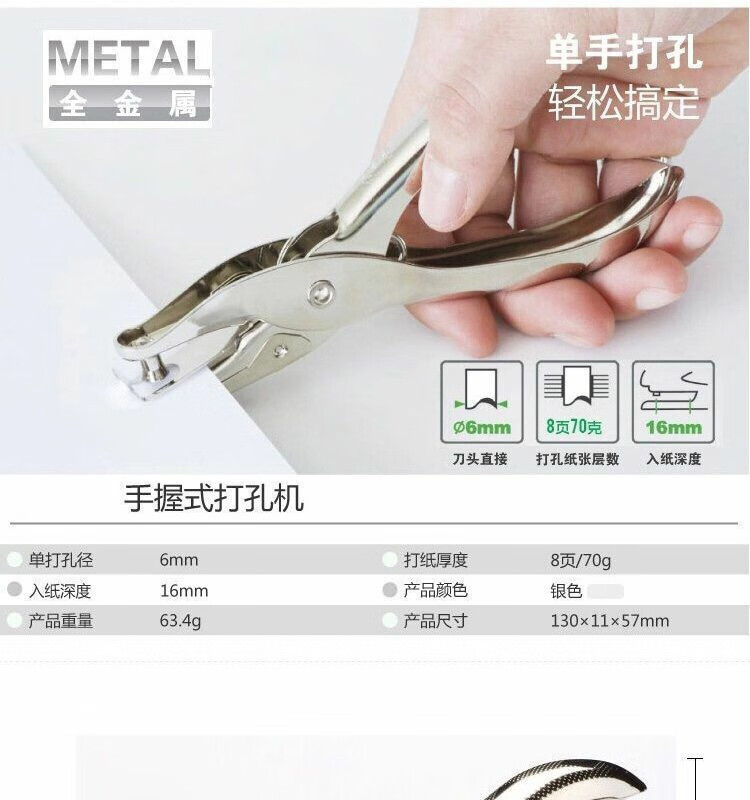 打孔机金属单孔打孔器diy装订圈手工活页纸可爱活页本装订打洞器 金属打孔器/送5个铁环