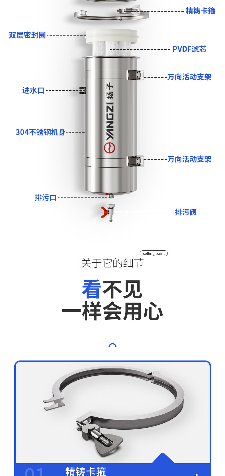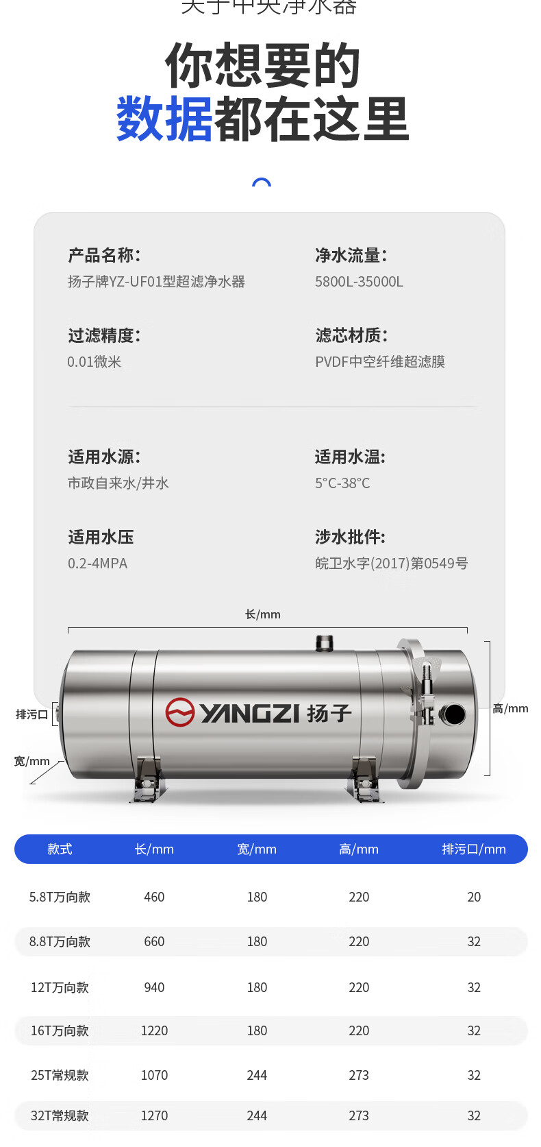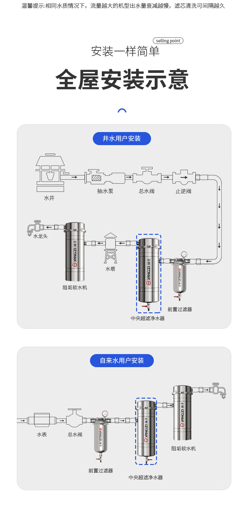 扬子全屋滤芯黄泥水净水器家用不锈钢中央净水机前置过滤器自来水农村井水大流量软水超滤机别墅商用 35000L酒店工厂-净水2件套 接头默认发,更换咨询客服