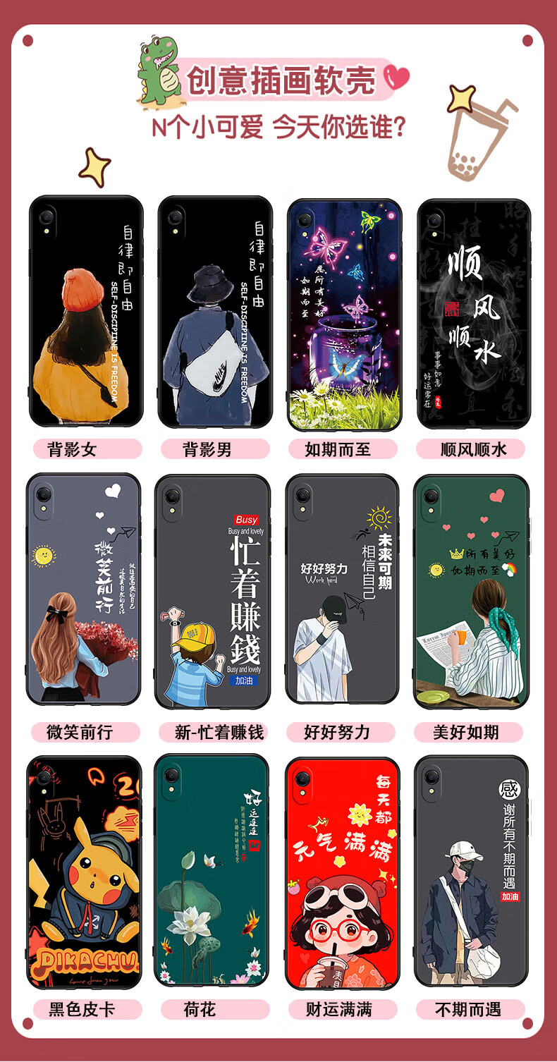 美希意【精选直发】 适用vivoy78+手机壳V2271A网红简约磨砂女款镜头防摔个性创意全包边镜头 曜石黑-平安吉祥-单壳
