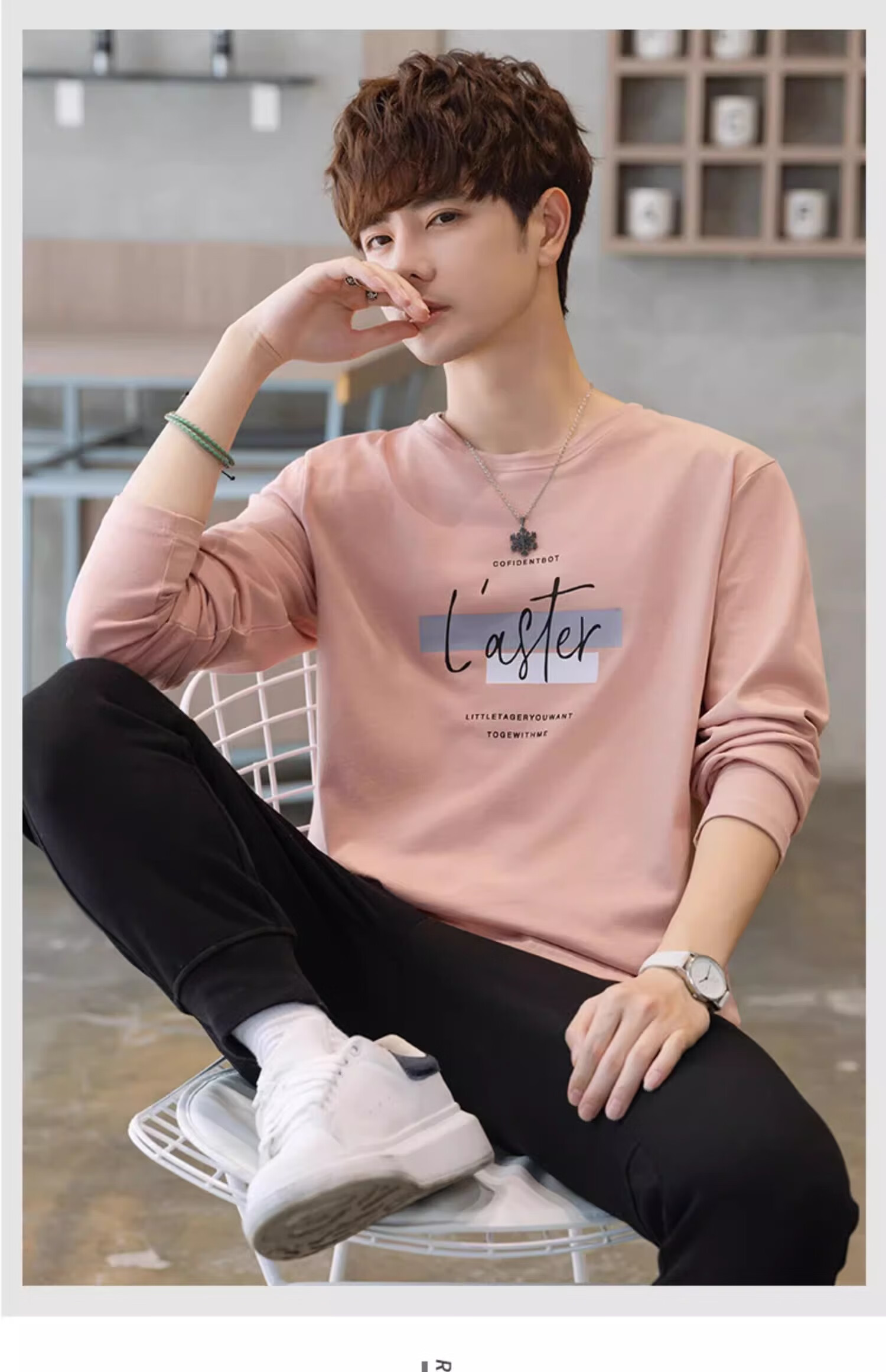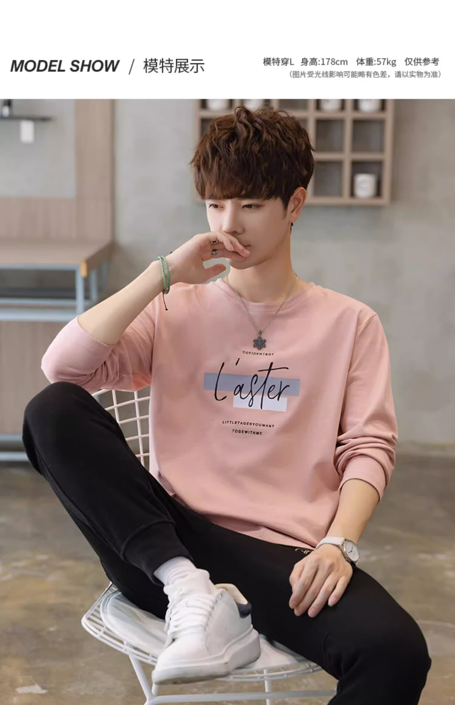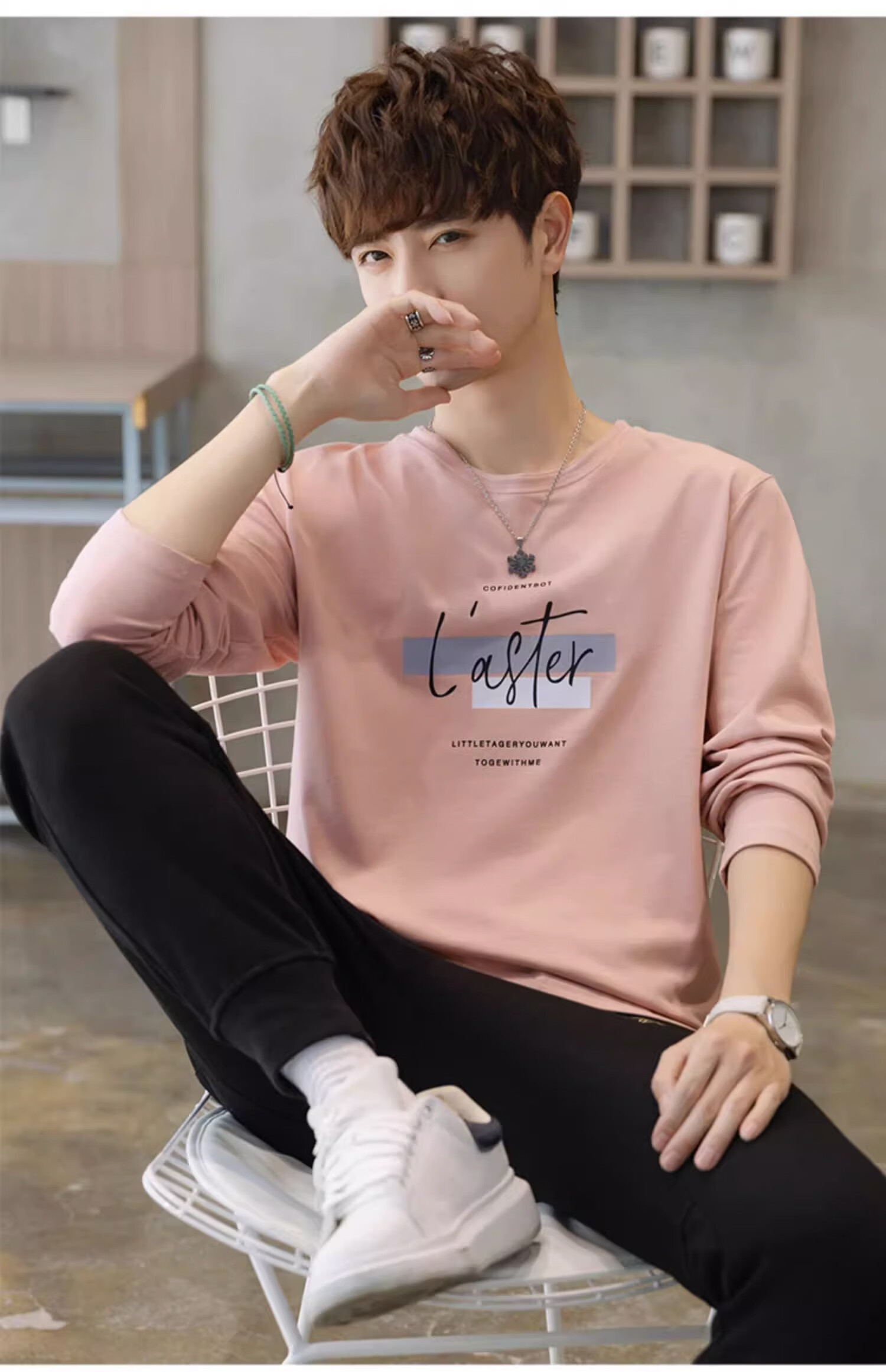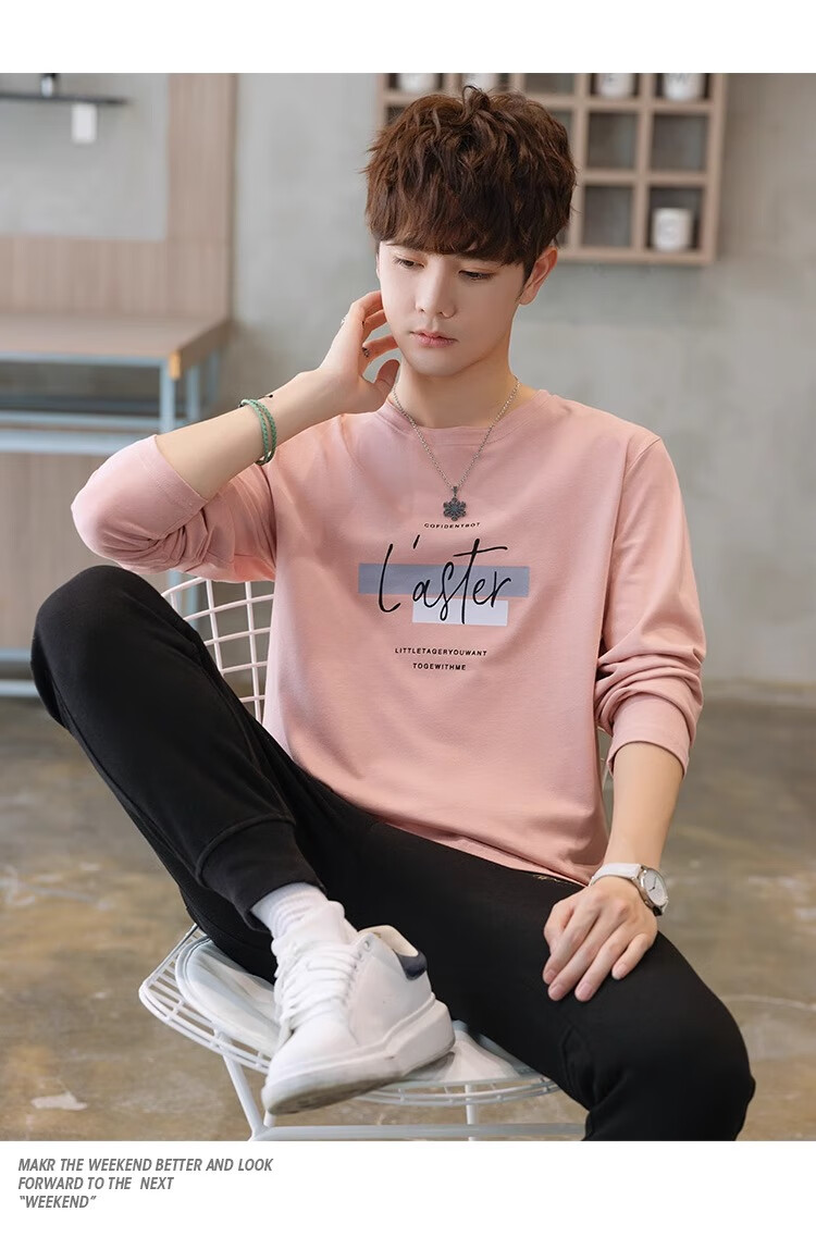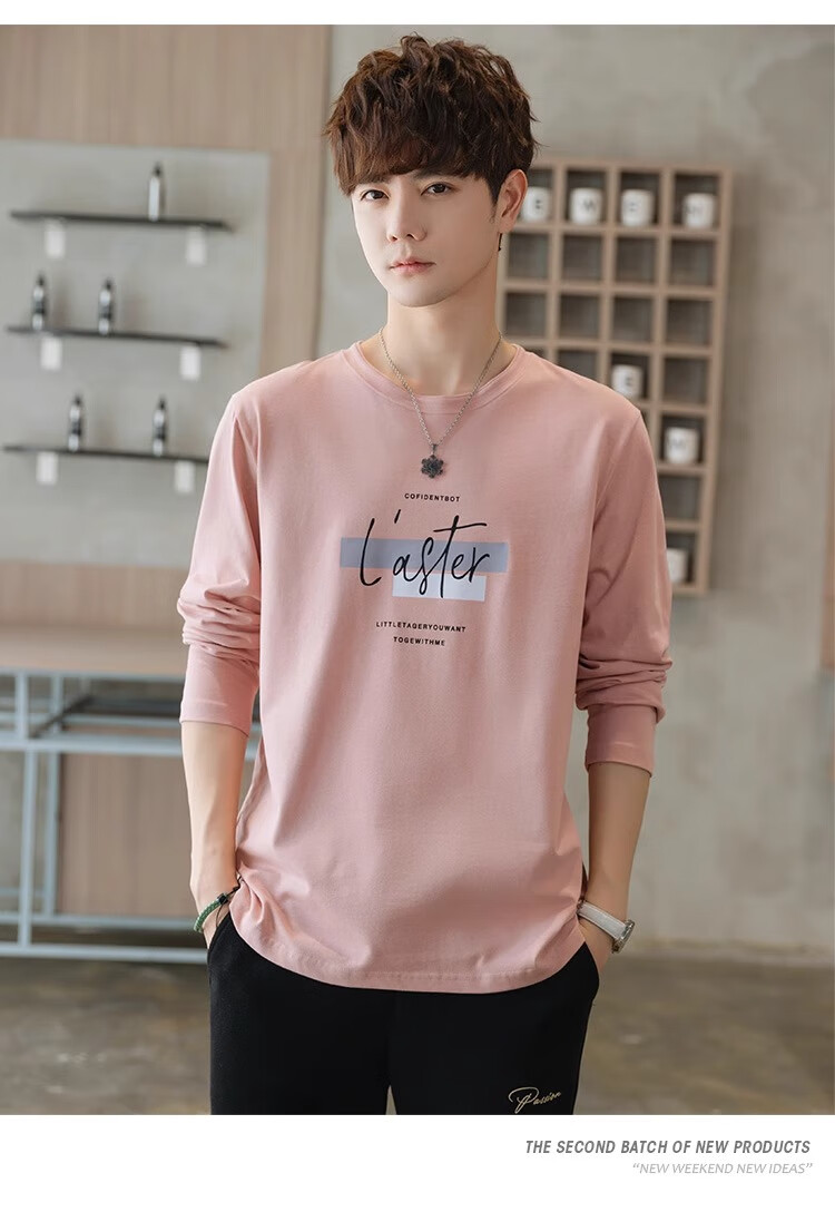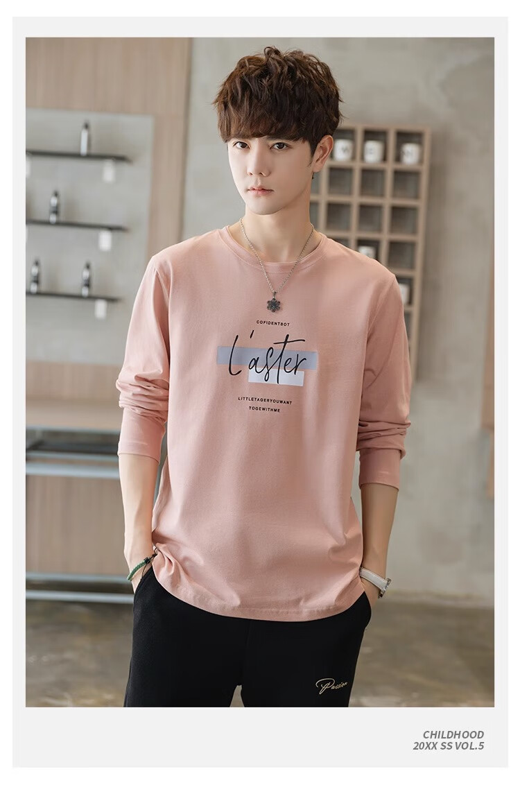 TEEK秋季休闲时尚长袖t恤男士衣服 2025新款男装秋冬青少年体恤衫上衣 HE52A粉色 L