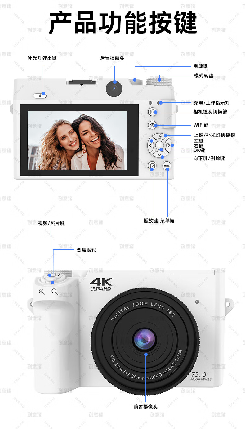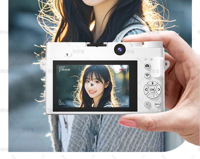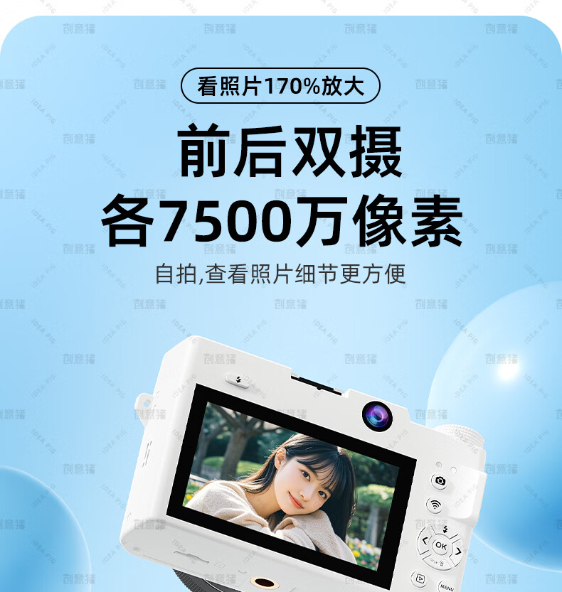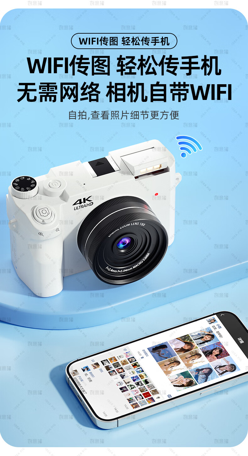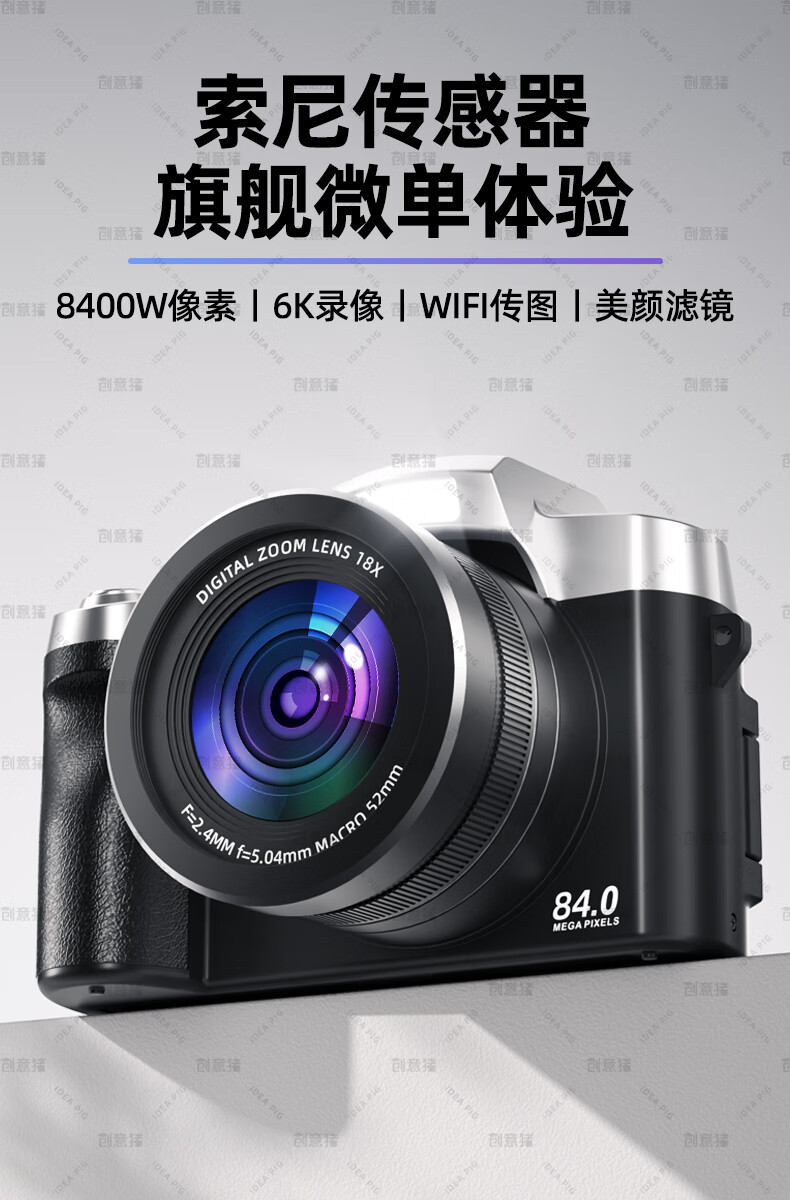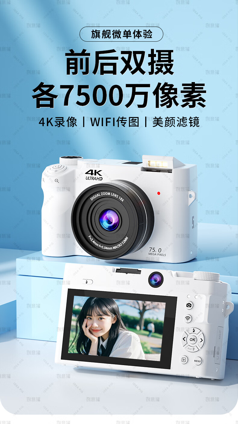 创意猪高清数码相机拍照旅游专用微单相机学生入门级替代ccd相机拍摄专业摄影学生党可上传手机照相机 【前后双摄】7500万像素-4K录像-WiFi传图 18倍变焦+多款美颜滤镜+自带防抖