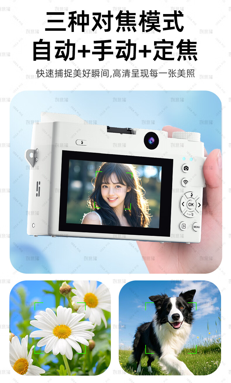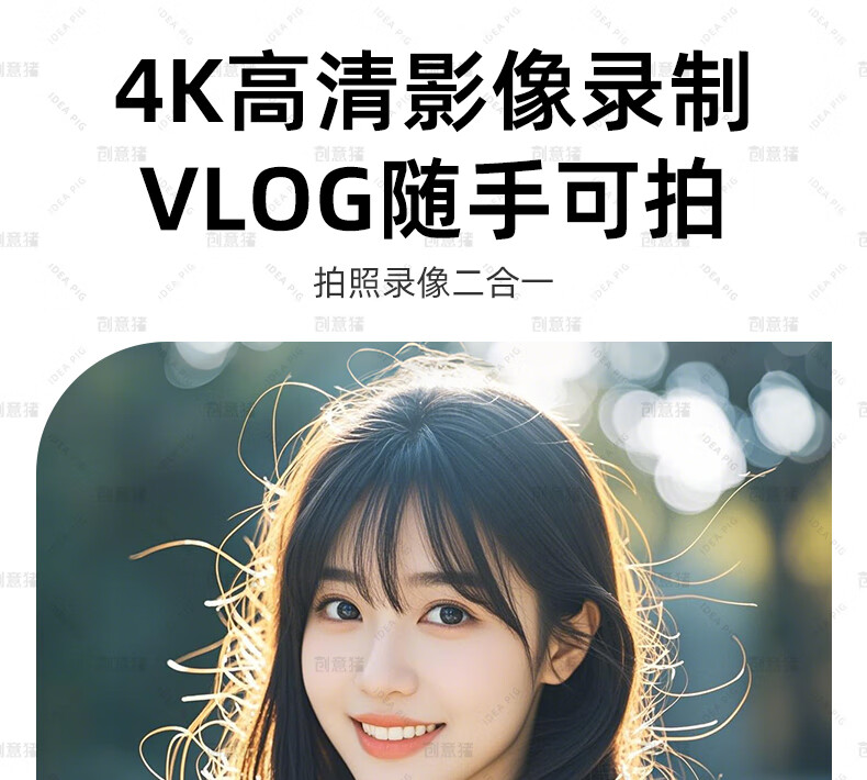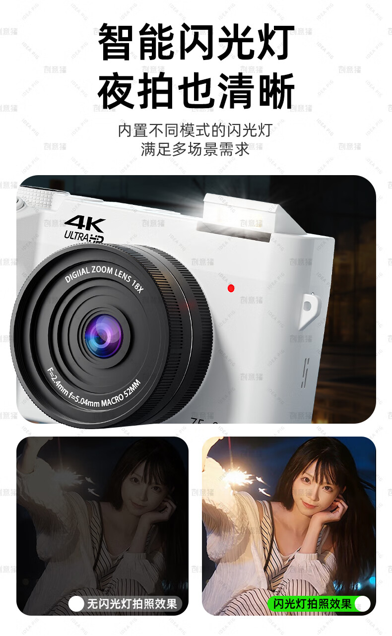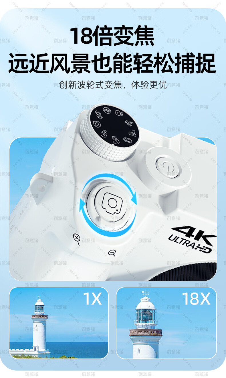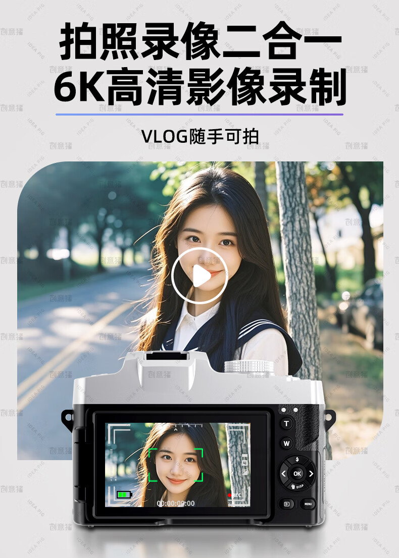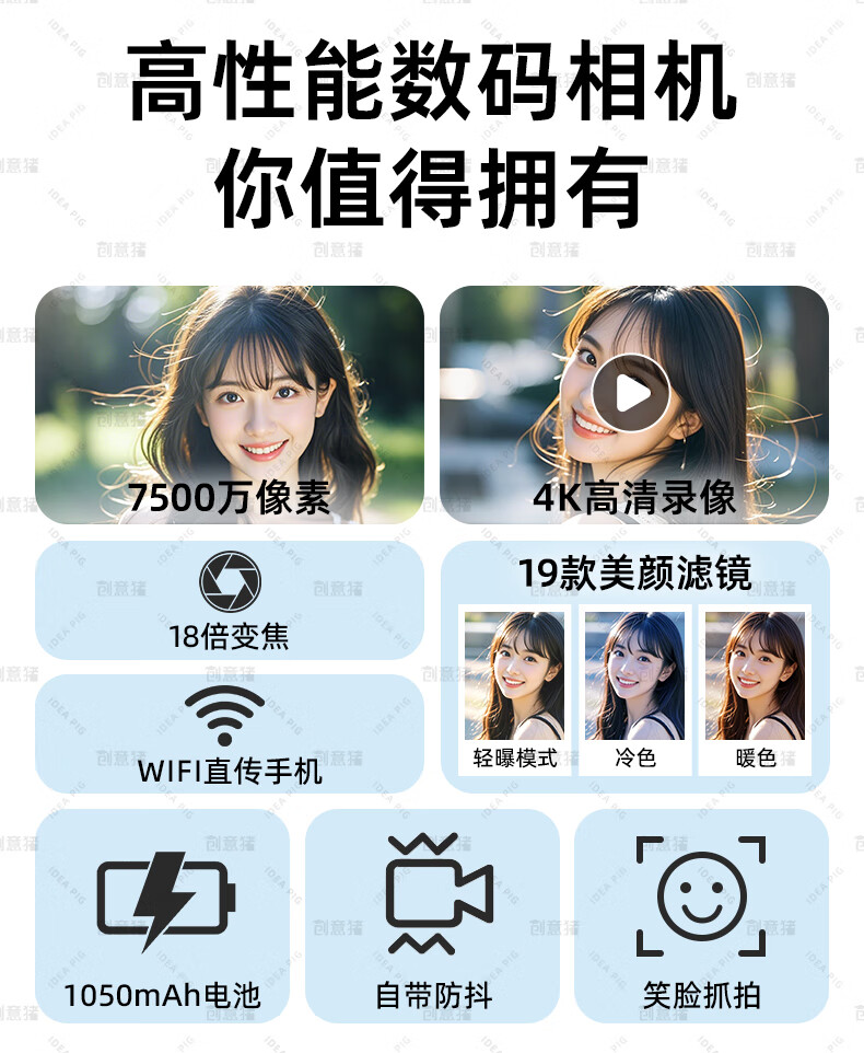 创意猪高清数码相机拍照旅游专用微单相机学生入门级替代ccd相机拍摄专业摄影学生党可上传手机照相机 【前后双摄】7500万像素-4K录像-WiFi传图 18倍变焦+多款美颜滤镜+自带防抖