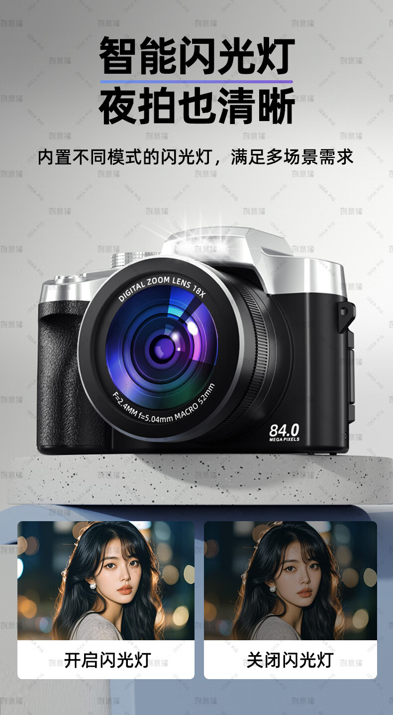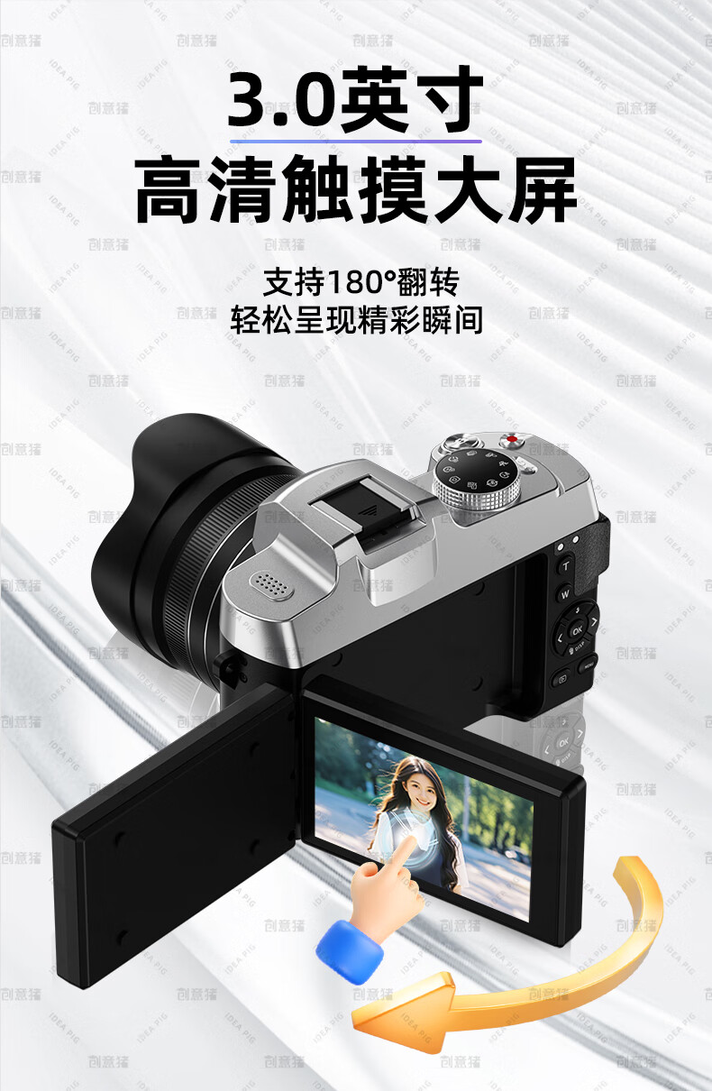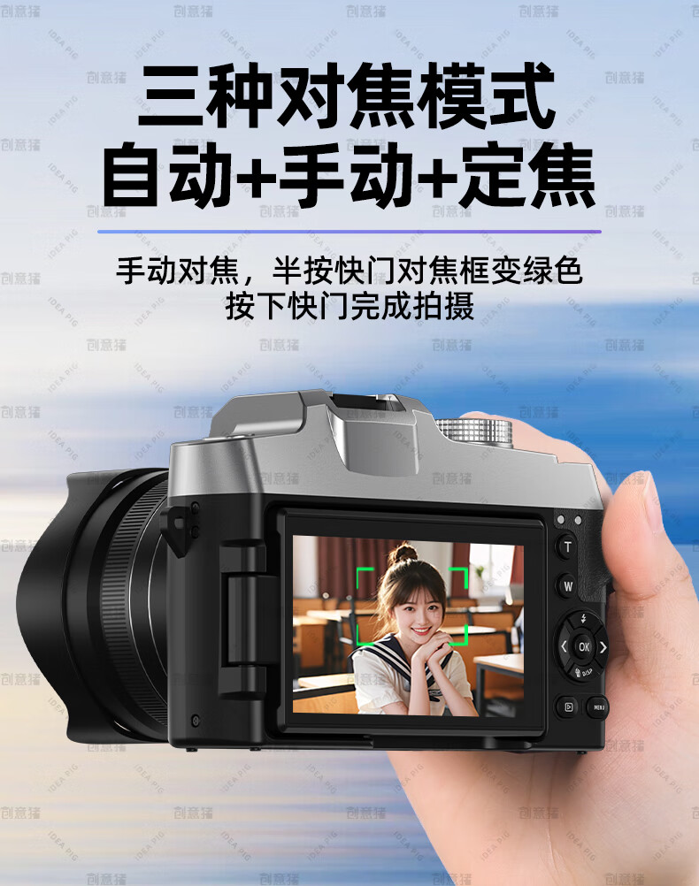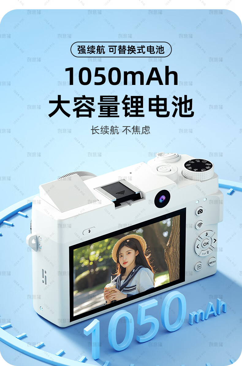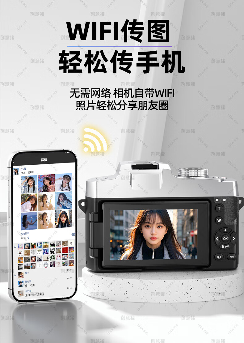 创意猪高清数码相机拍照旅游专用微单相机学生入门级替代ccd相机拍摄专业摄影学生党可上传手机照相机 【前后双摄】7500万像素-4K录像-WiFi传图 18倍变焦+多款美颜滤镜+自带防抖