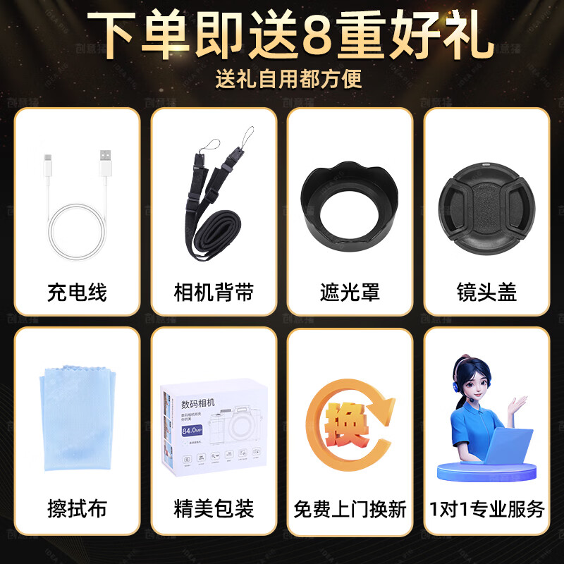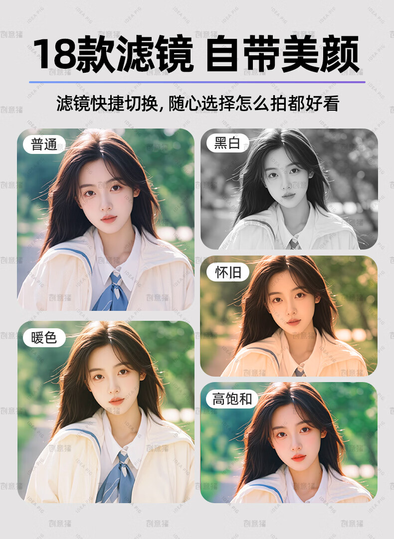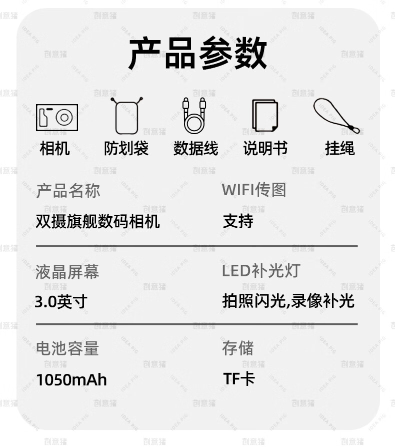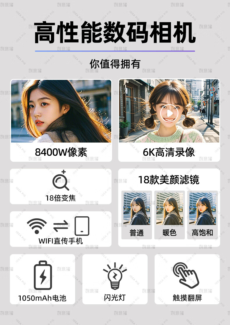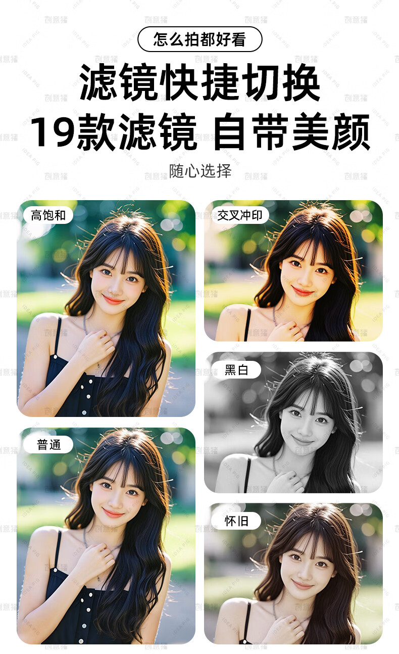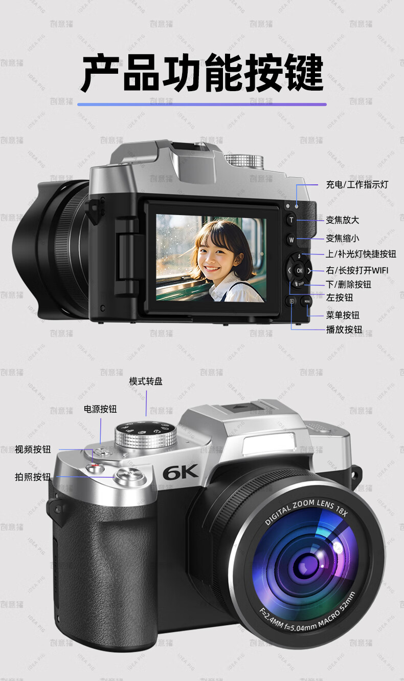 创意猪高清数码相机拍照旅游专用微单相机学生入门级替代ccd相机拍摄专业摄影学生党可上传手机照相机 【前后双摄】7500万像素-4K录像-WiFi传图 18倍变焦+多款美颜滤镜+自带防抖