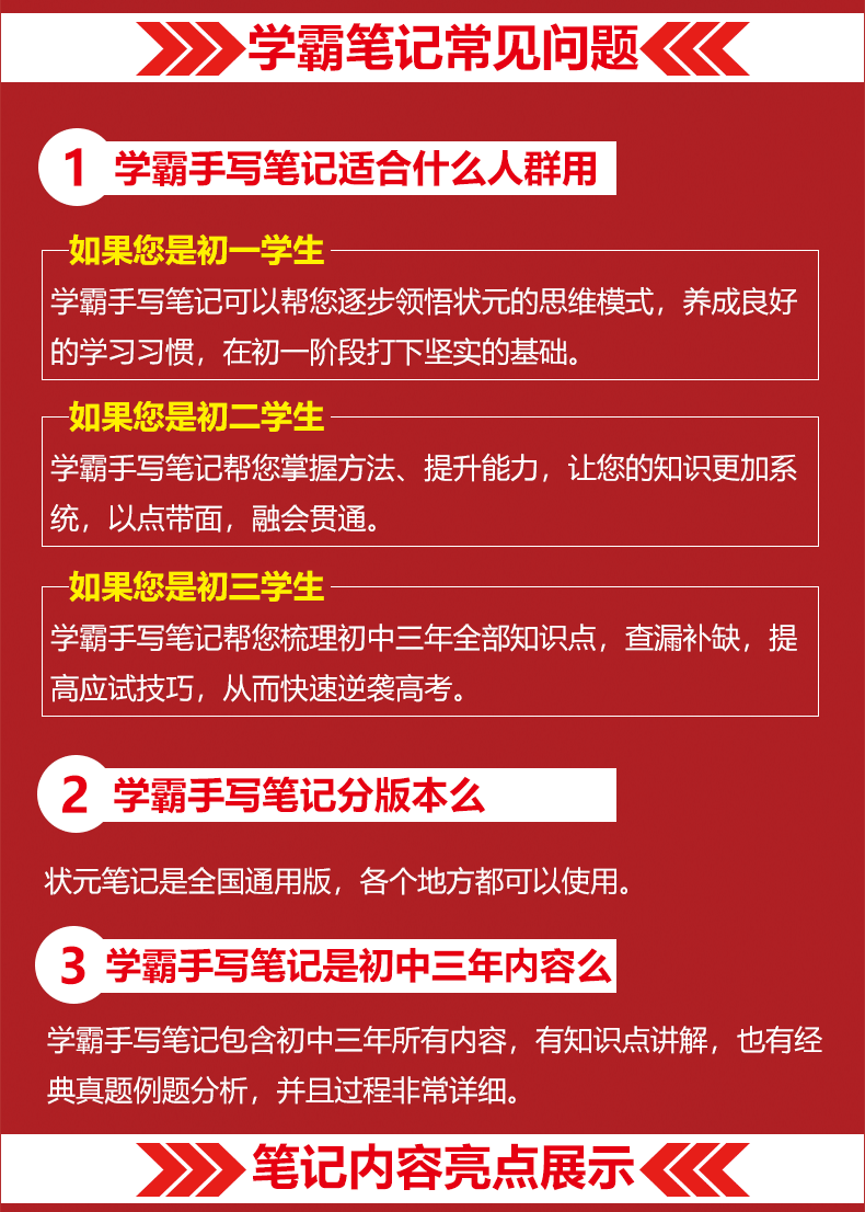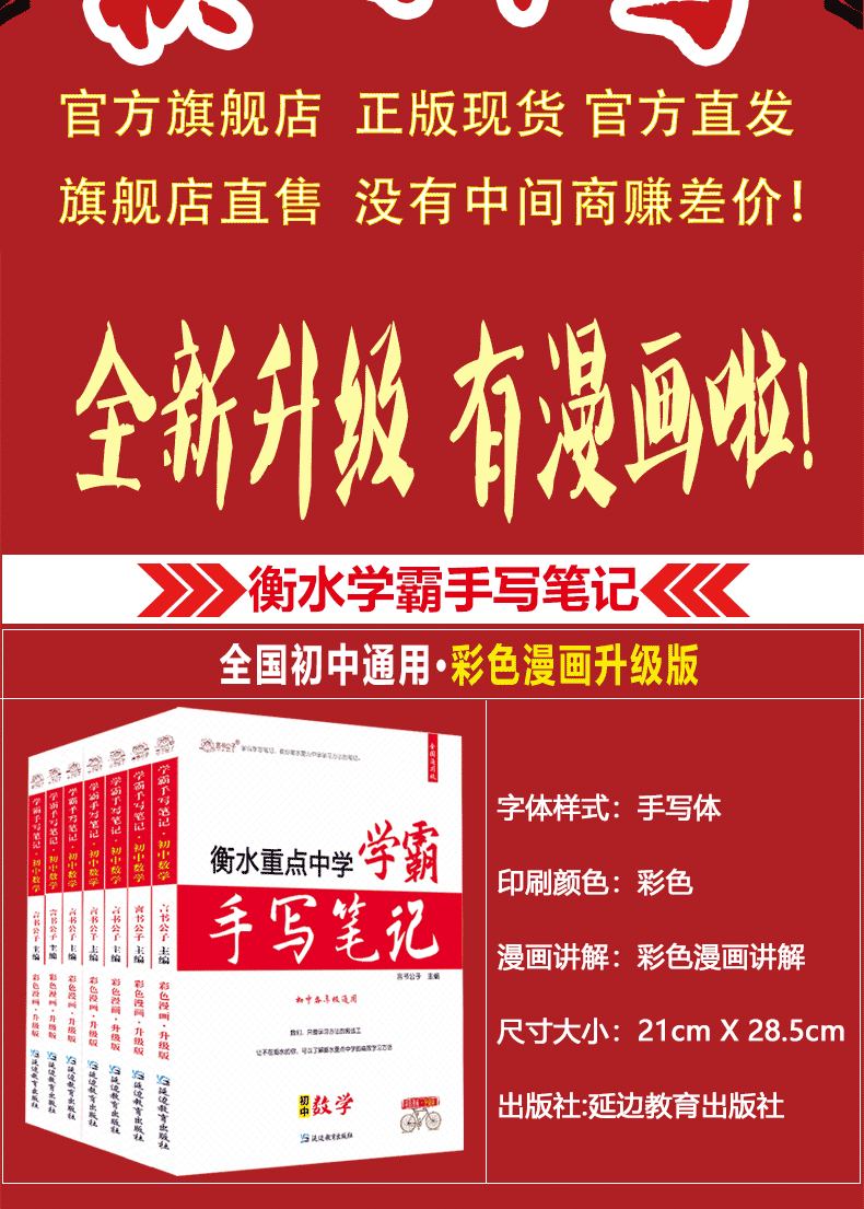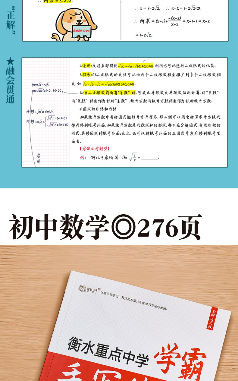 衡水重点中学状元手写笔记全套9科初中通用2026版学霸笔记初中七八九年级中考复习资料书初一初二初三 【初一最省钱】语数英生政史地(初一全套7科)