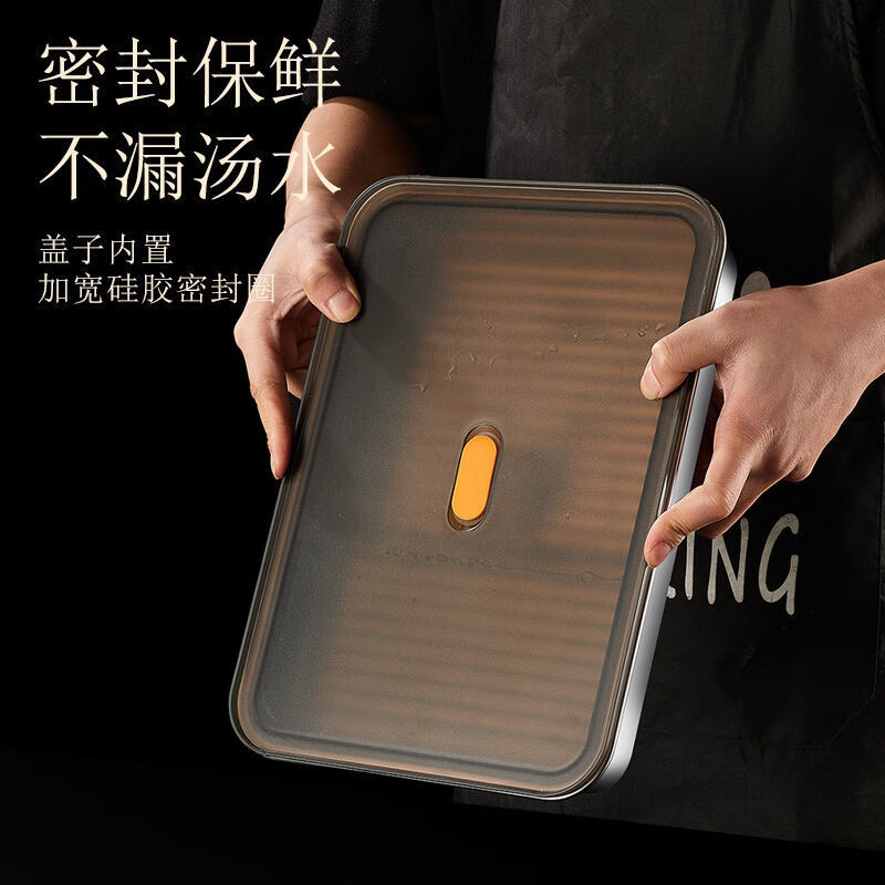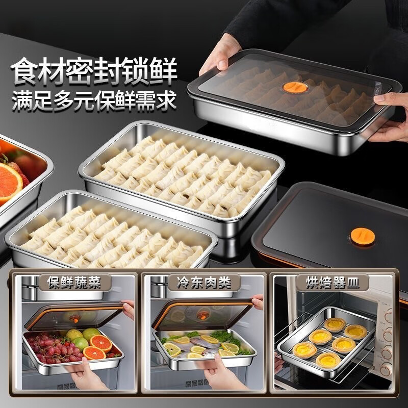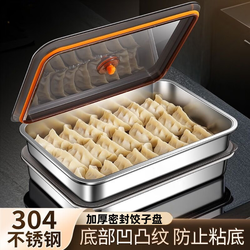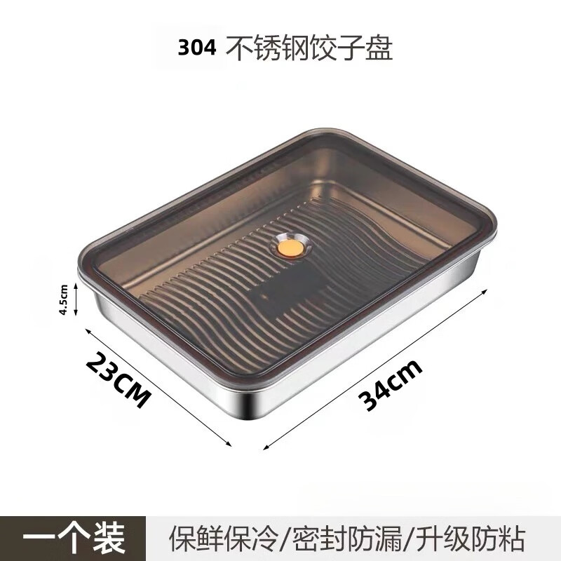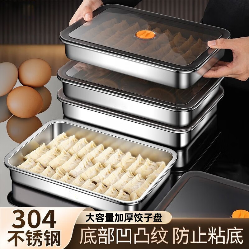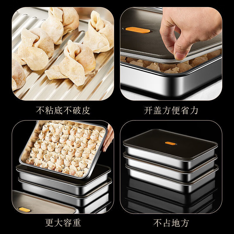 进葆堂304不锈钢饺子盒食品级可冷藏冷冻加热密封收纳盒水饺保鲜盒馄饨 304不锈钢饺子盘【2700ml】