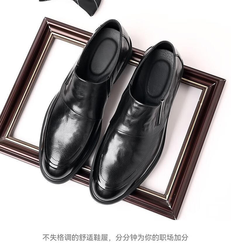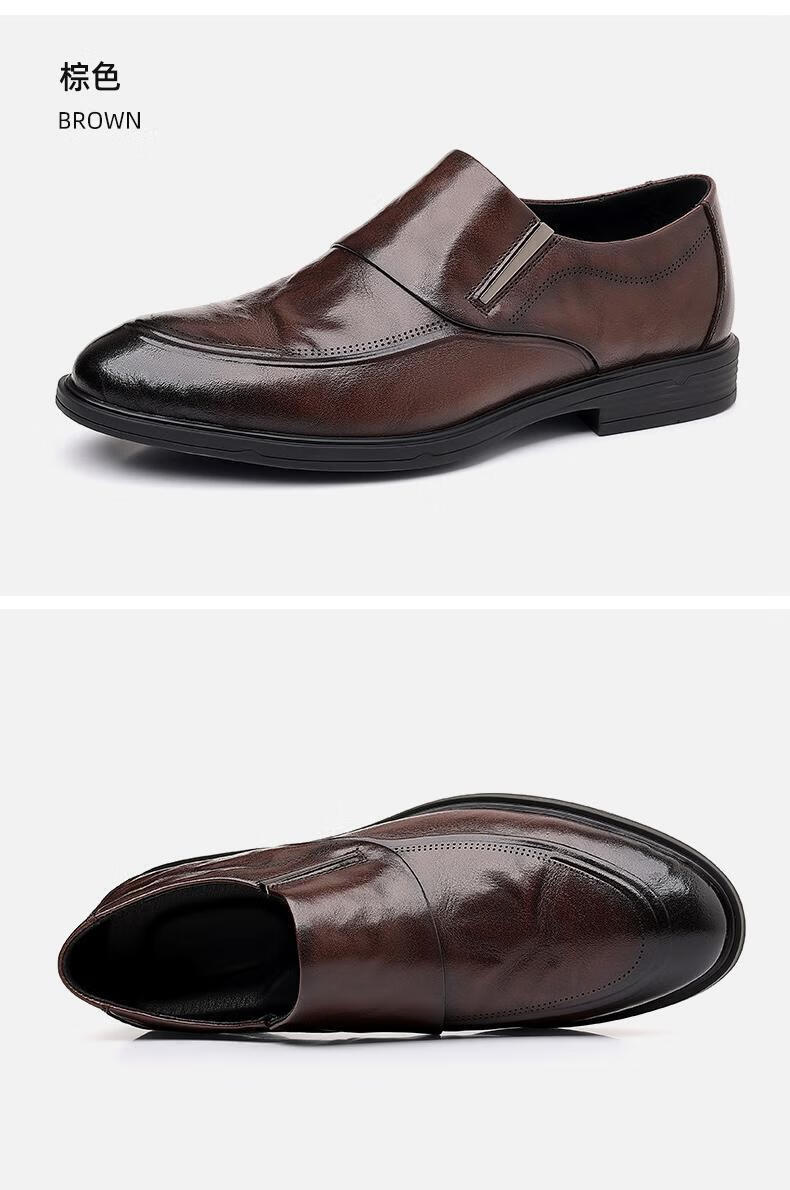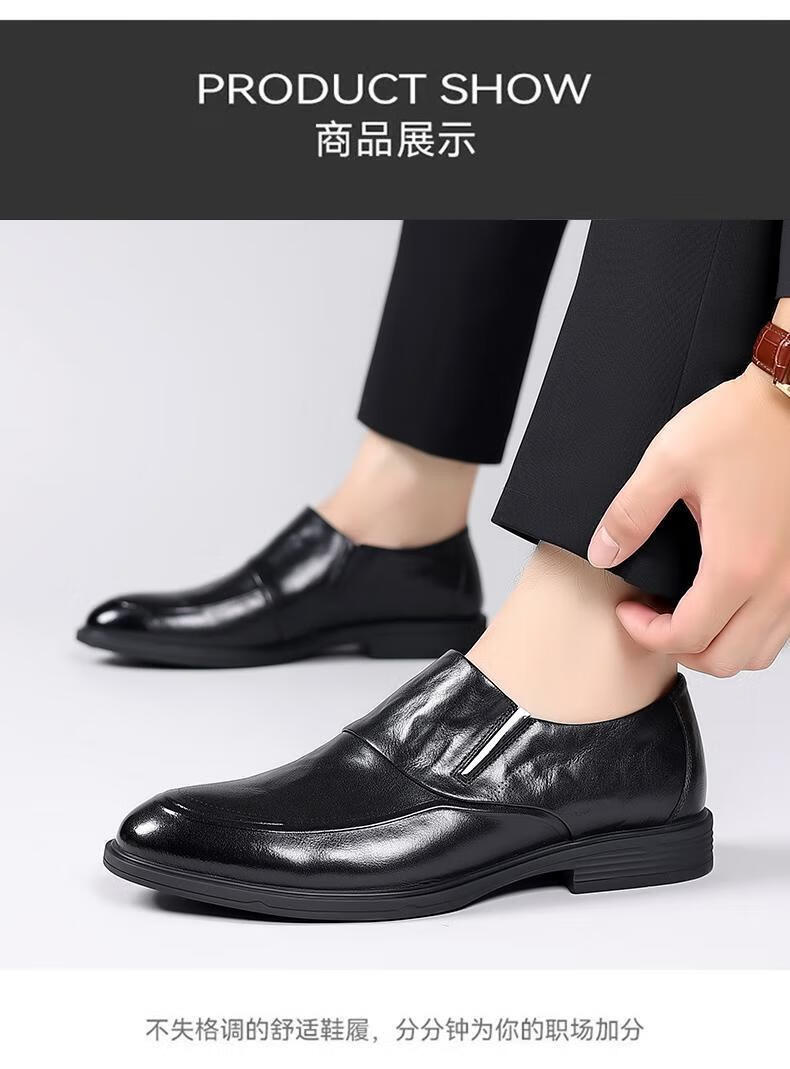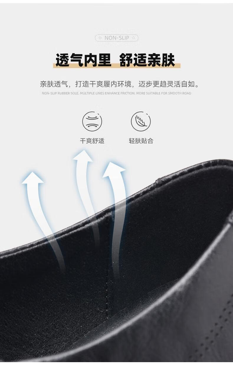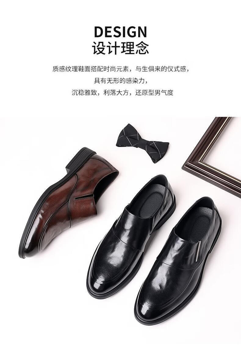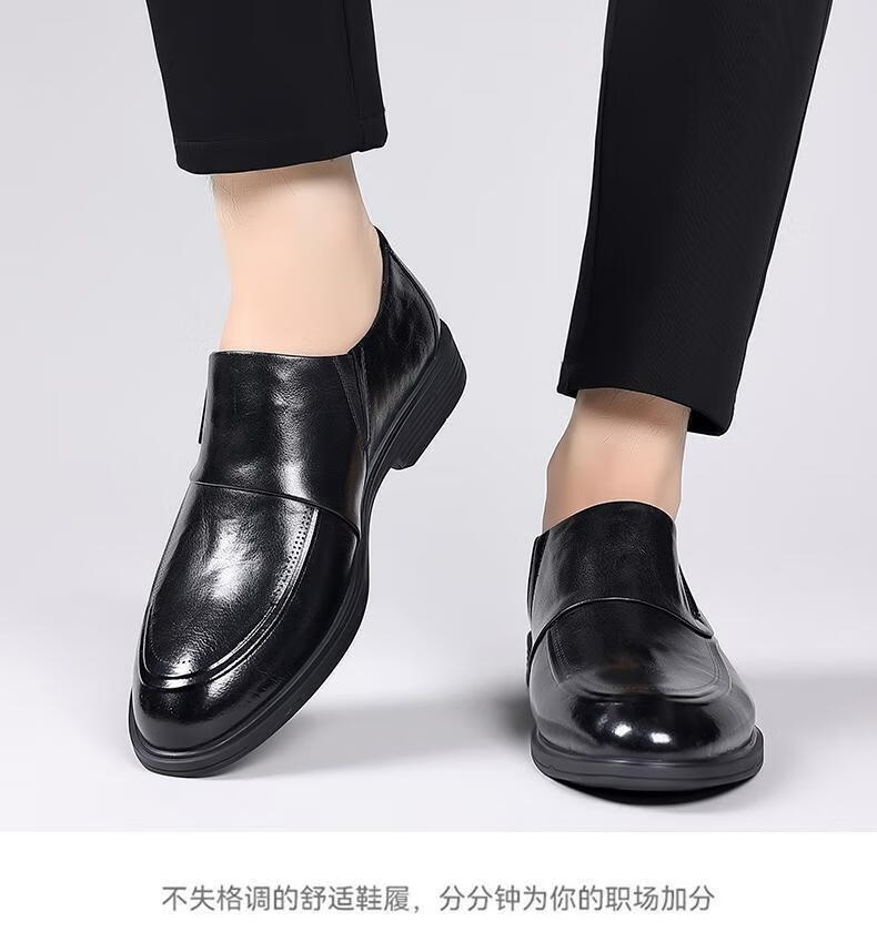 kainifu新款男士皮鞋商务正装一脚蹬套脚休闲百搭休闲鞋 8008黑色 38