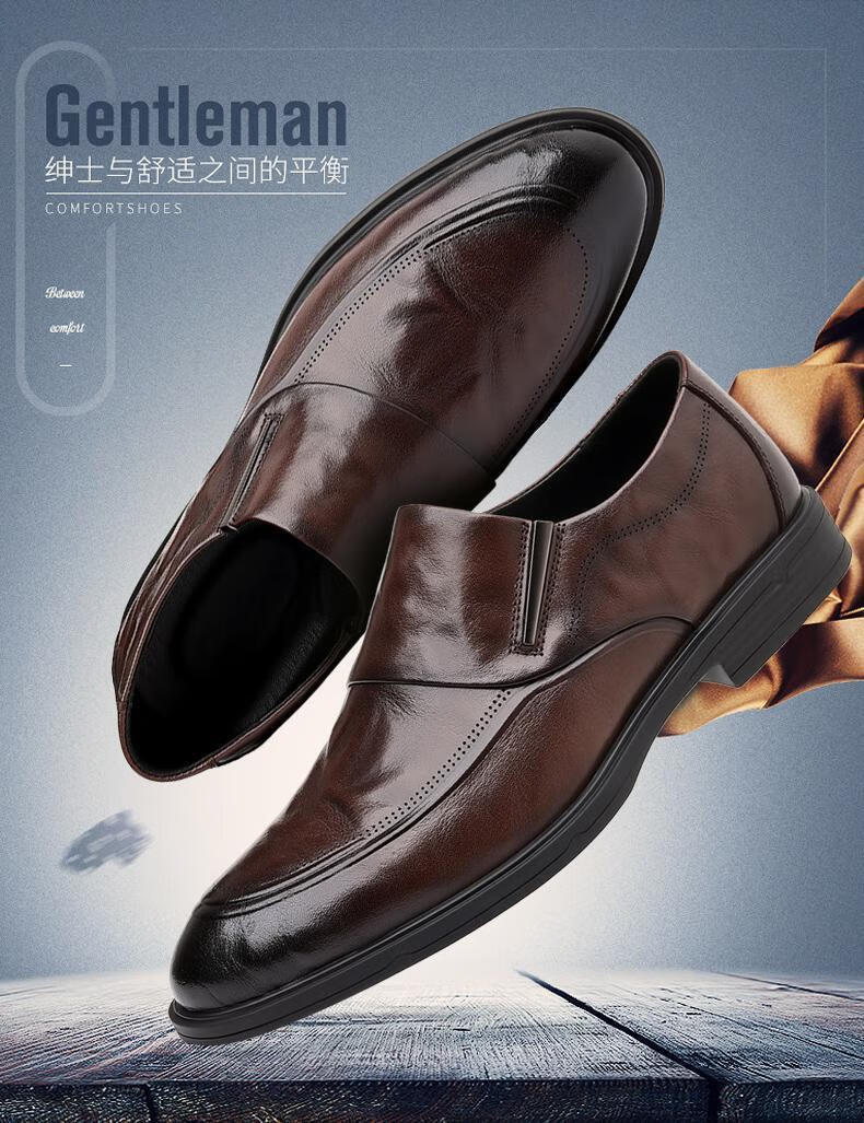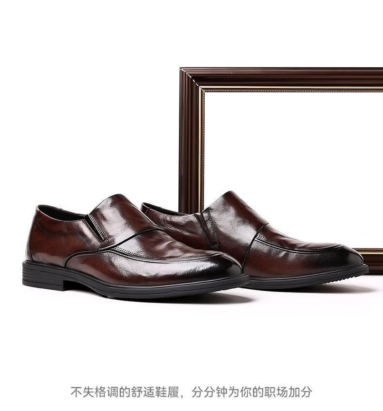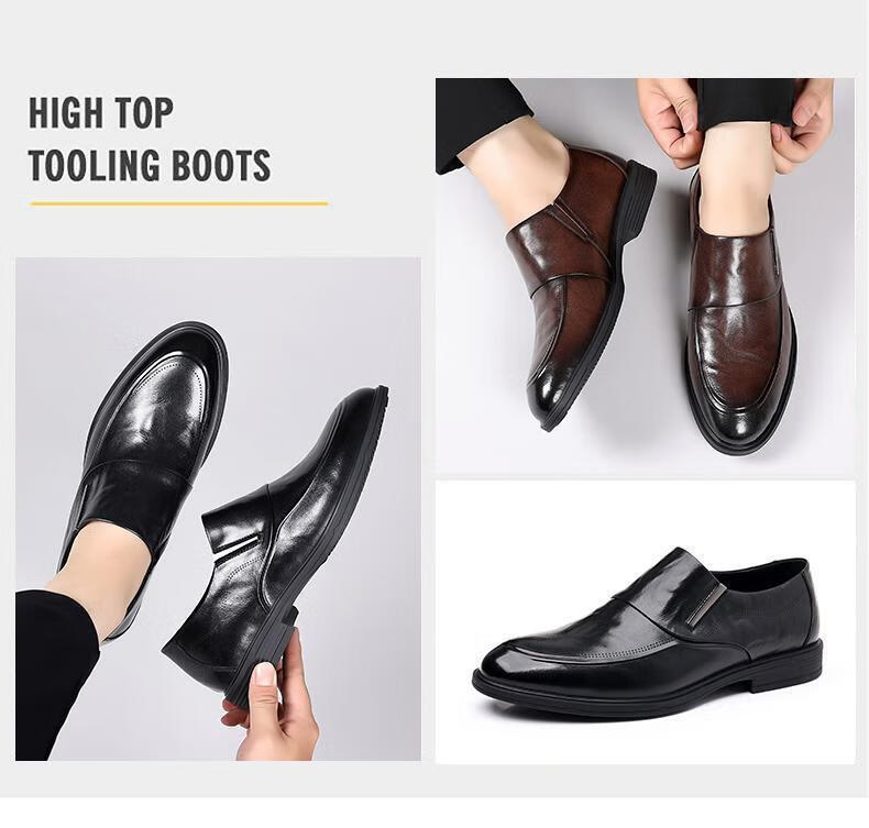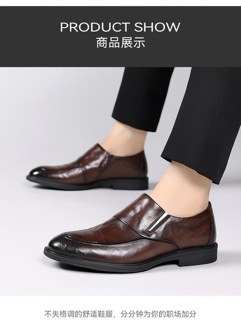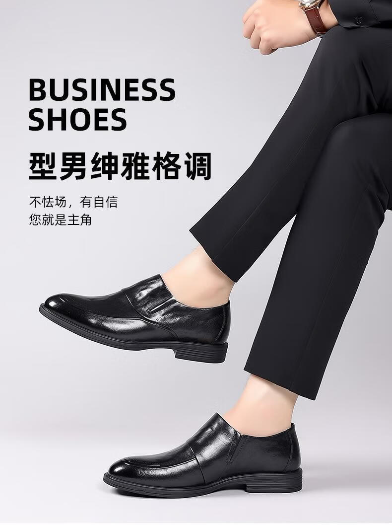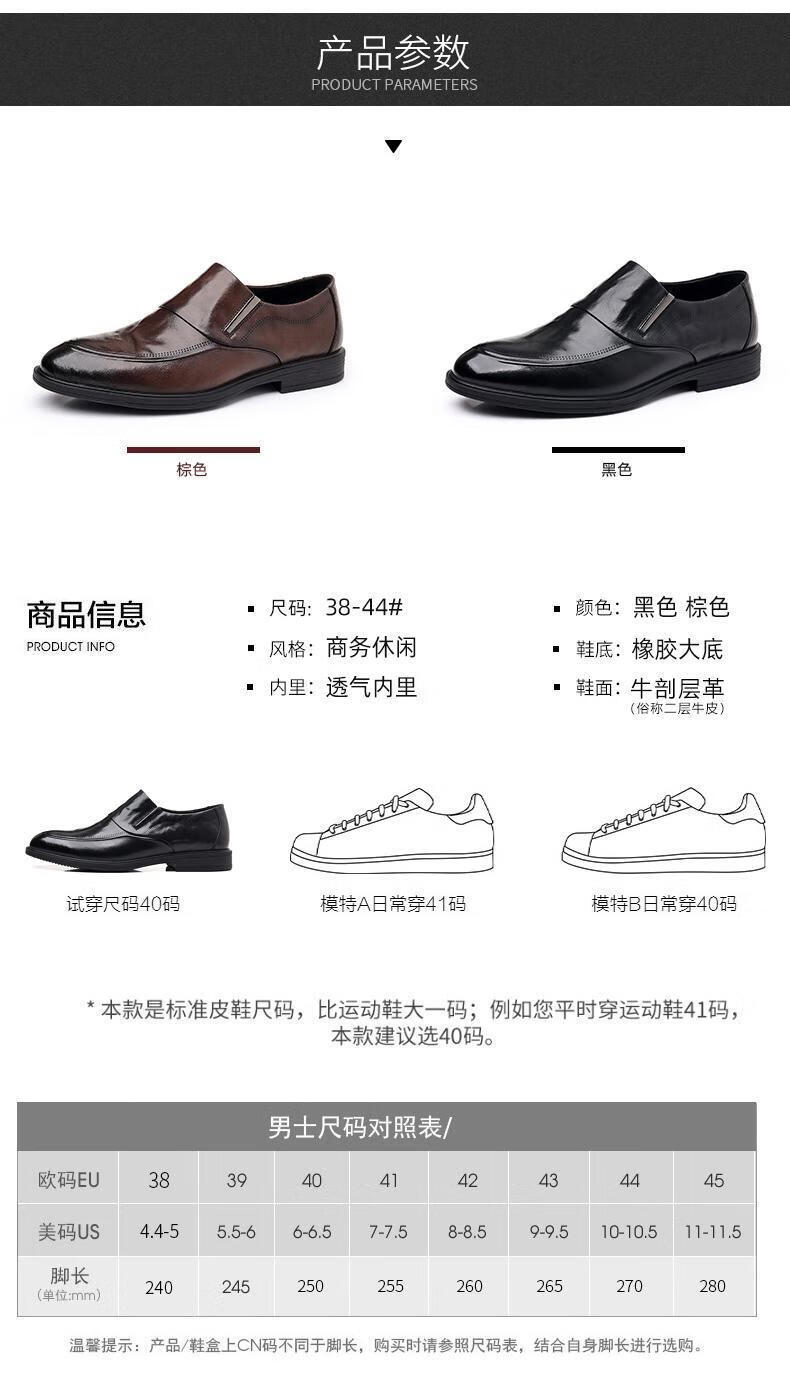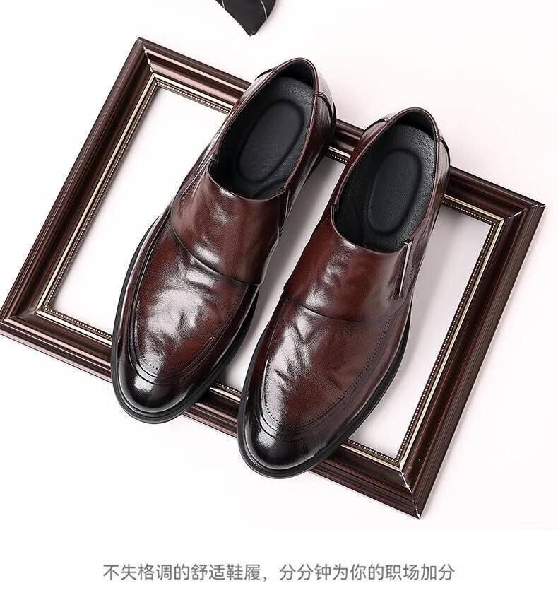 kainifu新款男士皮鞋商务正装一脚蹬套脚休闲百搭休闲鞋 8008黑色 38