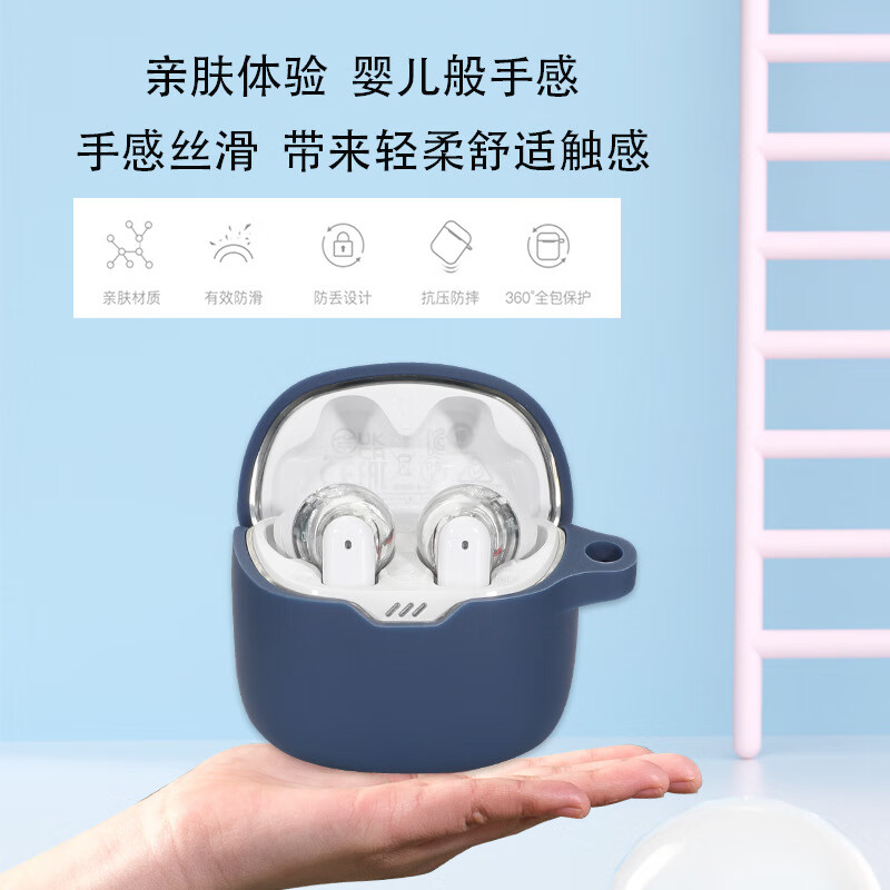 适用于JBLTUNEFLEX小晶豆耳机保护套jbl耳机硅胶保护壳 天蓝色+扣+OPP袋装 JBLTUNEFLEX小晶豆耳机保护套