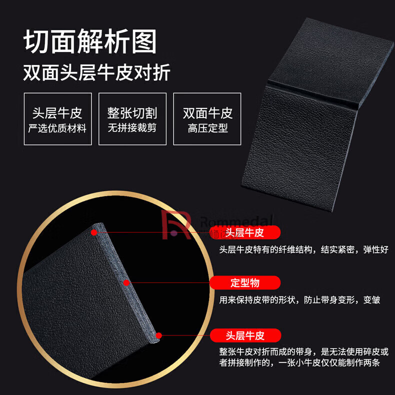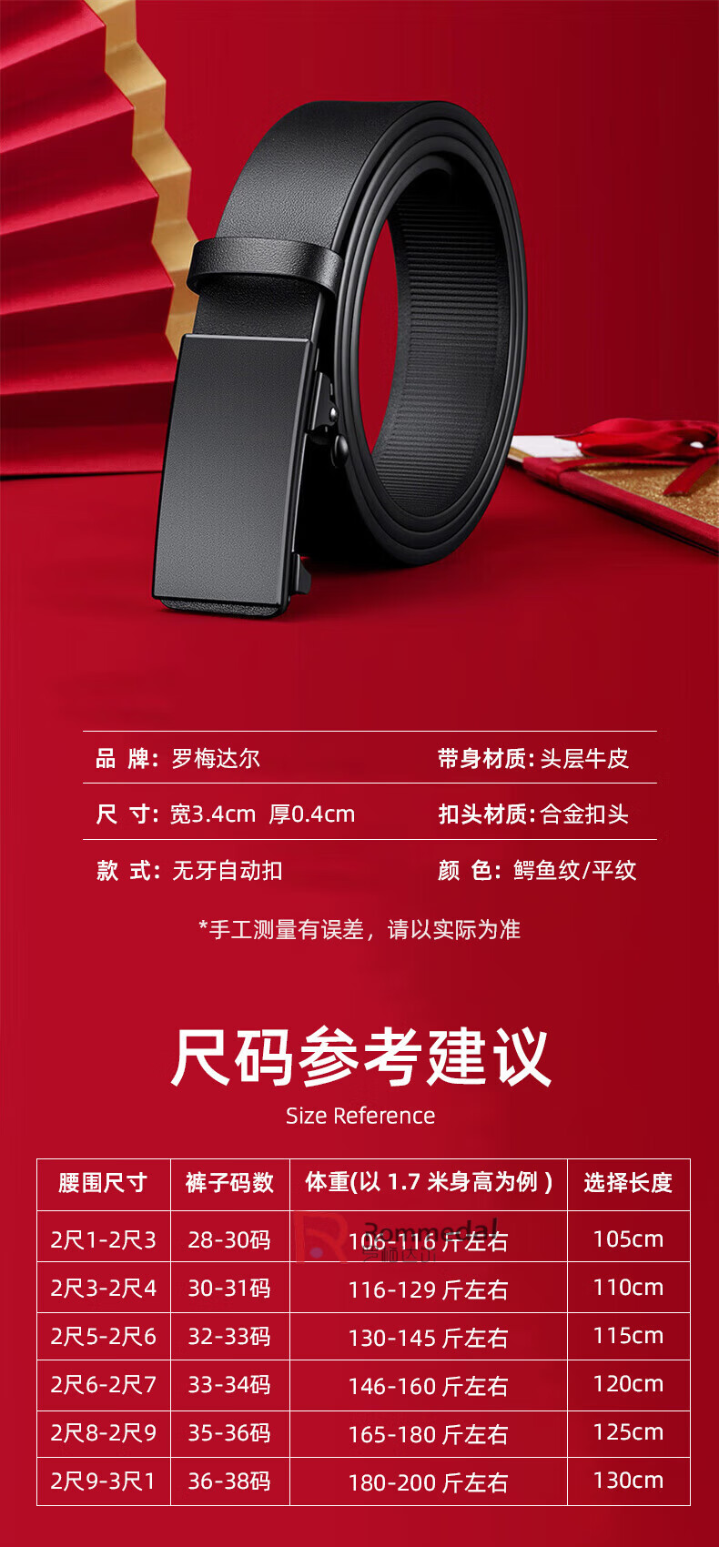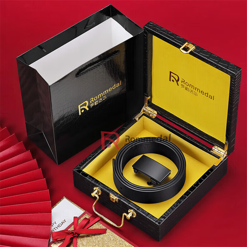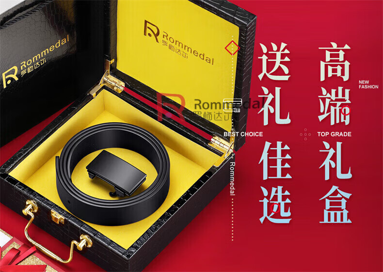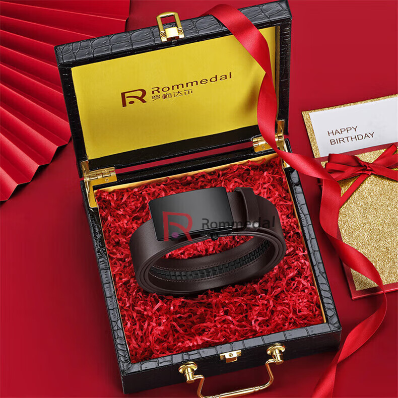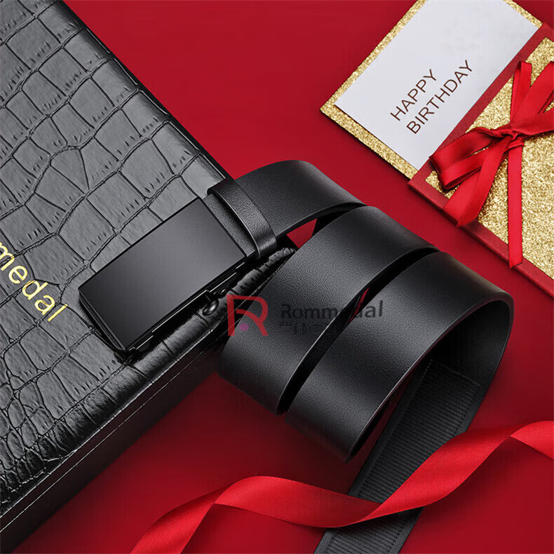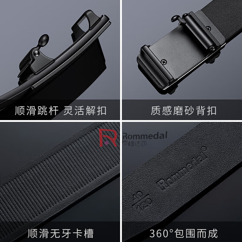 罗梅达尔(Rommedal)皮带男高档无牙自动扣牛皮商务休闲裤腰带父亲皮带男士生日礼物 黑色平纹 115cm