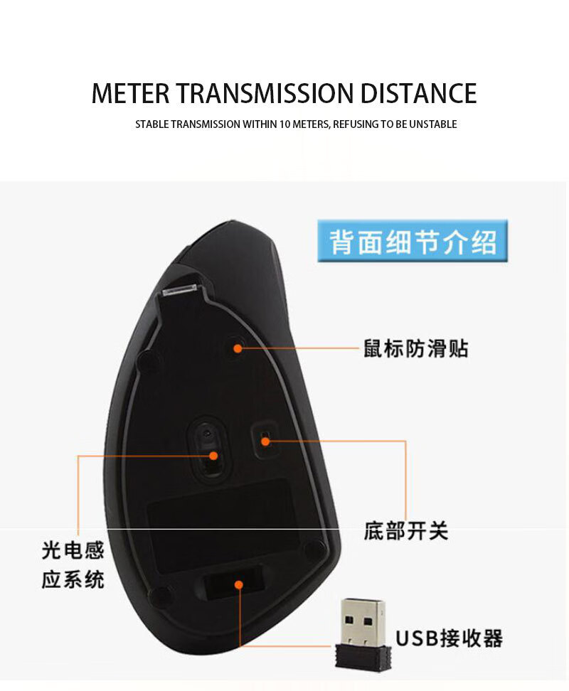 【现货现发】无线鼠标立式垂直静音人体工学鼠标双模无线USB蓝牙 886黑色右手(电池款双模