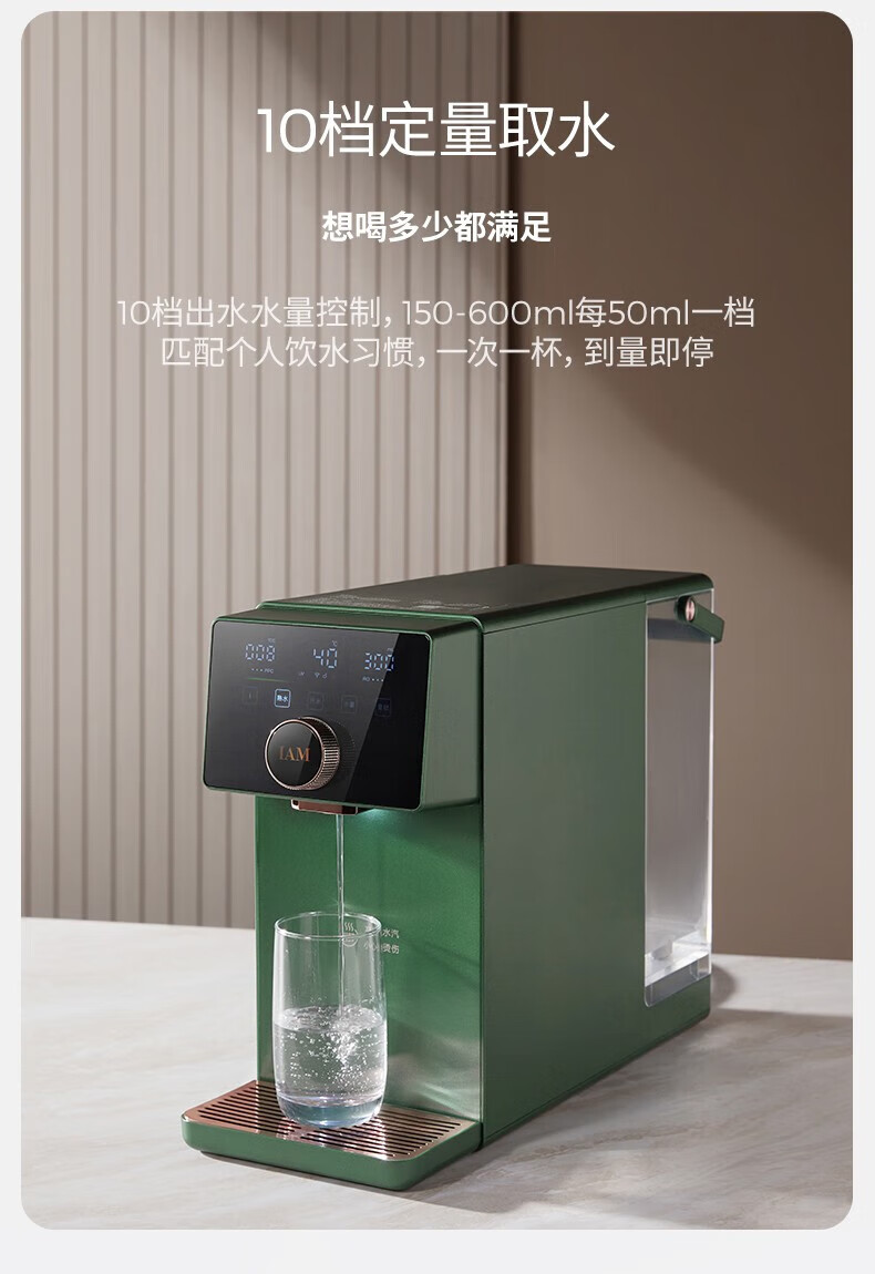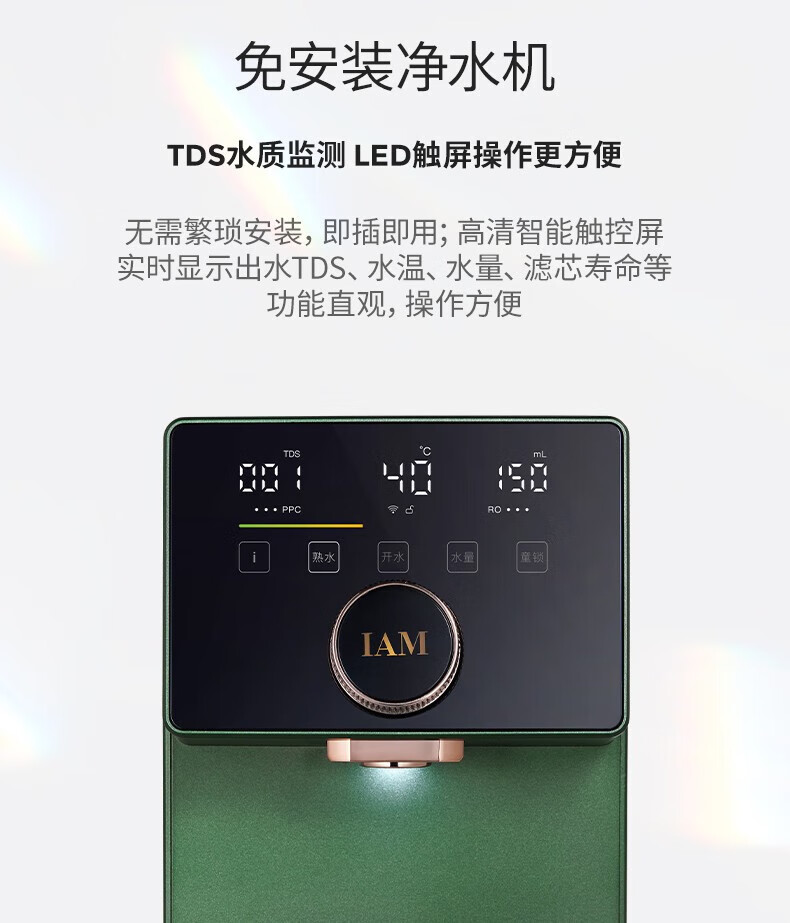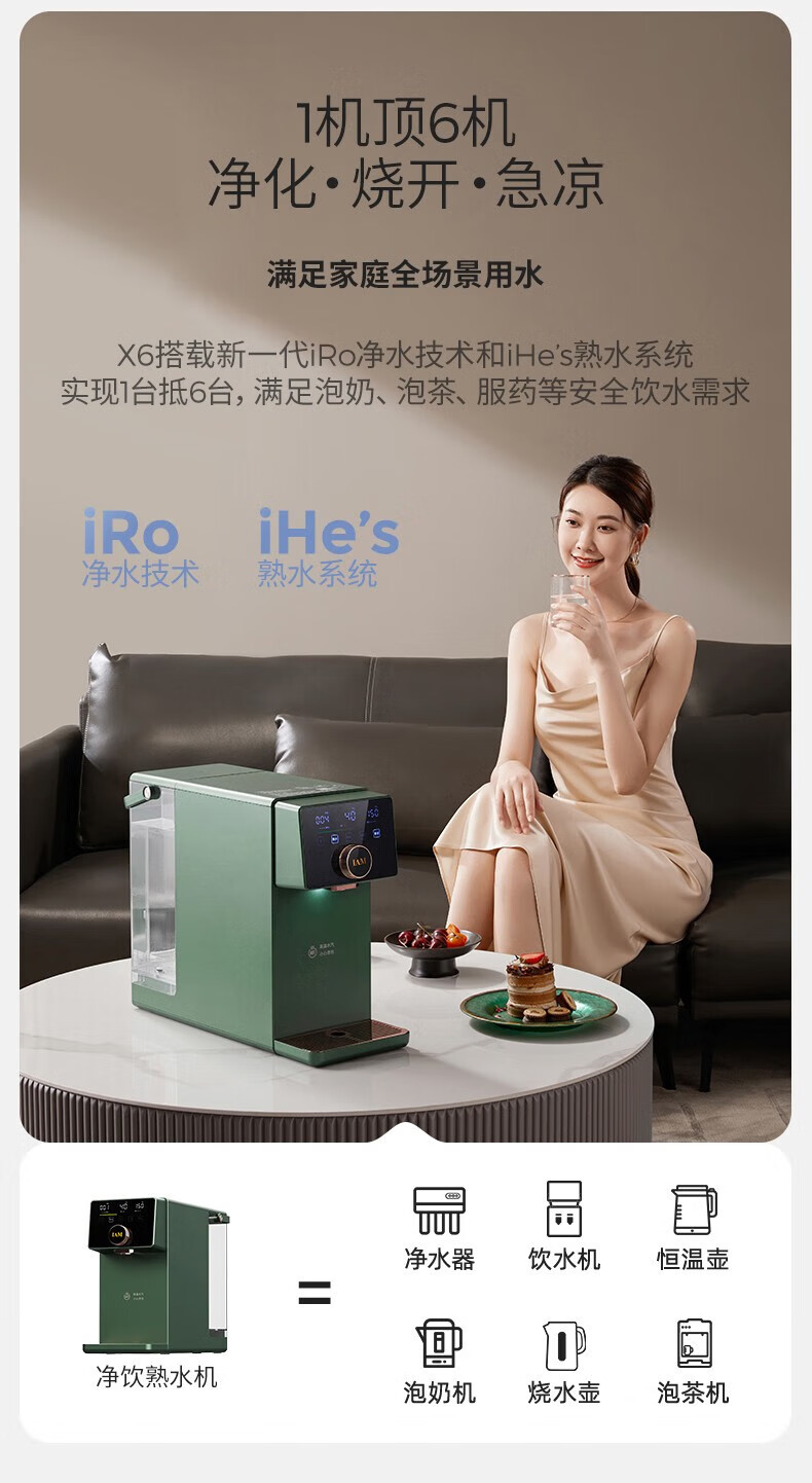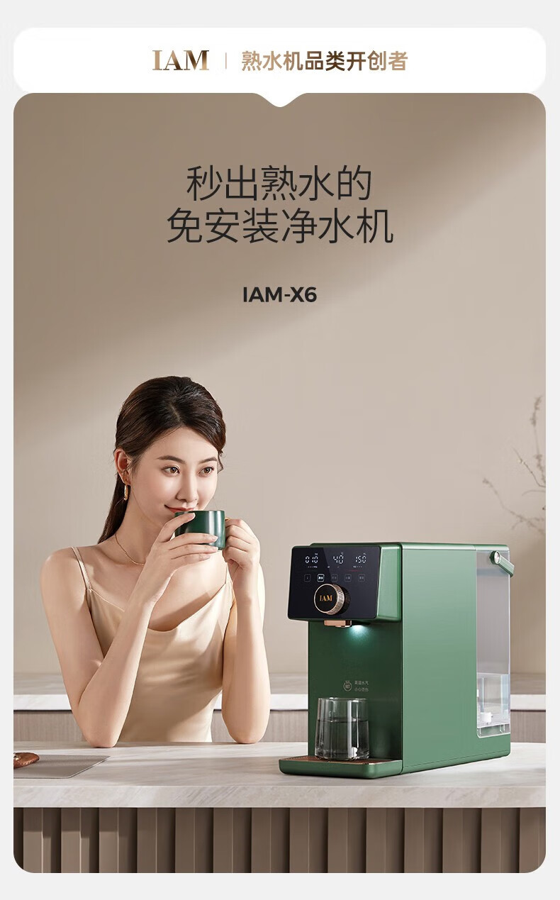 IAM净水器家用直饮加热净水机反渗透过滤 即热式饮水机台上式净饮一体直饮机熟水机X6 绅士绿|过滤净化|即热速冷