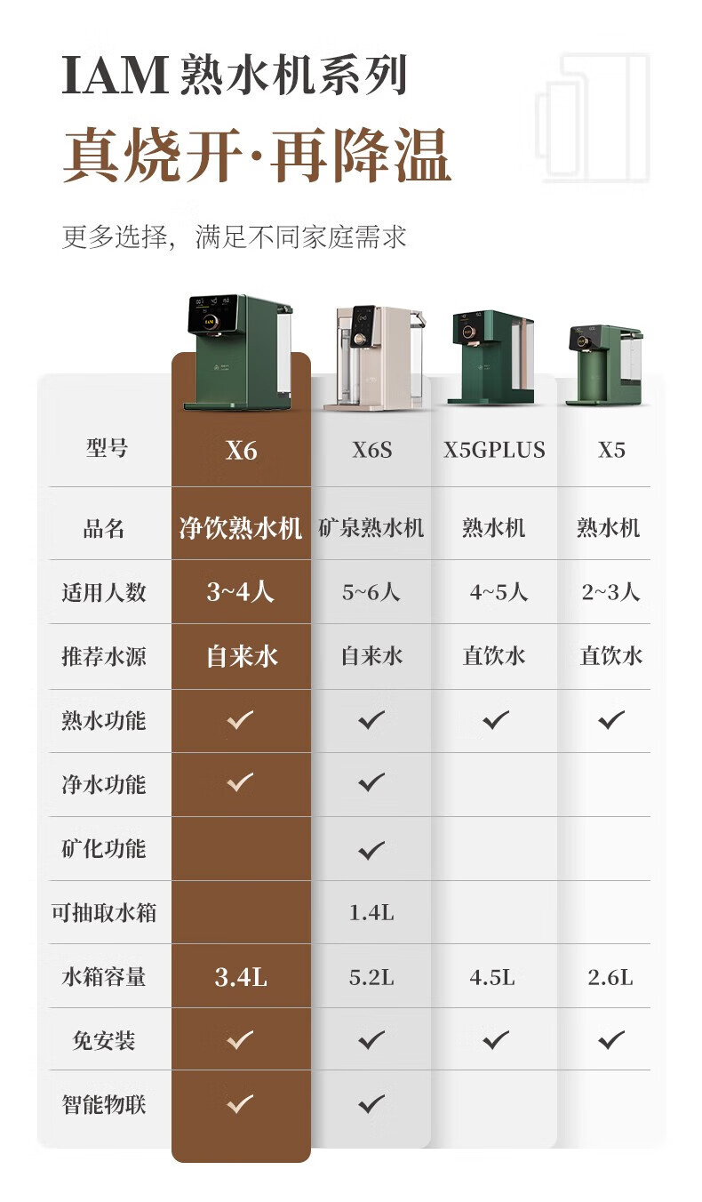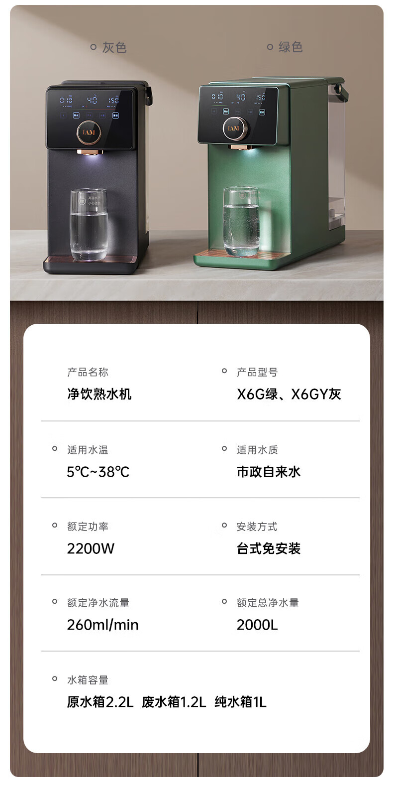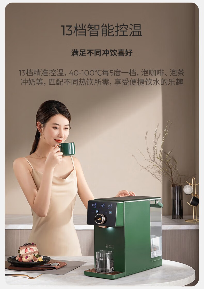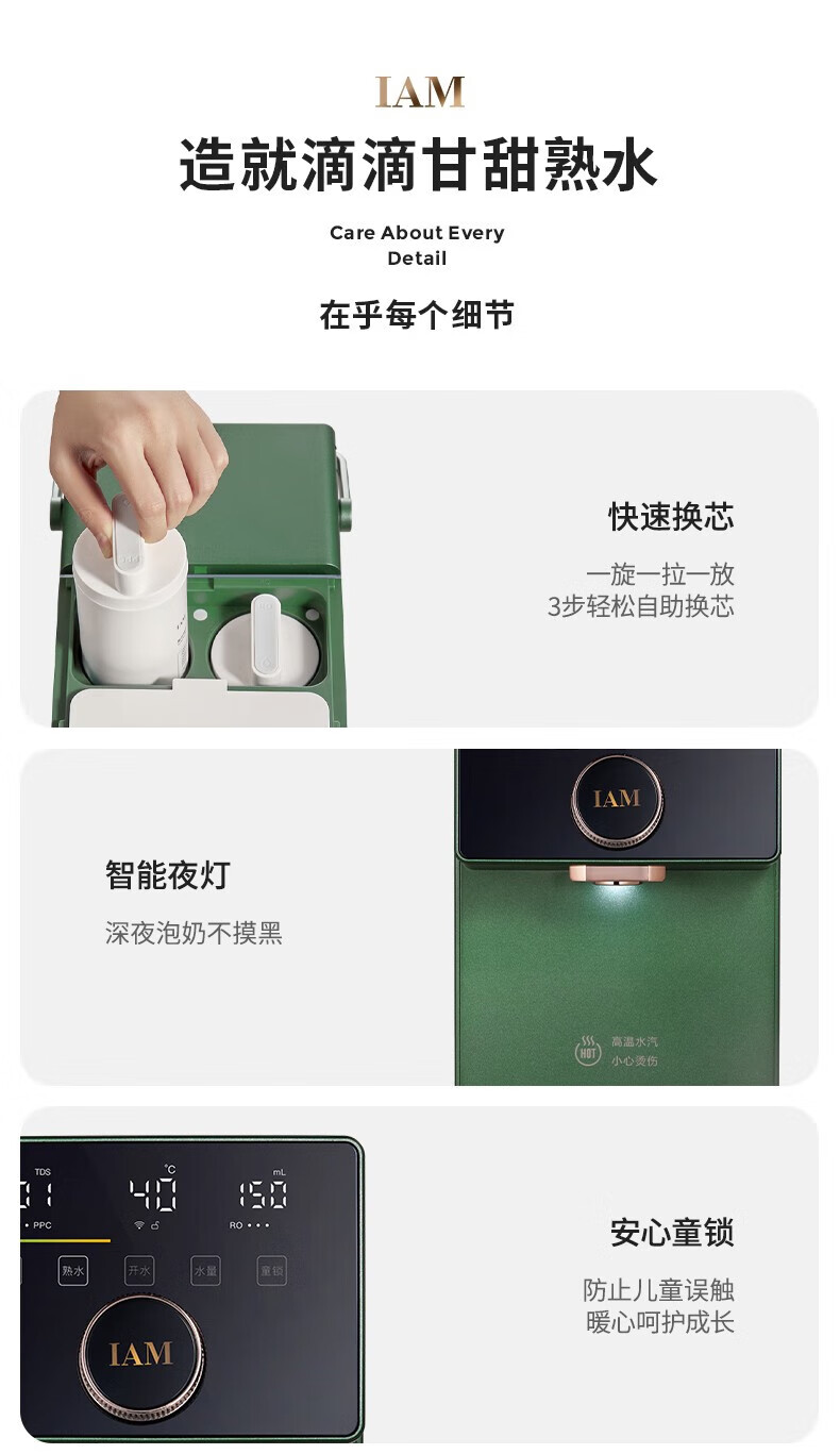 IAM净水器家用直饮加热净水机反渗透过滤 即热式饮水机台上式净饮一体直饮机熟水机X6 绅士绿|过滤净化|即热速冷