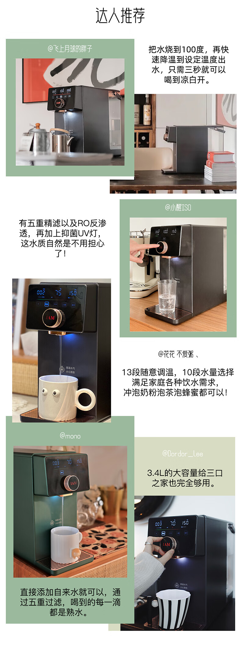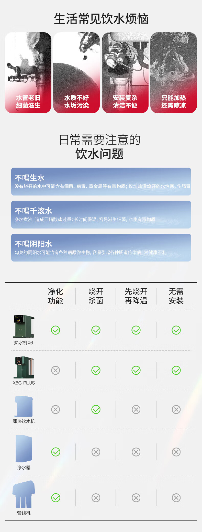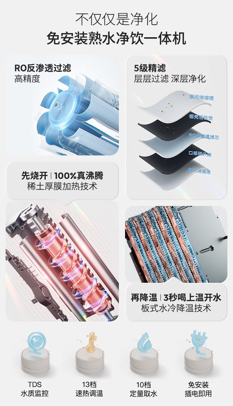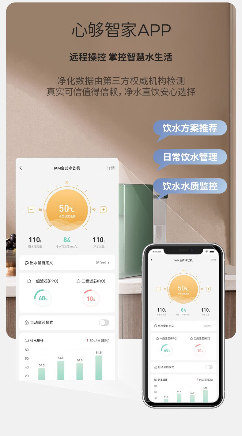 IAM净水器家用直饮加热净水机反渗透过滤 即热式饮水机台上式净饮一体直饮机熟水机X6 绅士绿|过滤净化|即热速冷