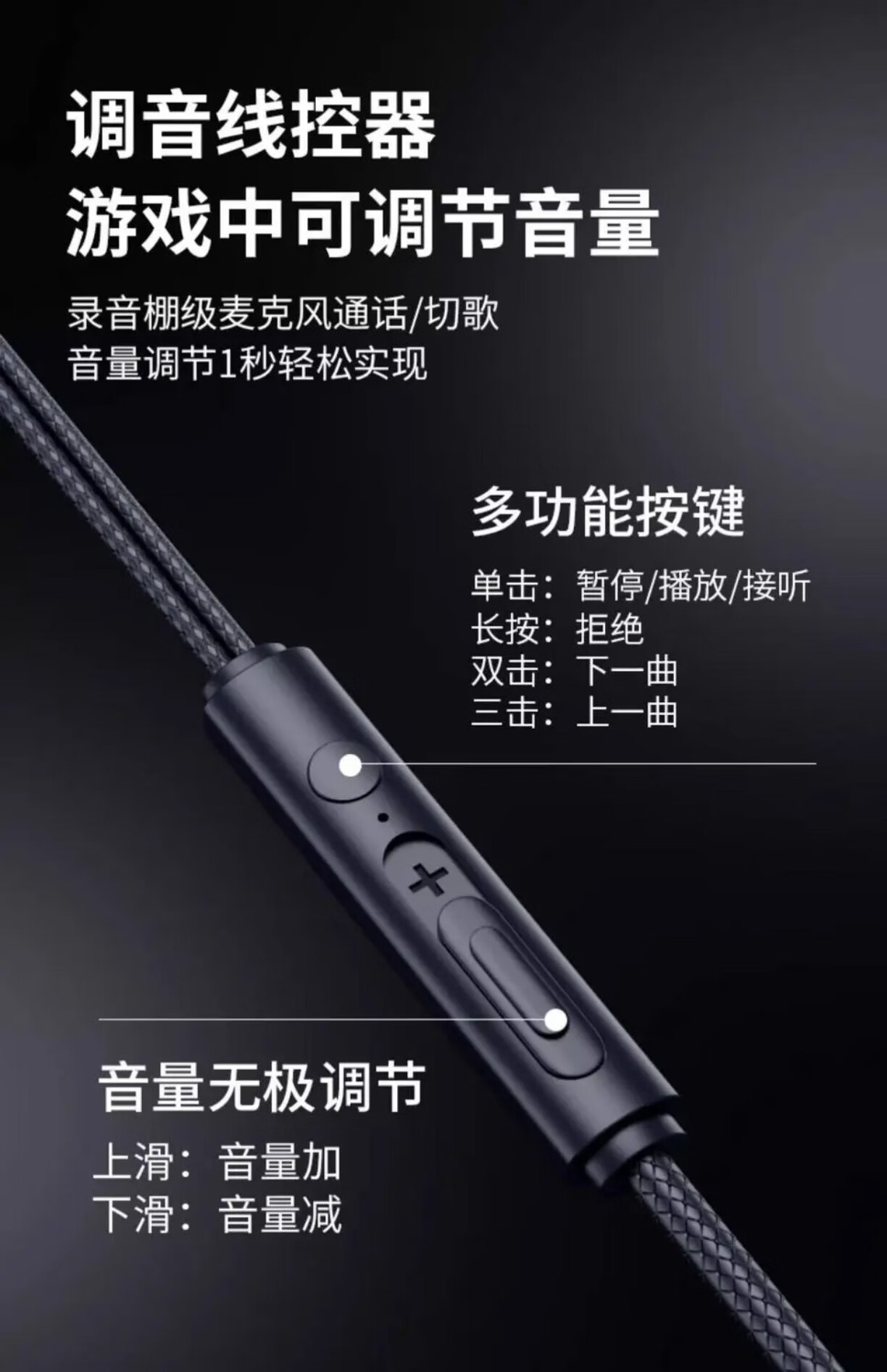 昇亿昊耳机有线入耳式3.5mm圆头接口高清音质适用苹果华为荣耀vivo小米oppo圆孔耳机 黑色【3.5mm圆头】高清音质